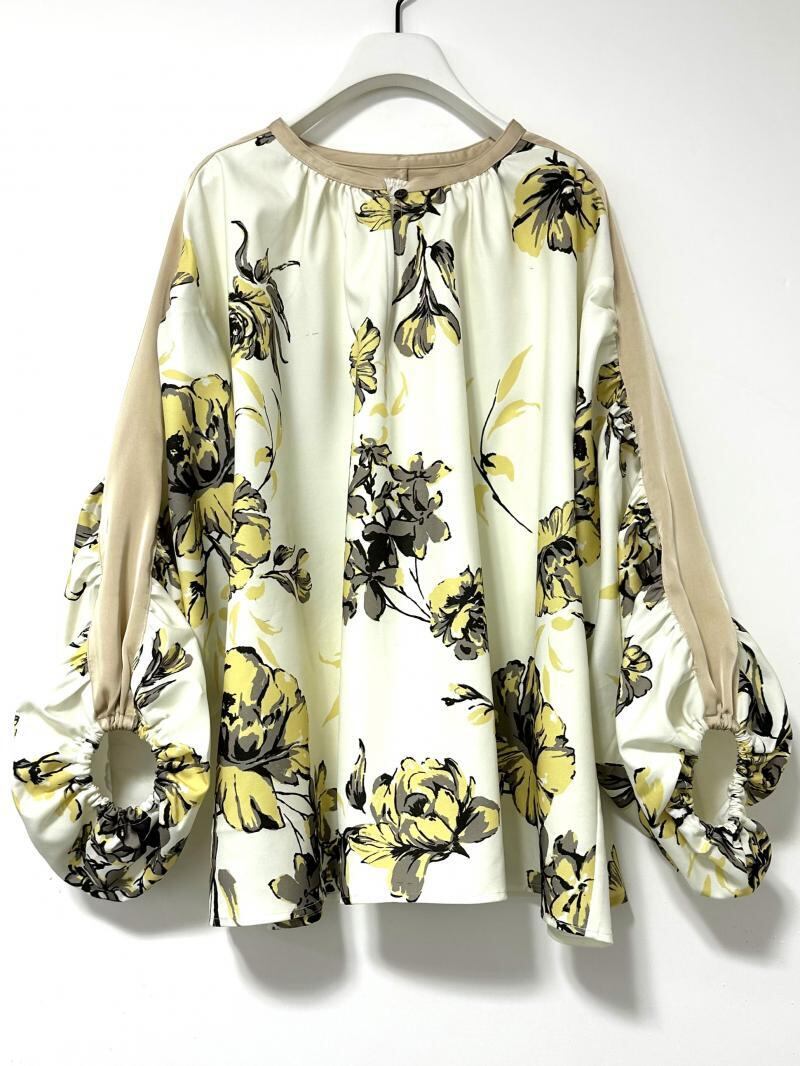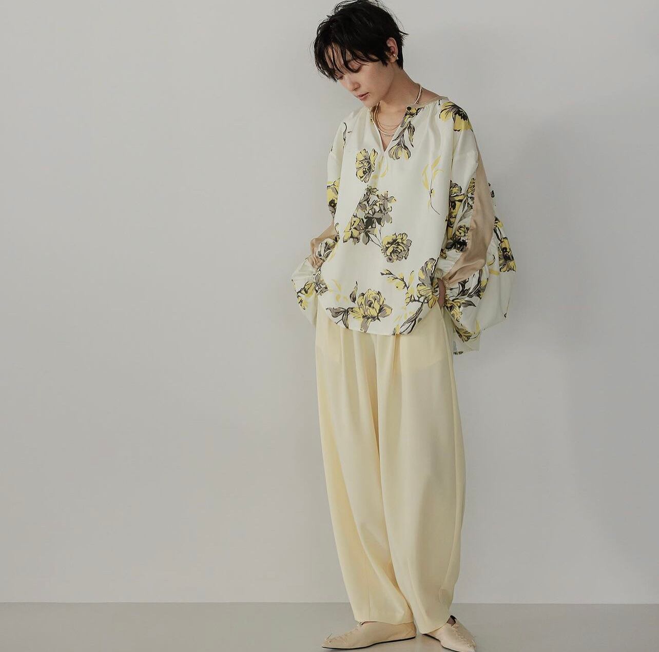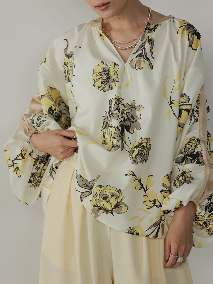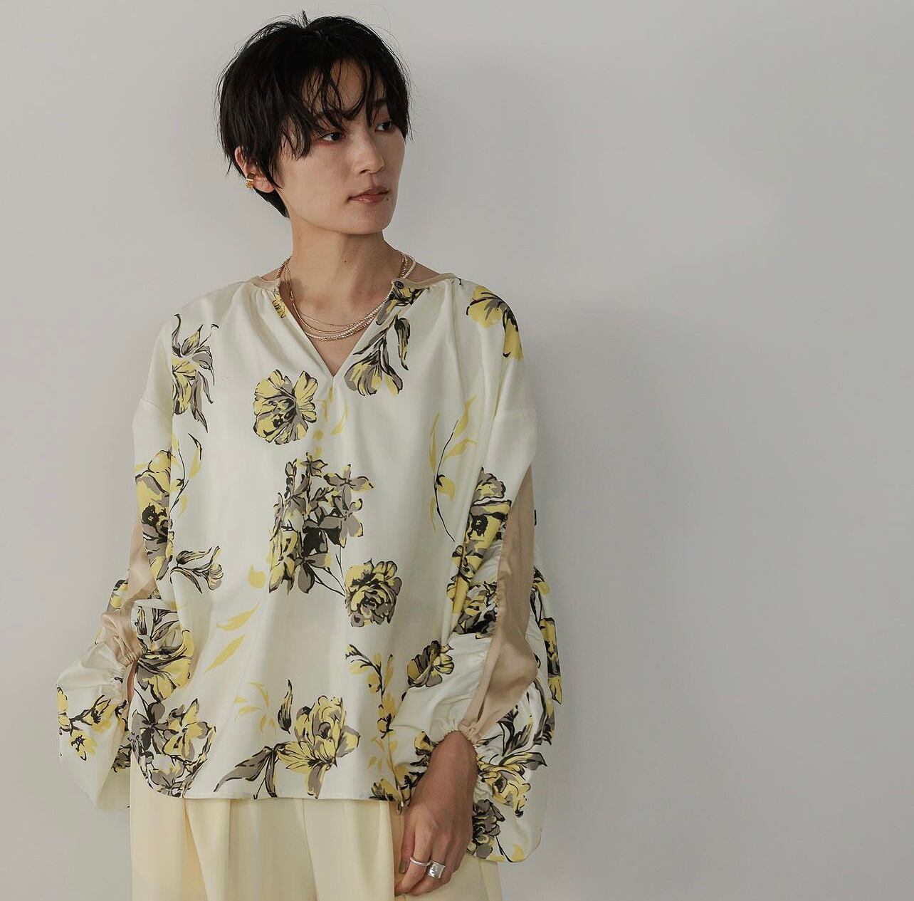 ギャザーをたっぷりと寄せることで、ボリューム感のある華やかなブラウスに仕上げました。