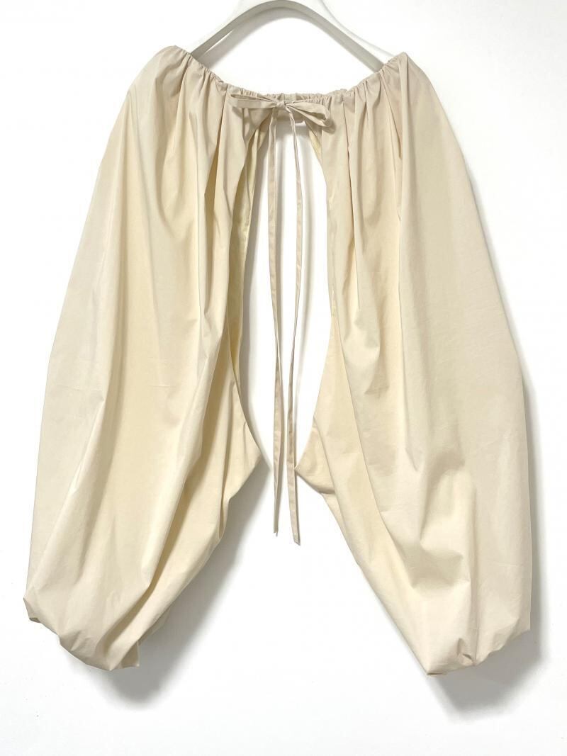 独特な表情感が特徴のシャツ生地を採用したバルーンデザインのボレロです。