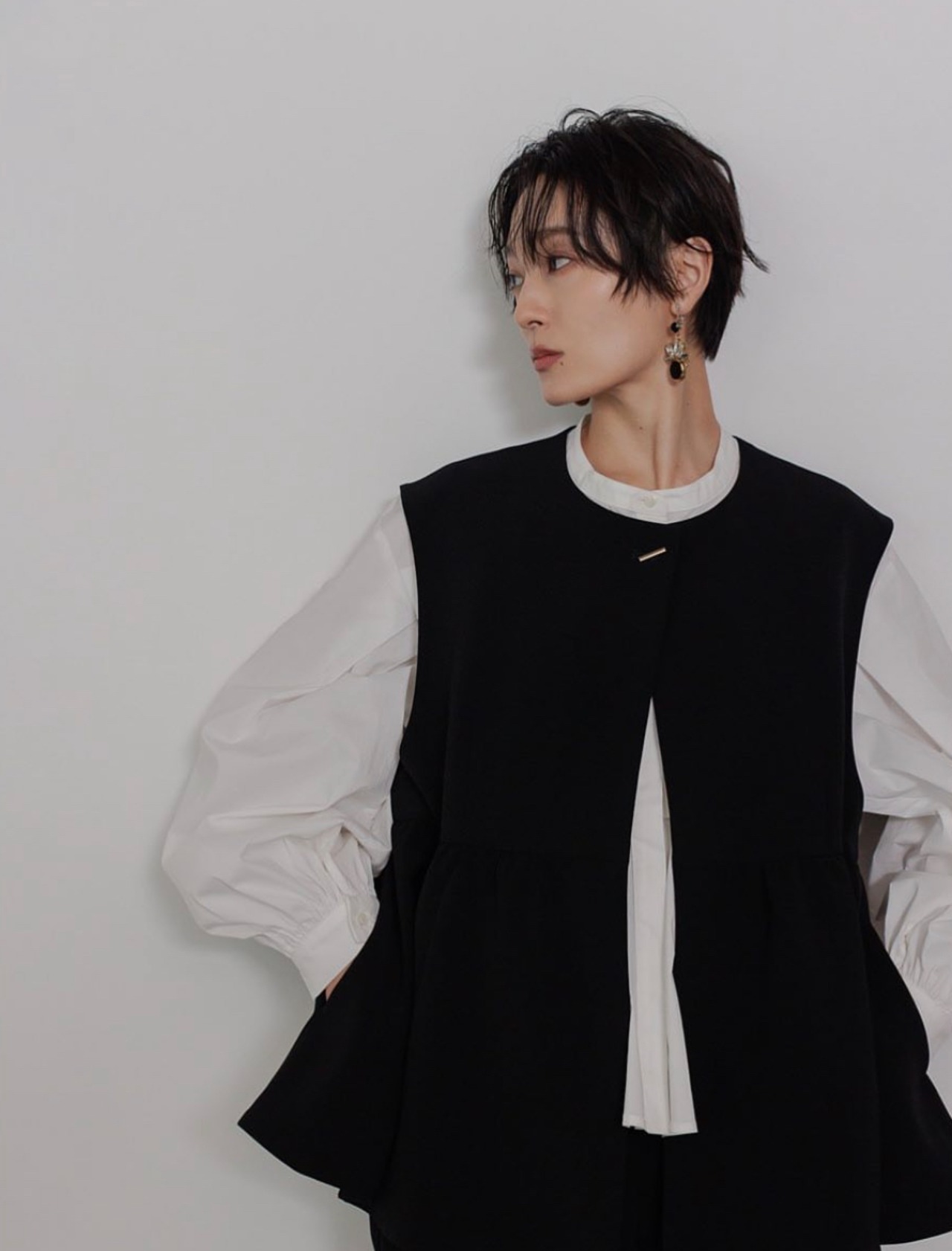 予約販売【 chignon 】ダブルクロスペプラムベスト [4436-520MK] 11月下旬お届け