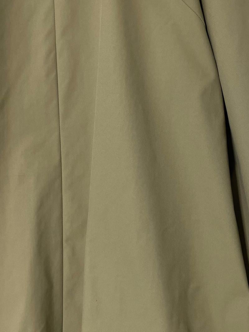 襟元はコンパクトに仕上げ、ミニマルな印象にも。フロントはドット釦を採用し、ミリタリー要素をプラスしました。コーディネートを華やかに彩る1着に仕上げました。