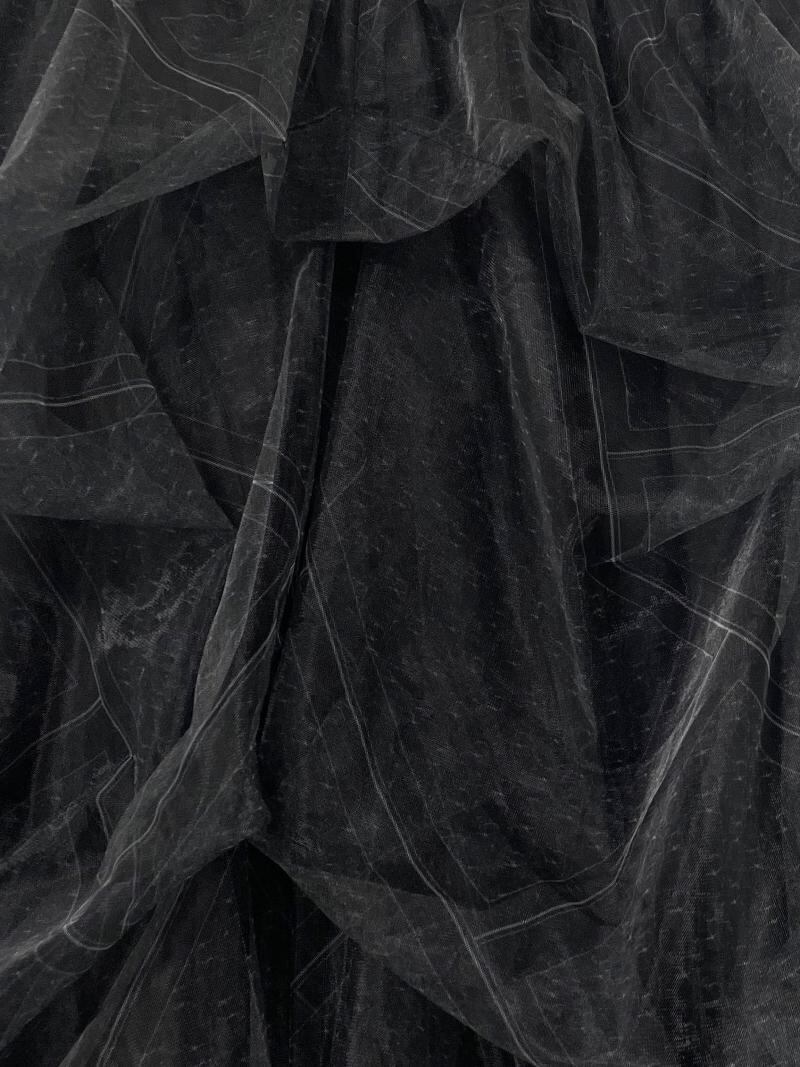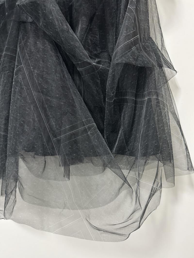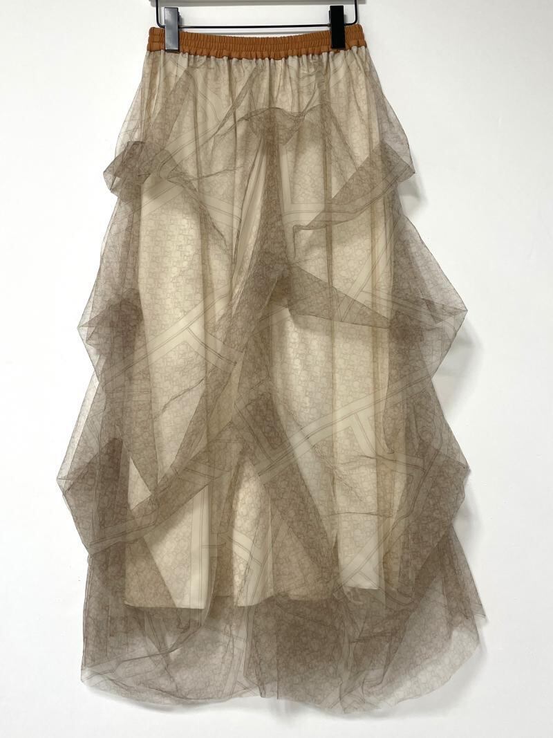 オリジナルのシニヨンモチーフモノグラム柄をチュールにプリントした、