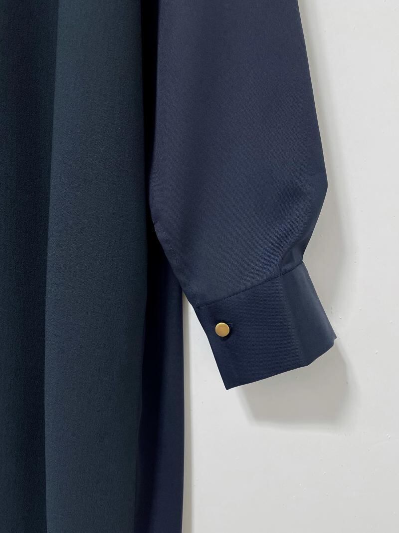 衿ぐりは詰まり過ぎないスタンドカラーにしていますので、程よく上品な印象に仕上げています。