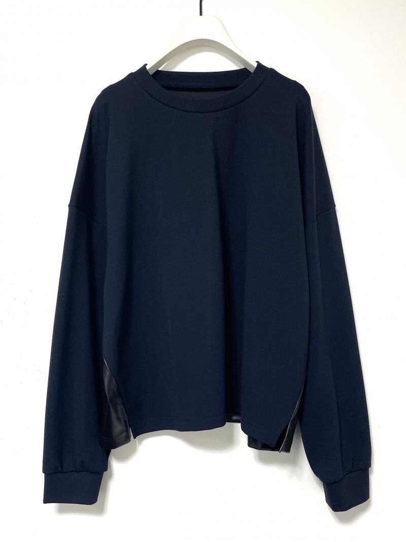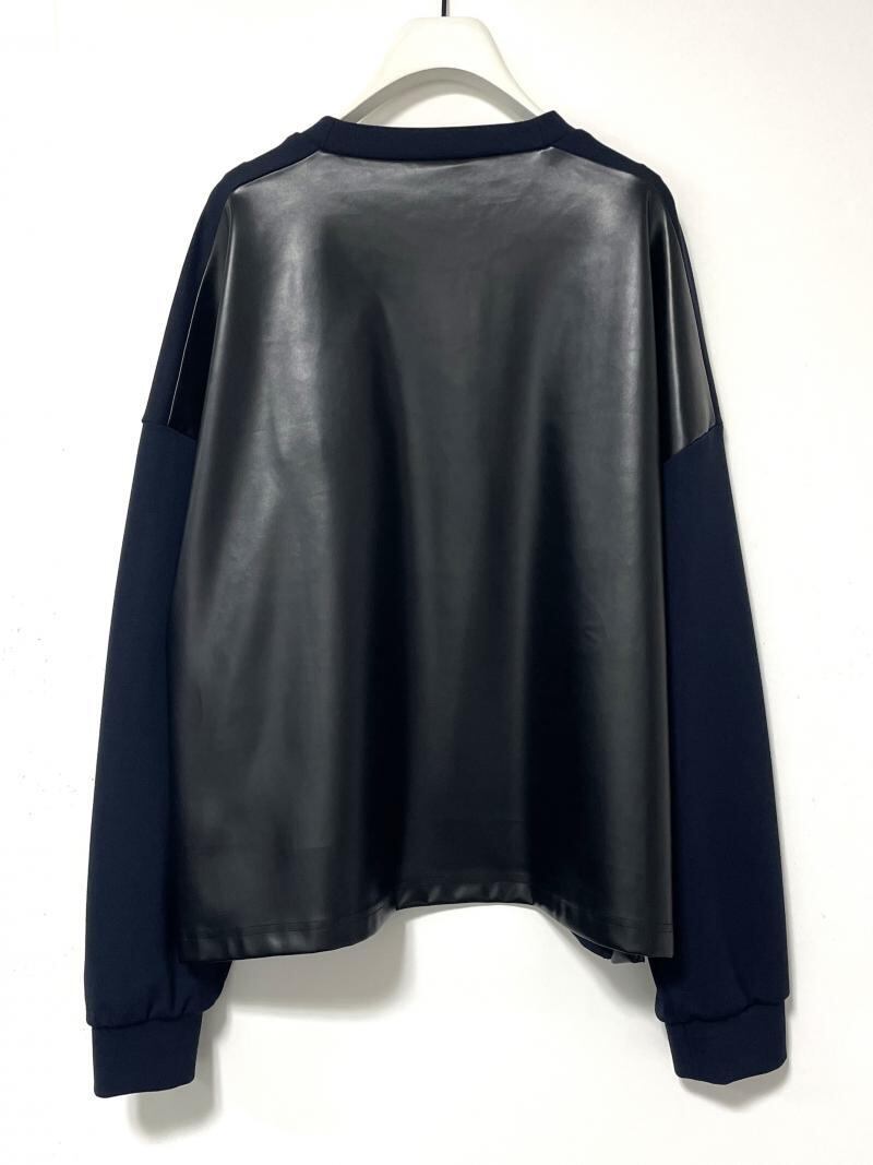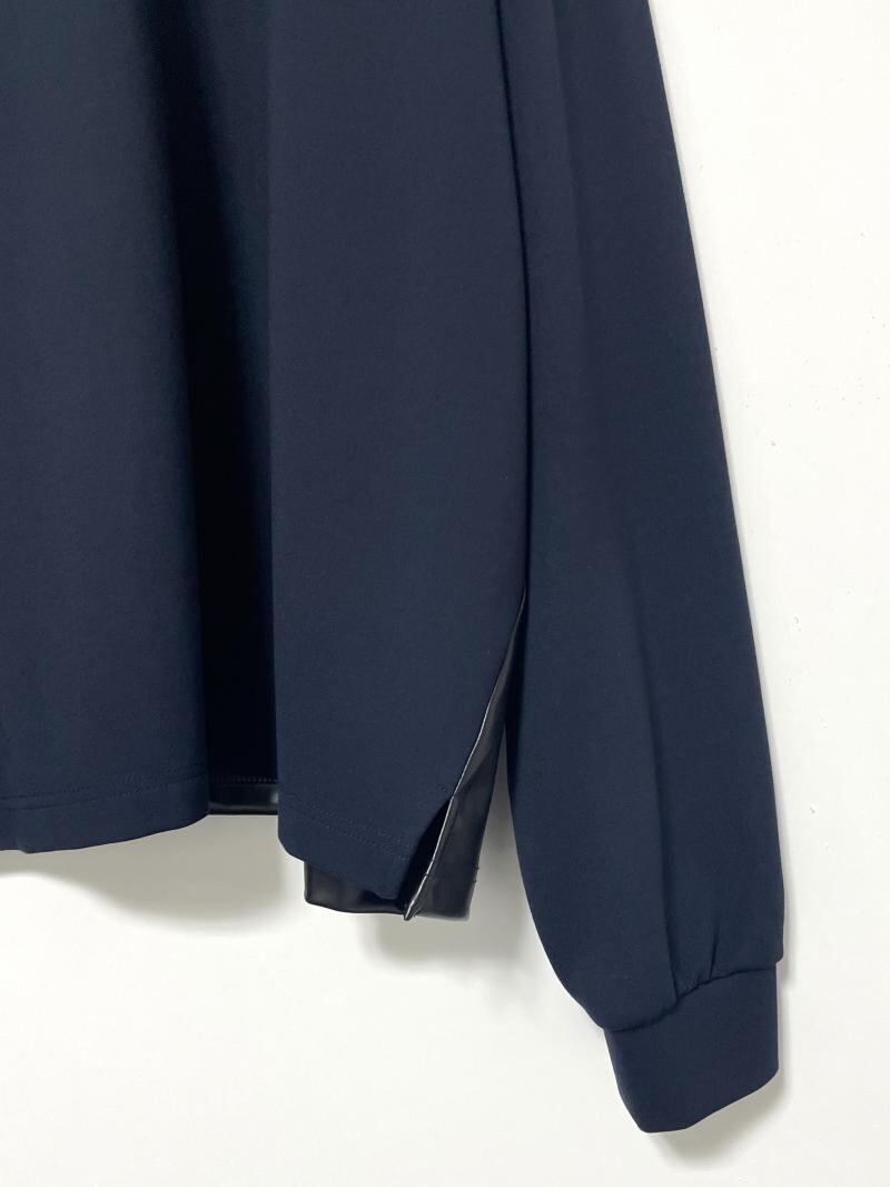 ジャージー素材とフェイクレザーを切り替えたデザインTOPSです。