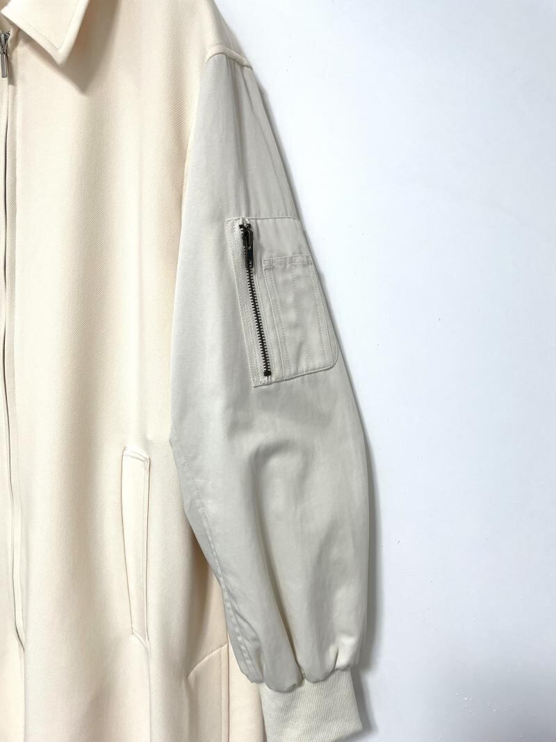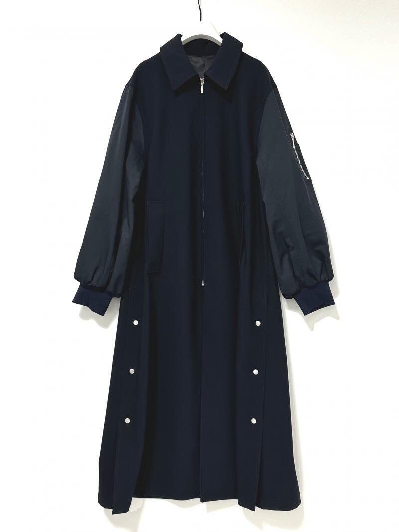 MA-1の袖がドッキングされたハイブリットな印象のロングコートです。