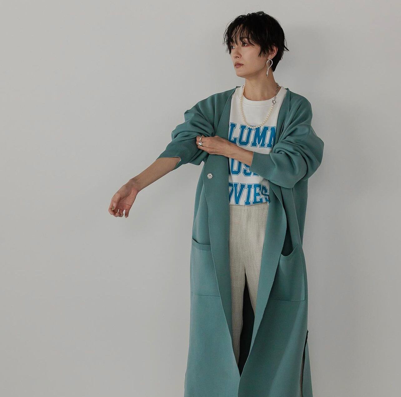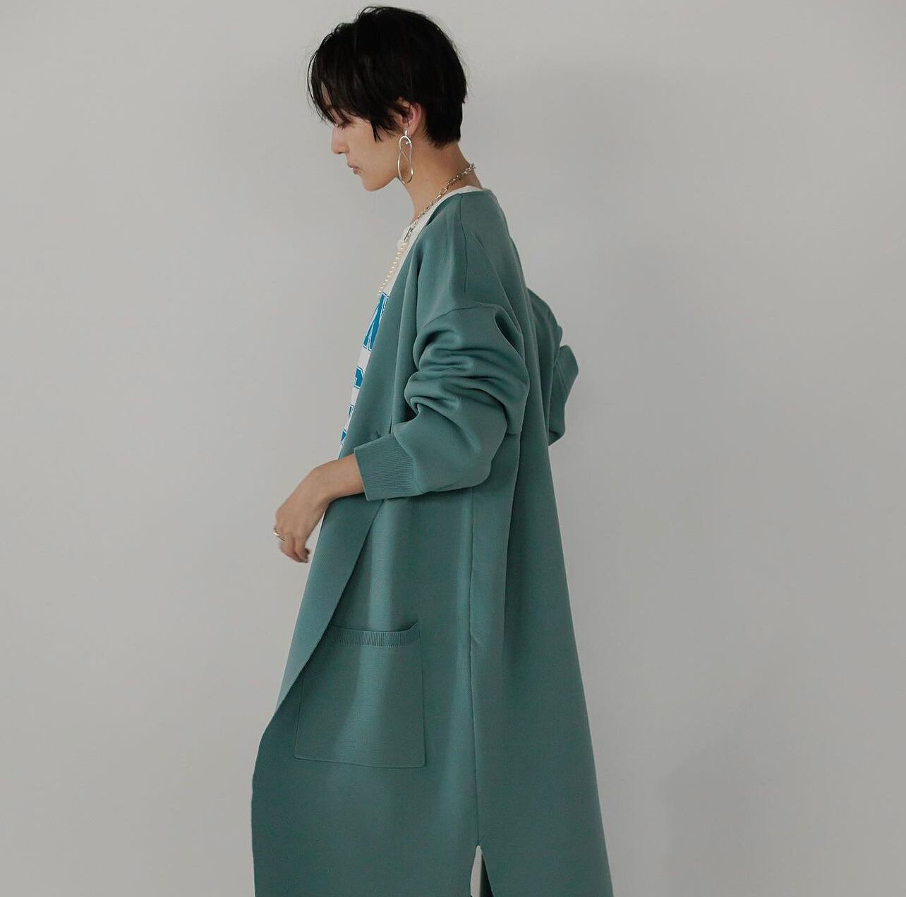 長めの着丈設定とすっきりとした衿もとで女性らしさを演出。