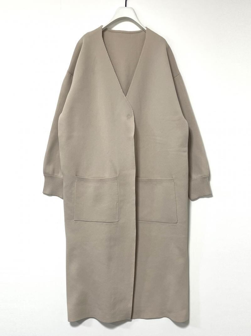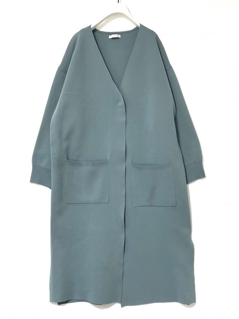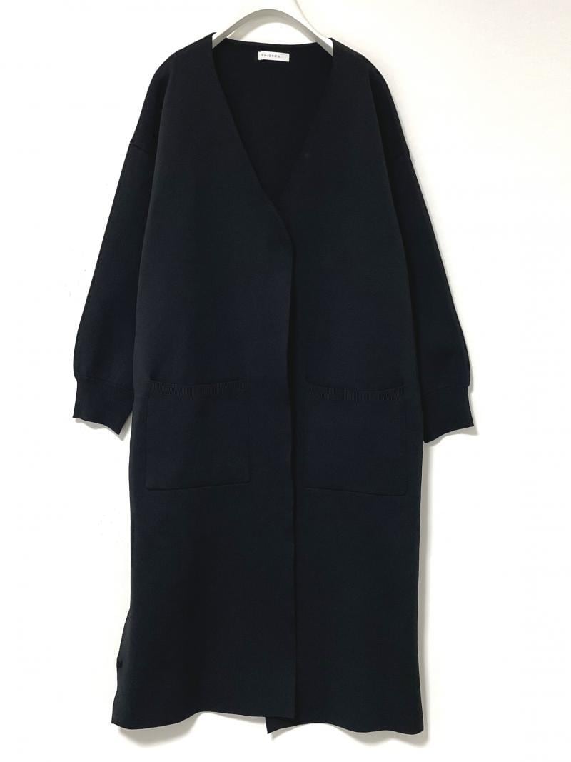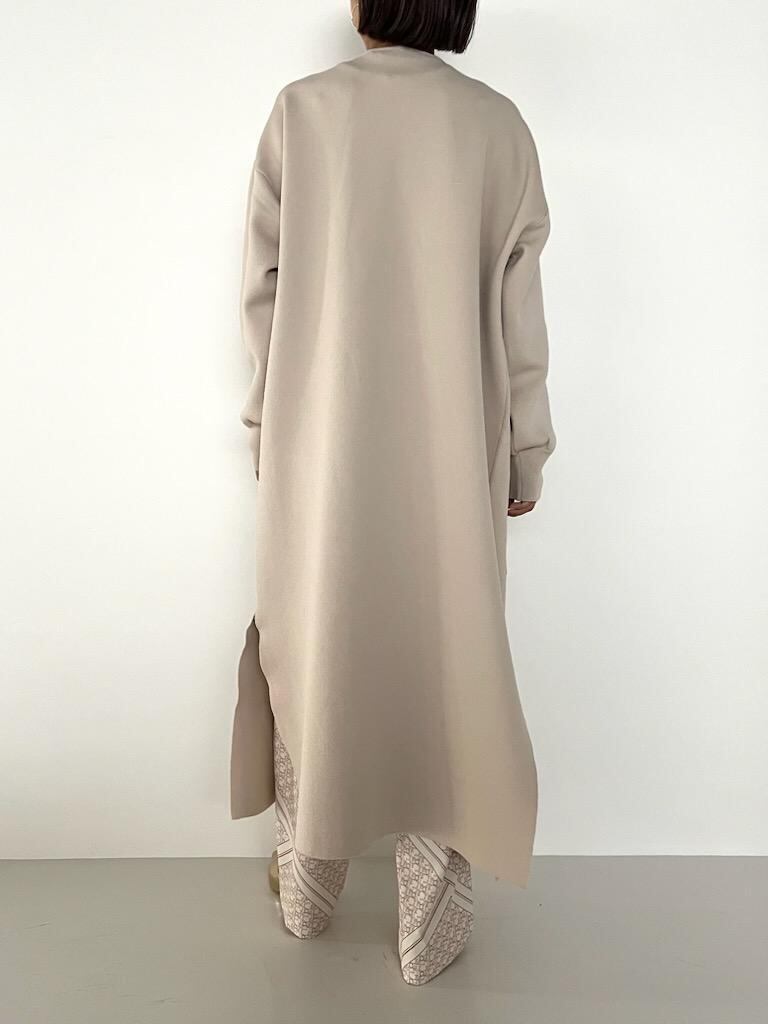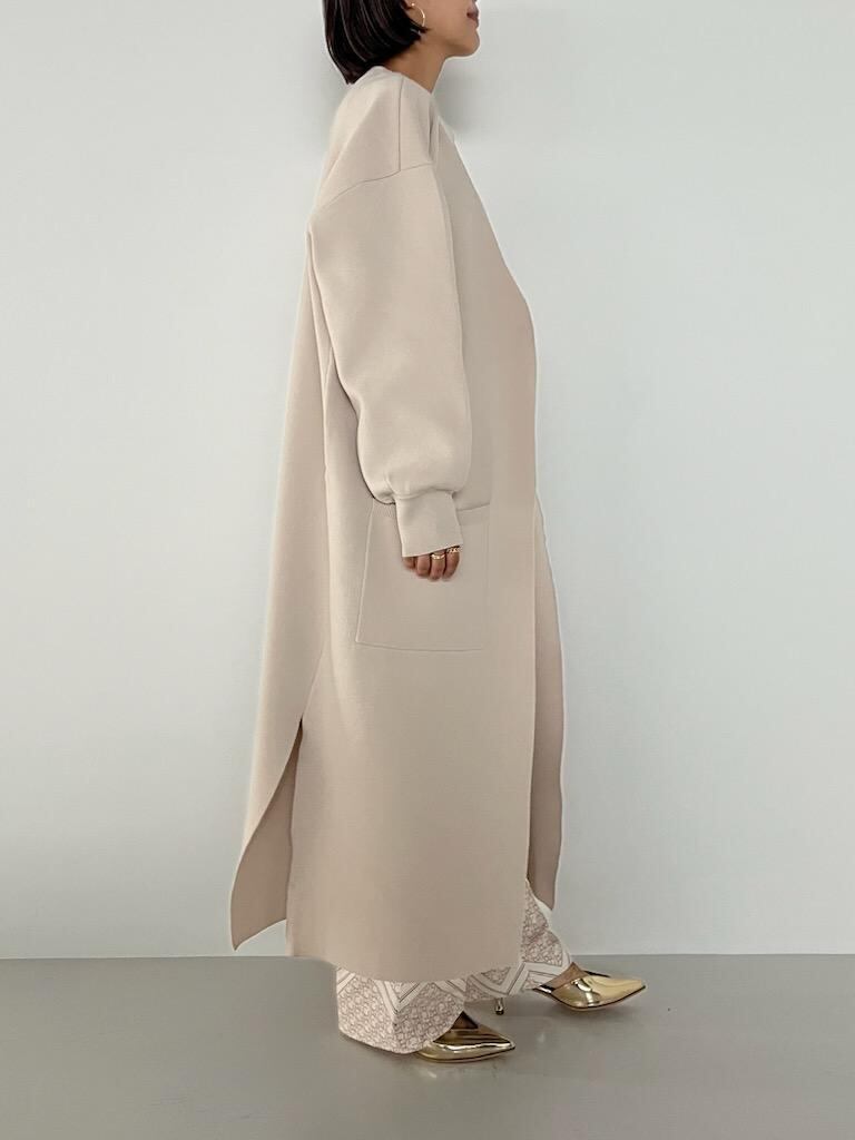 ポリエステル素材の糸を使用したニットのロングカーディガンです。