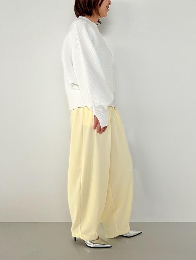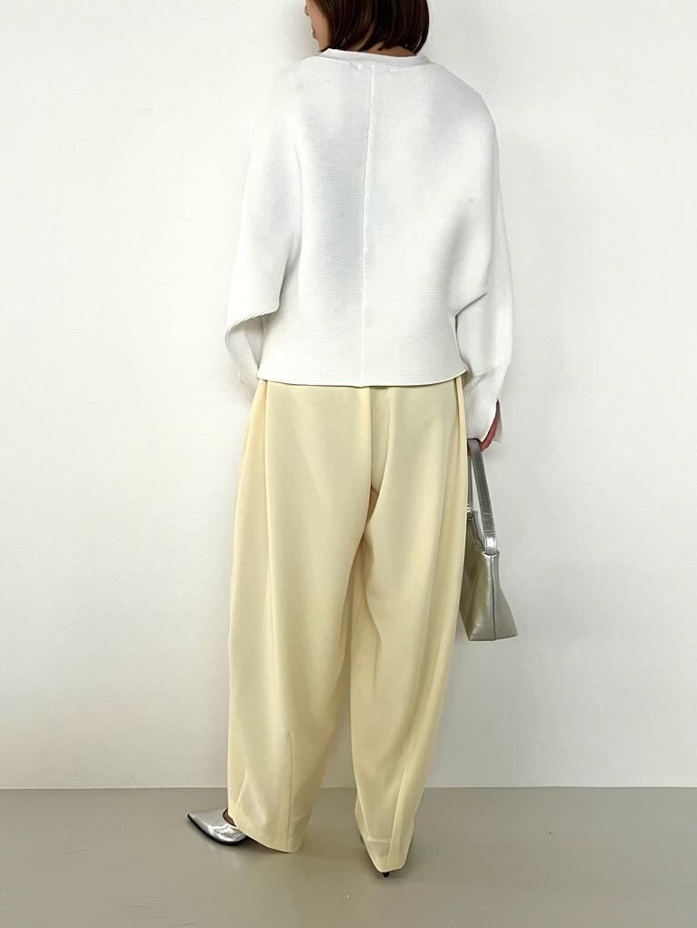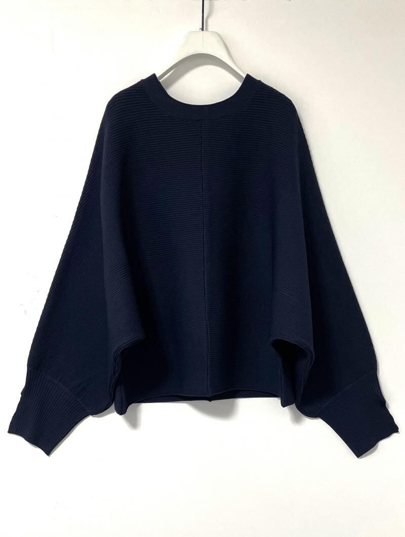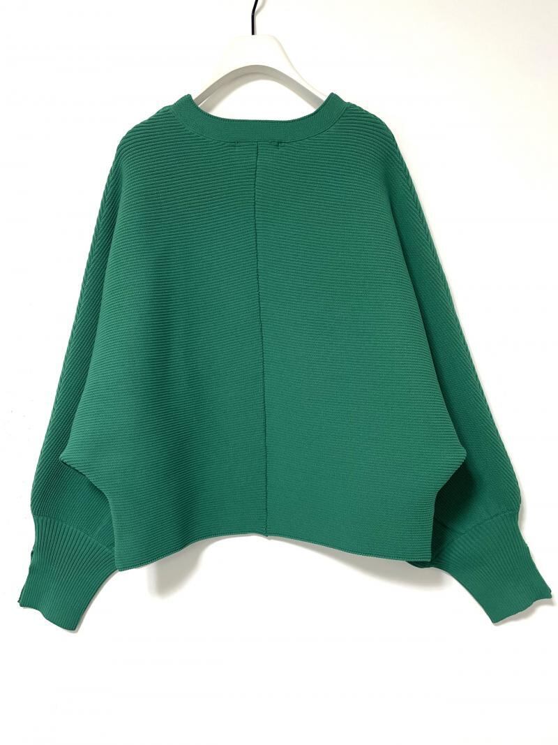 ガーター編みにする事で、横に程よくハリ感が生まれ、ドルマンのシルエットを活かしたデザインにしています。