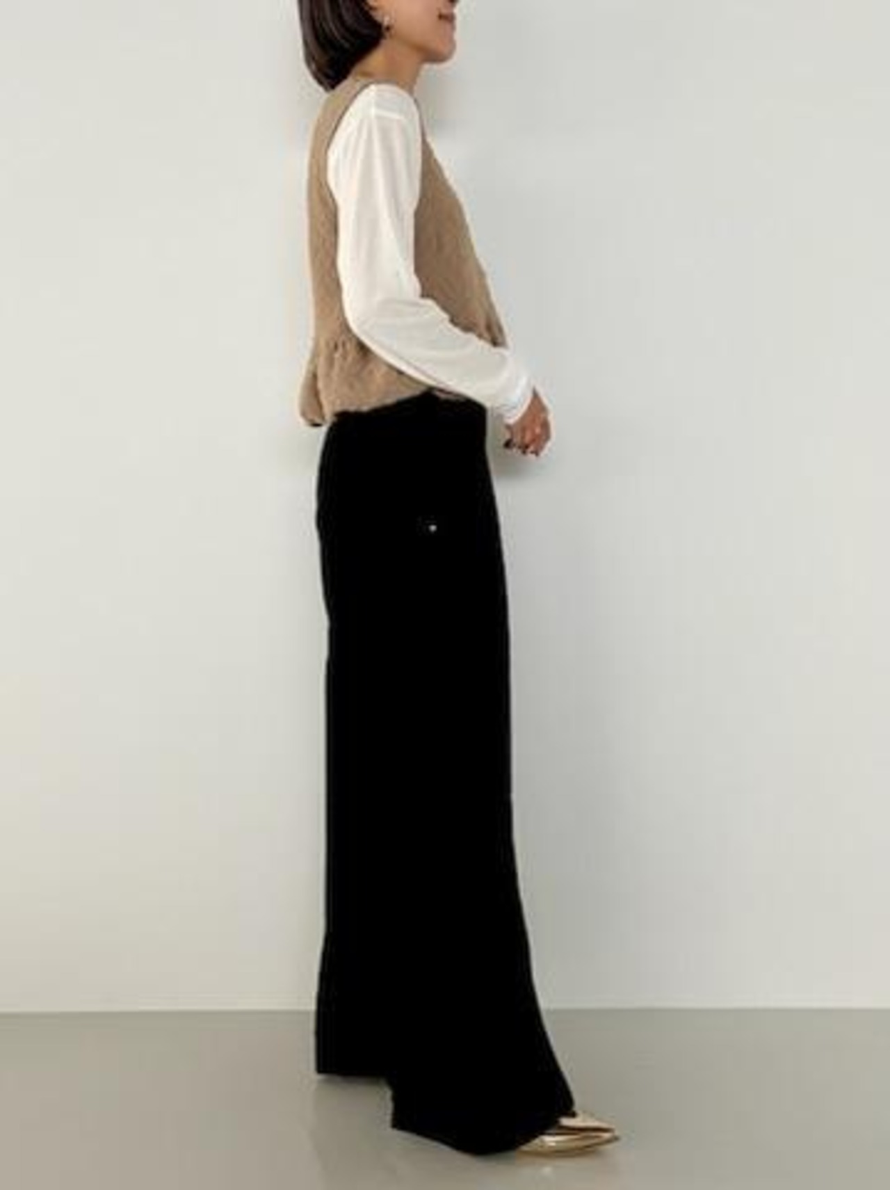 程よくゆとりのあるサイズ感にしているので、ロンTeeやルーズシャツとレイヤードして頂くのがおすすめです。