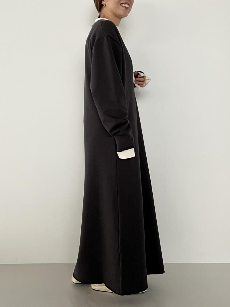 衿ぐりは深めのシャープなラインにし、インナーをレイヤードしやすい明き設定にしています。