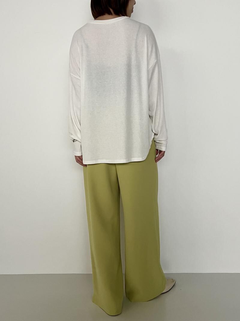 リブ素材のジャージーをセレクトすることでリラックスな着心地がポイント。落ち感も兼ね備えており女性らしくご着用いただけます。ルーズなシルエット設計で女性らしくご着用いただけます。