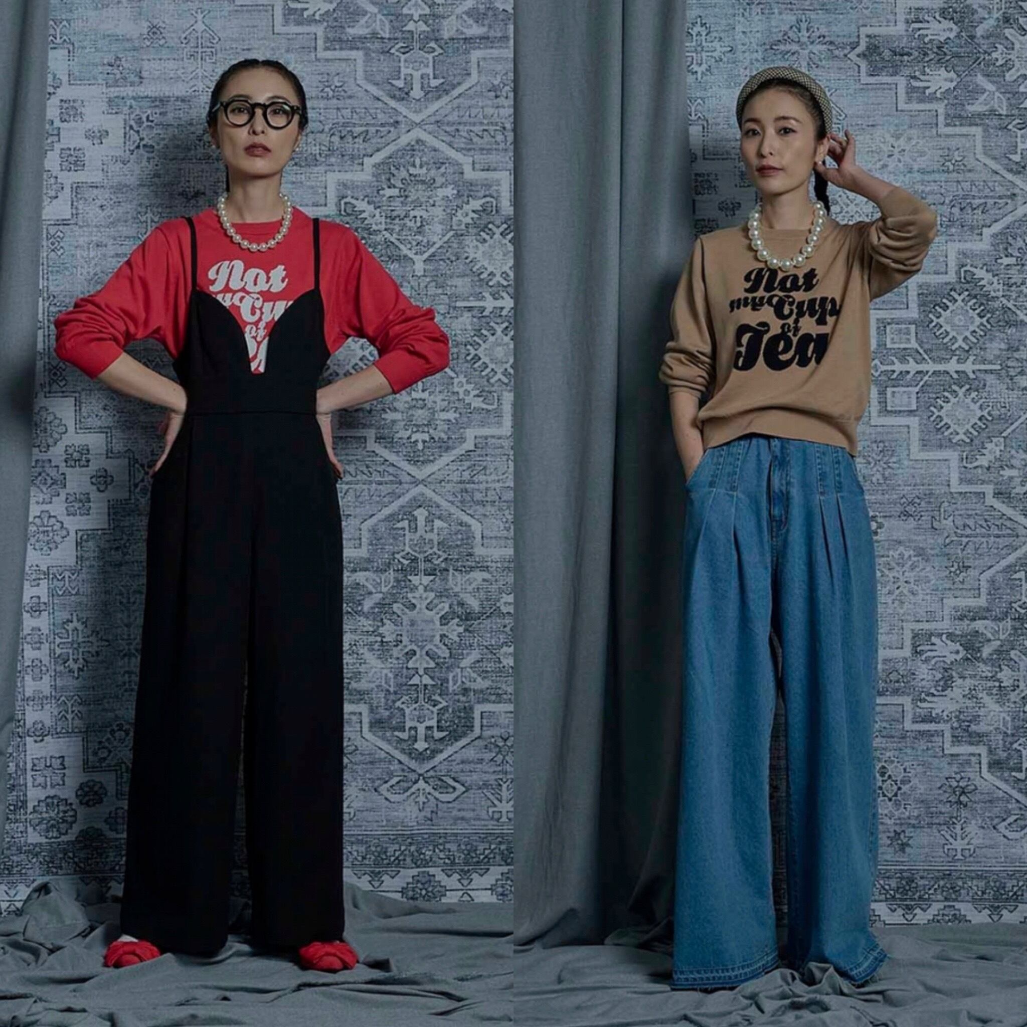 IT’S NOT MY CUP OF TEA というロゴを入れています。イギリスでよく使われる表現で”私の好みじゃない””私の範疇外だよ”私のマイカップには入らない、という紅茶文化に因んだ表現です。今回の”君の好きな花”というコンセプトストアとのコラボレーションから、その意味、好きな花は人それぞれ、すべての人たちに好かれようとしなくてもいいんじゃないかな?というキーワードから好き嫌いをはっきりと思うこともあっていい、と思い、この言葉を選びました。ティータイムをしている二人の女の子がメインビジュアルになっています。好き嫌いをはっきりと持っている二人で、フレンドリーでもなく、さほど仲が良いわけでもない。でもはっきりとした意見を持っているこの二人は、お互いを認めあっているのではないかなという雰囲気を出しています。人の好みは人それぞれ、全ての人に好かれなくても良いかも、という考え方には共感をします。そのマイペースな女の子たちを表現してもらいました。