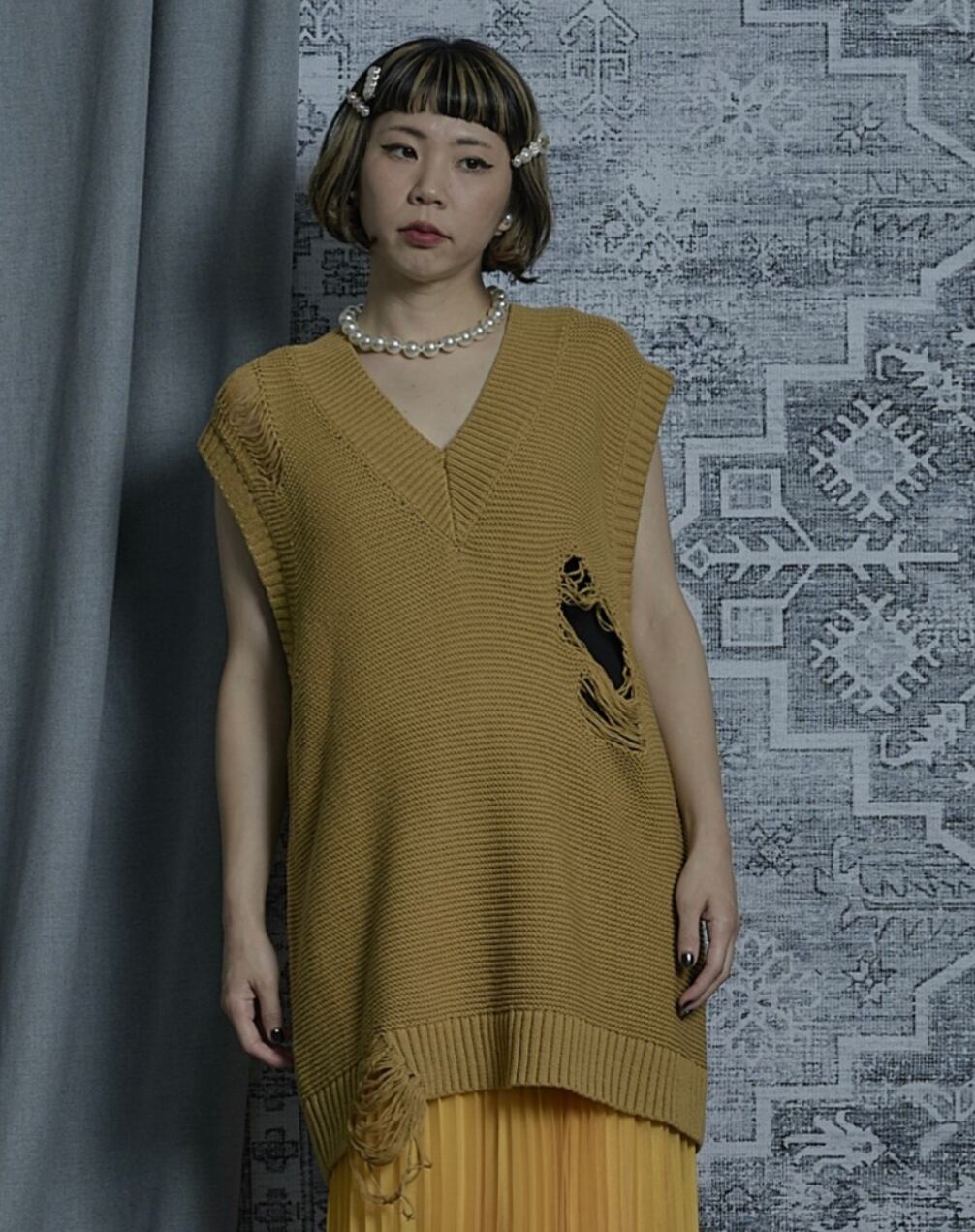★予約販売【 THOMAS MAGPIE 】damage knit vest (2241702) 2024年2月お届け