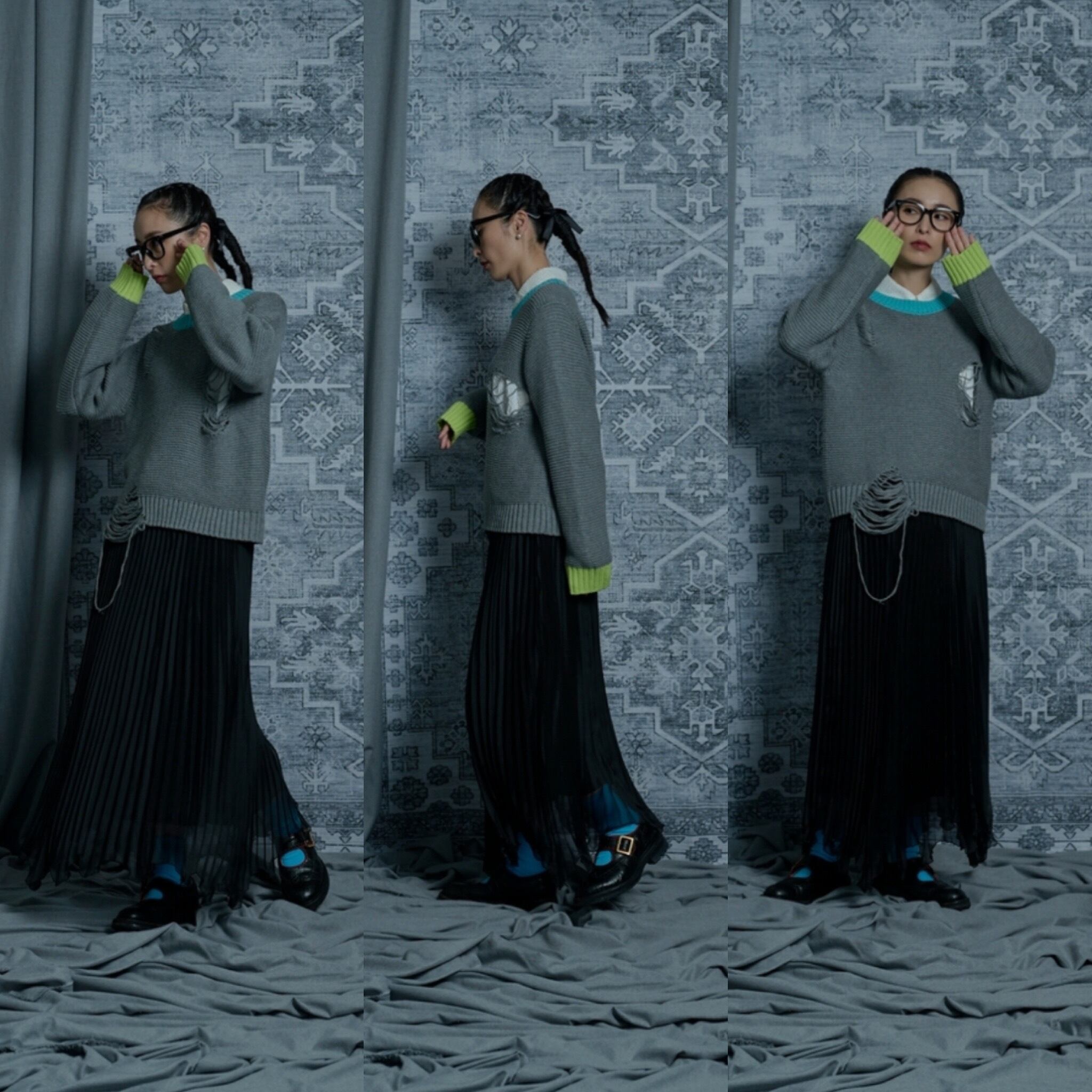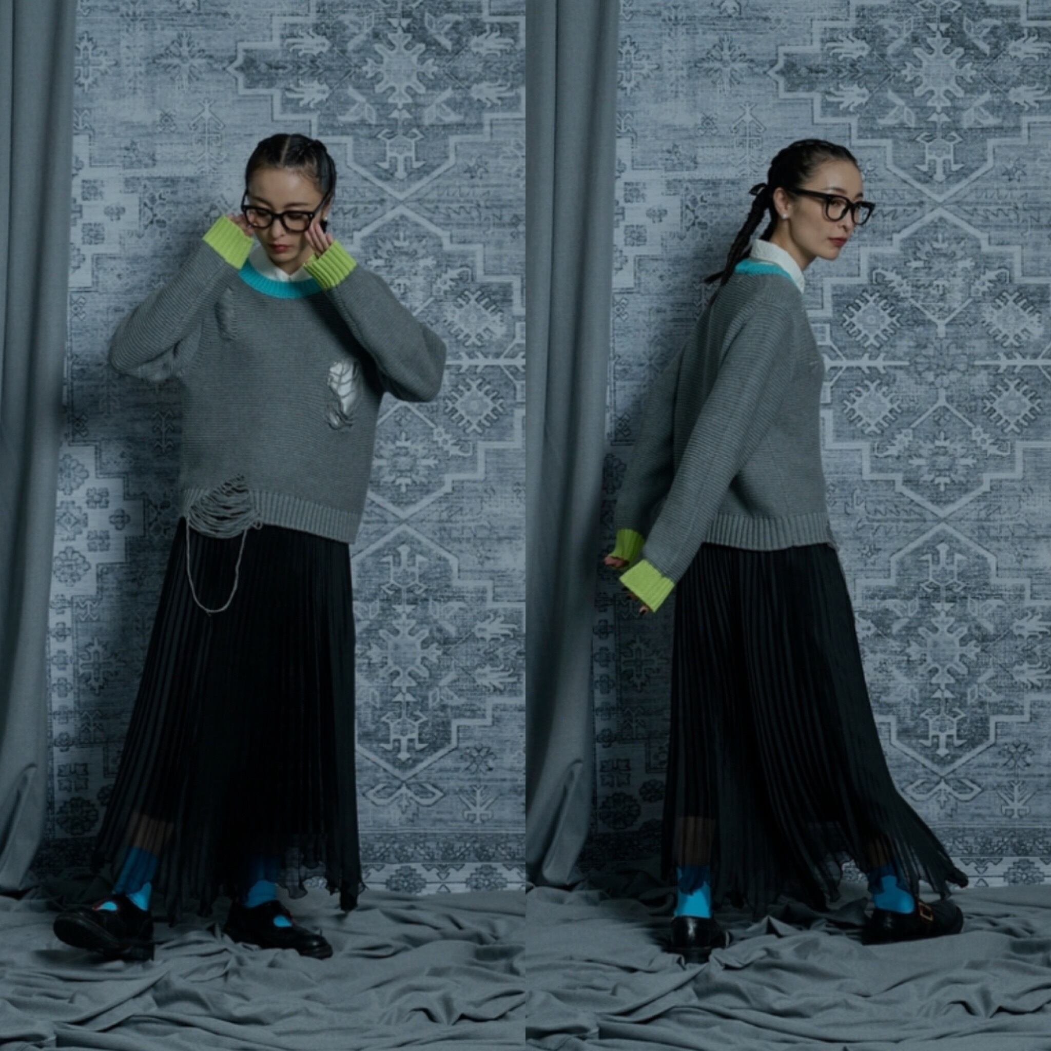 ★予約販売【 THOMAS MAGPIE 】damage knit pullover (2241701) 2024年2月お届け