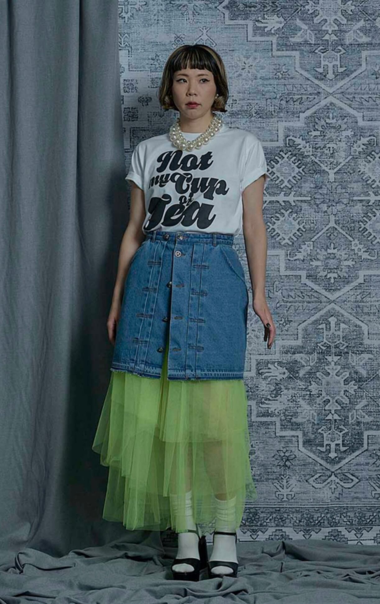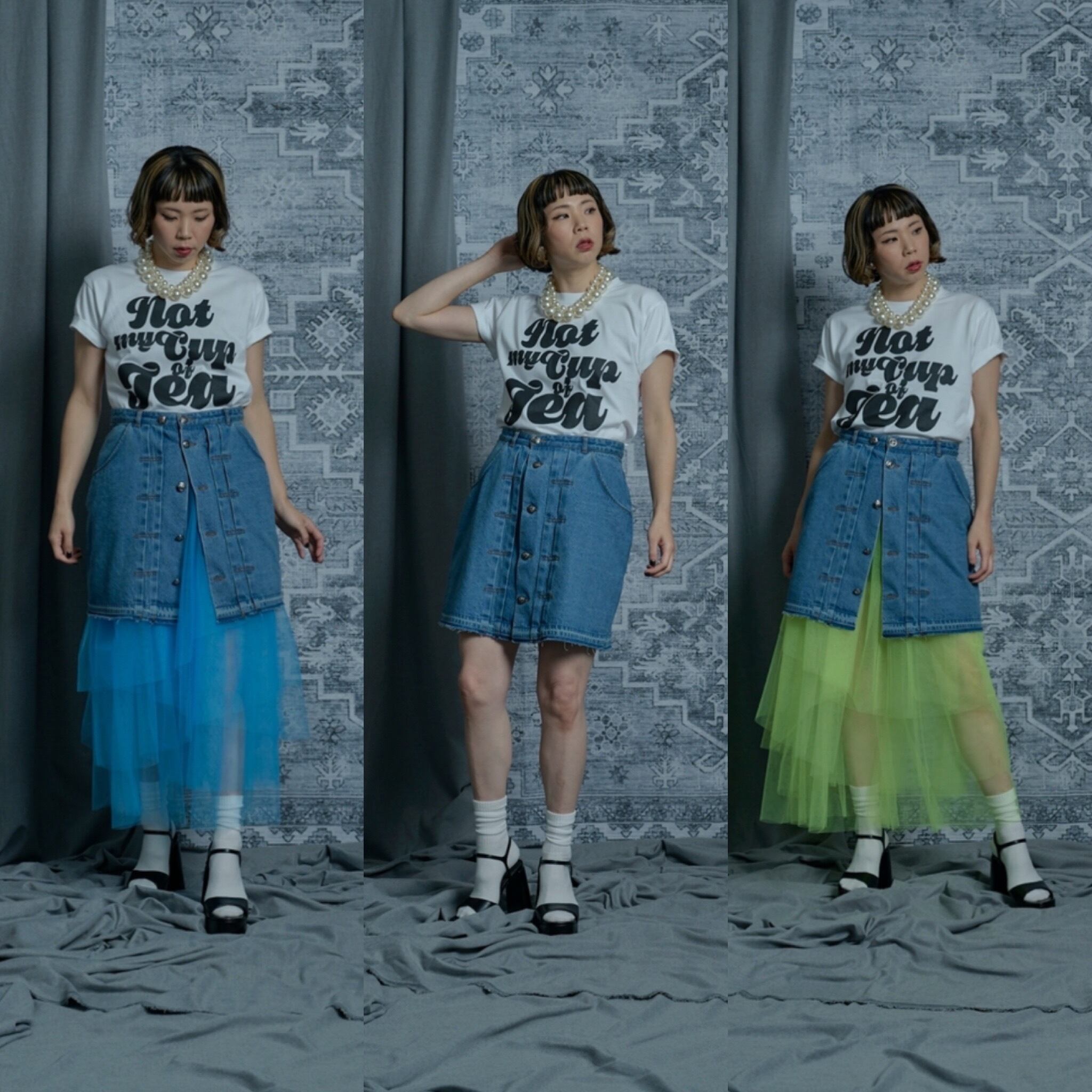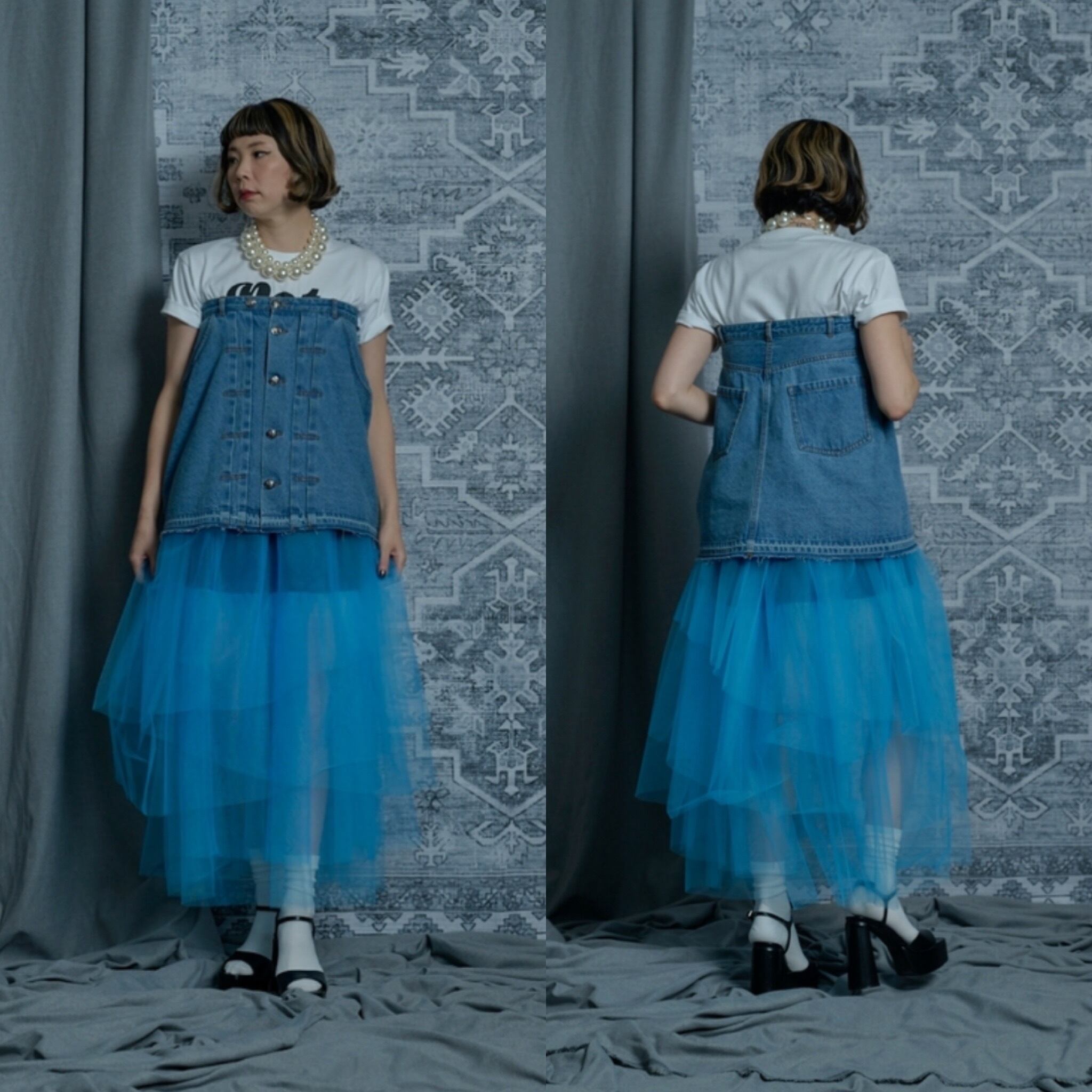 denim mini skirt (ペチコート付)
