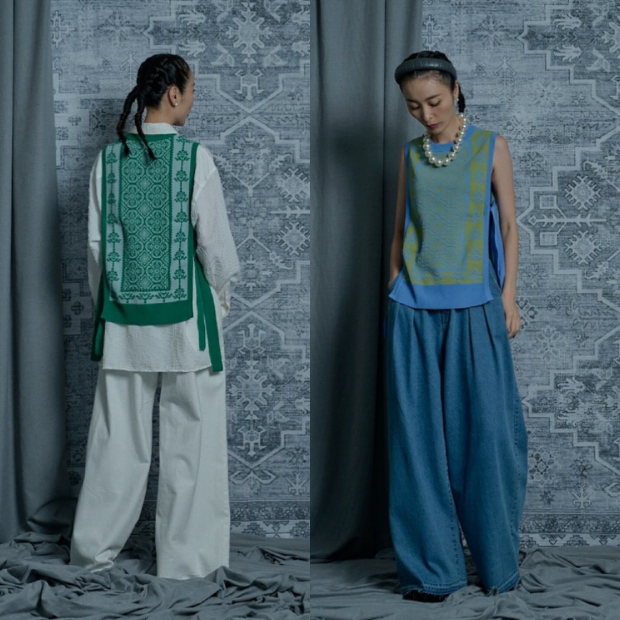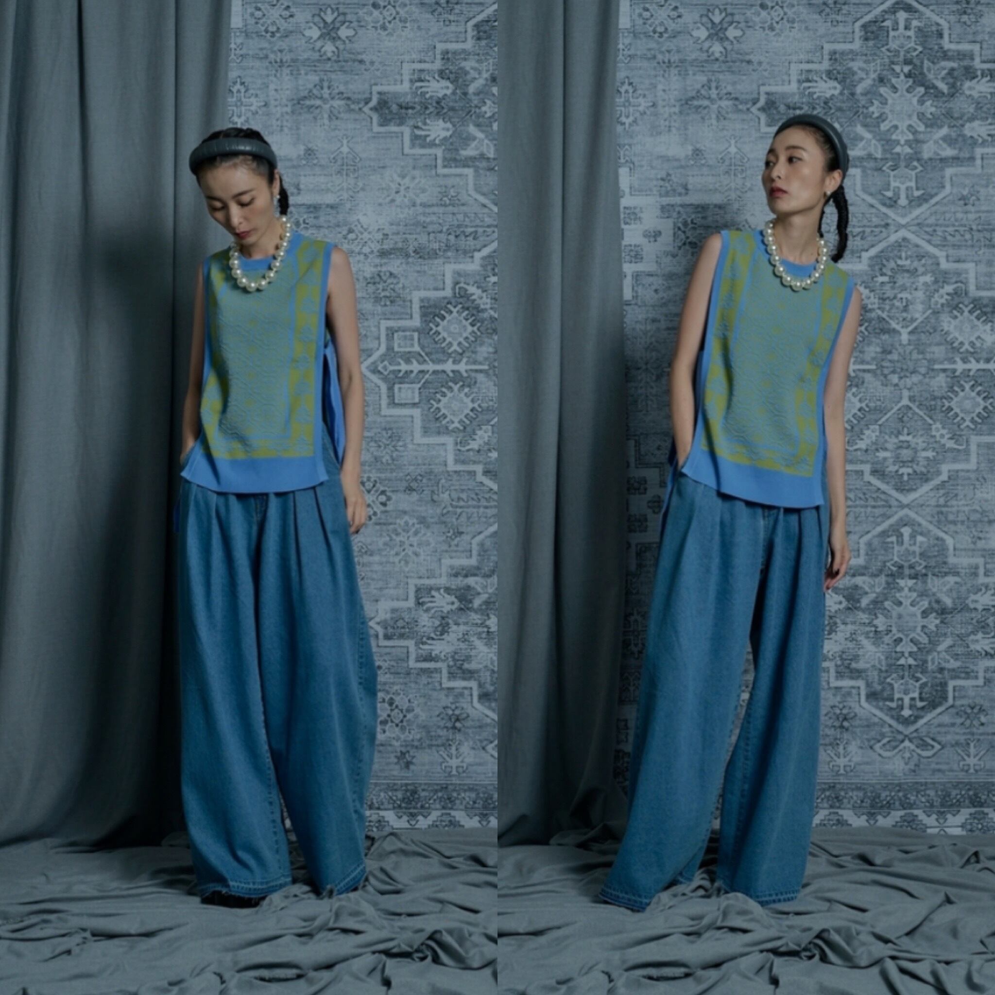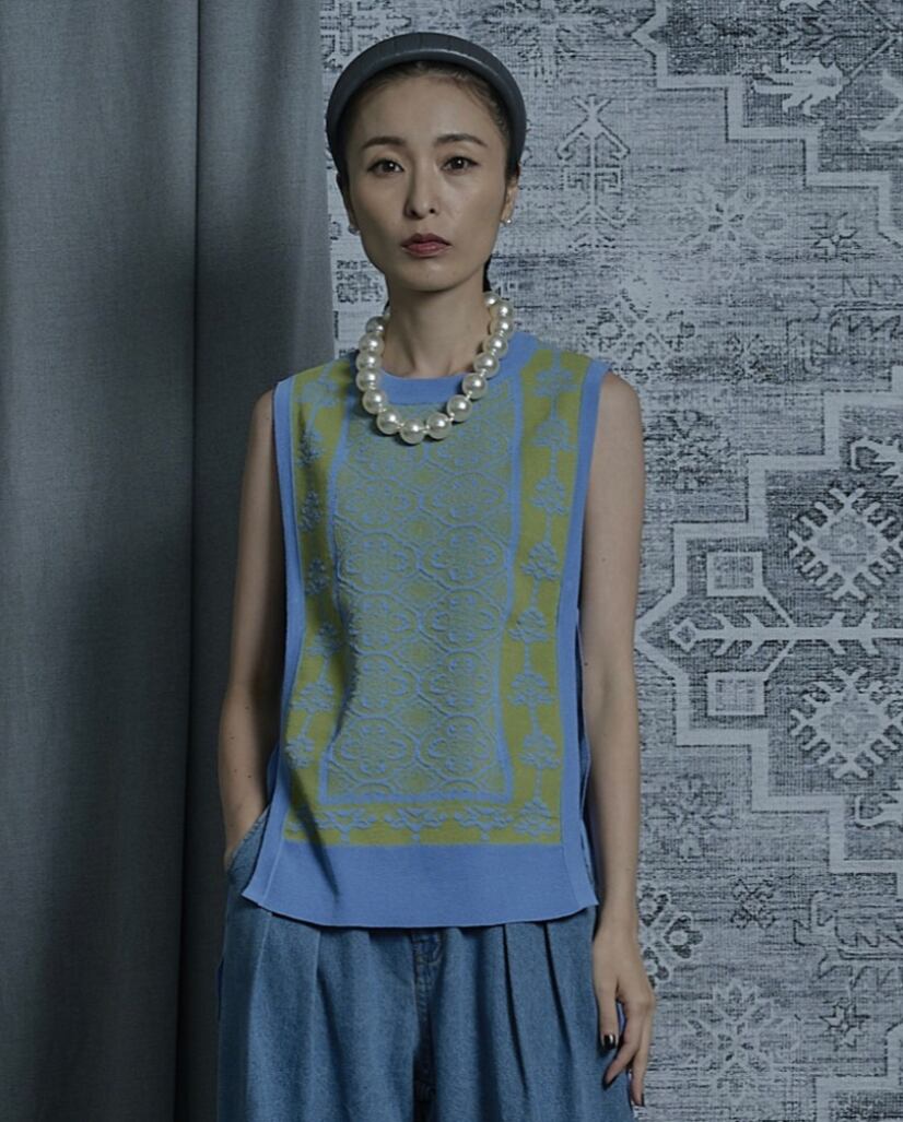 ★予約販売【 THOMAS MAGPIE 】damask knit vest (2241718) 2024年2月お届け