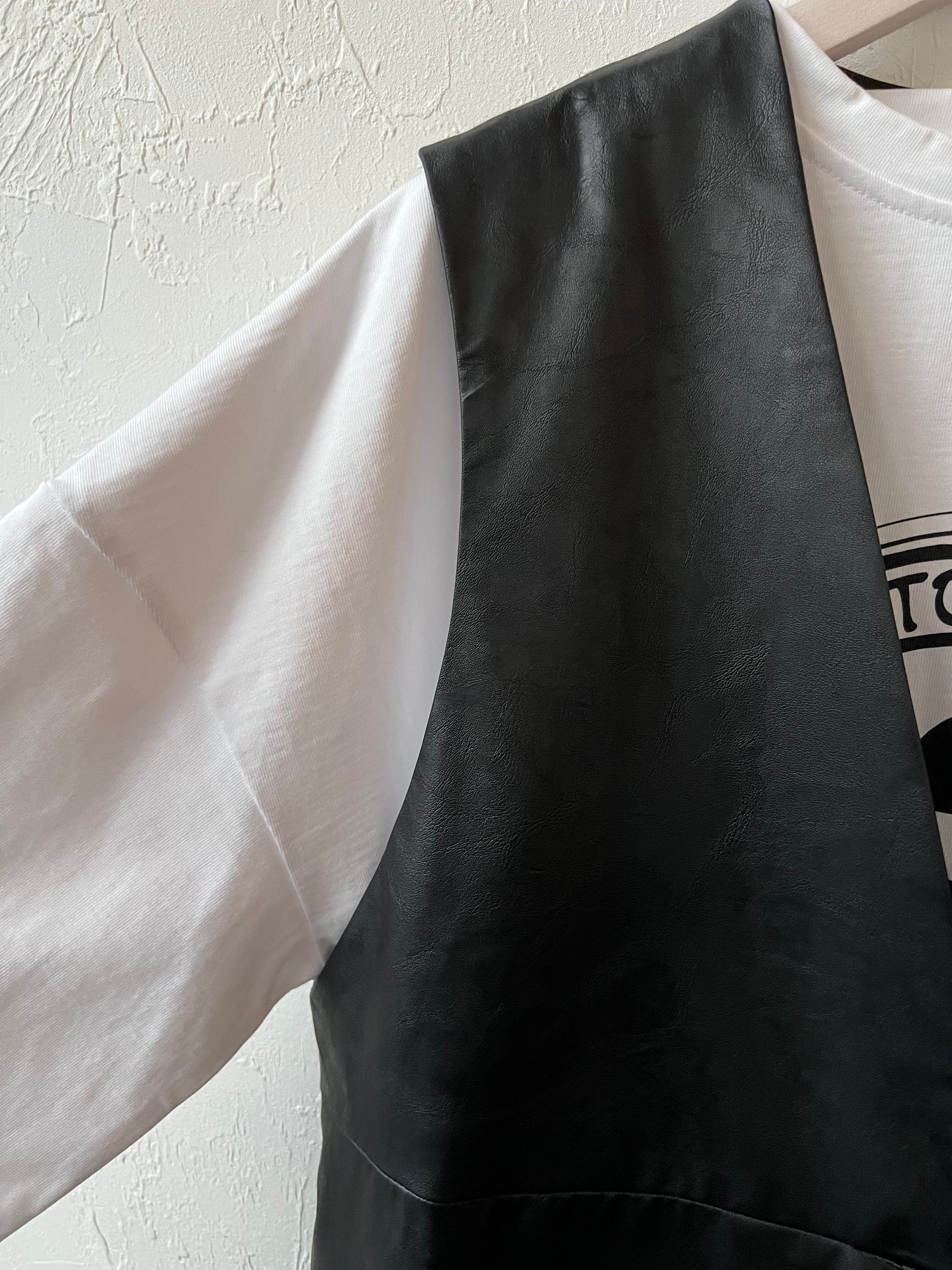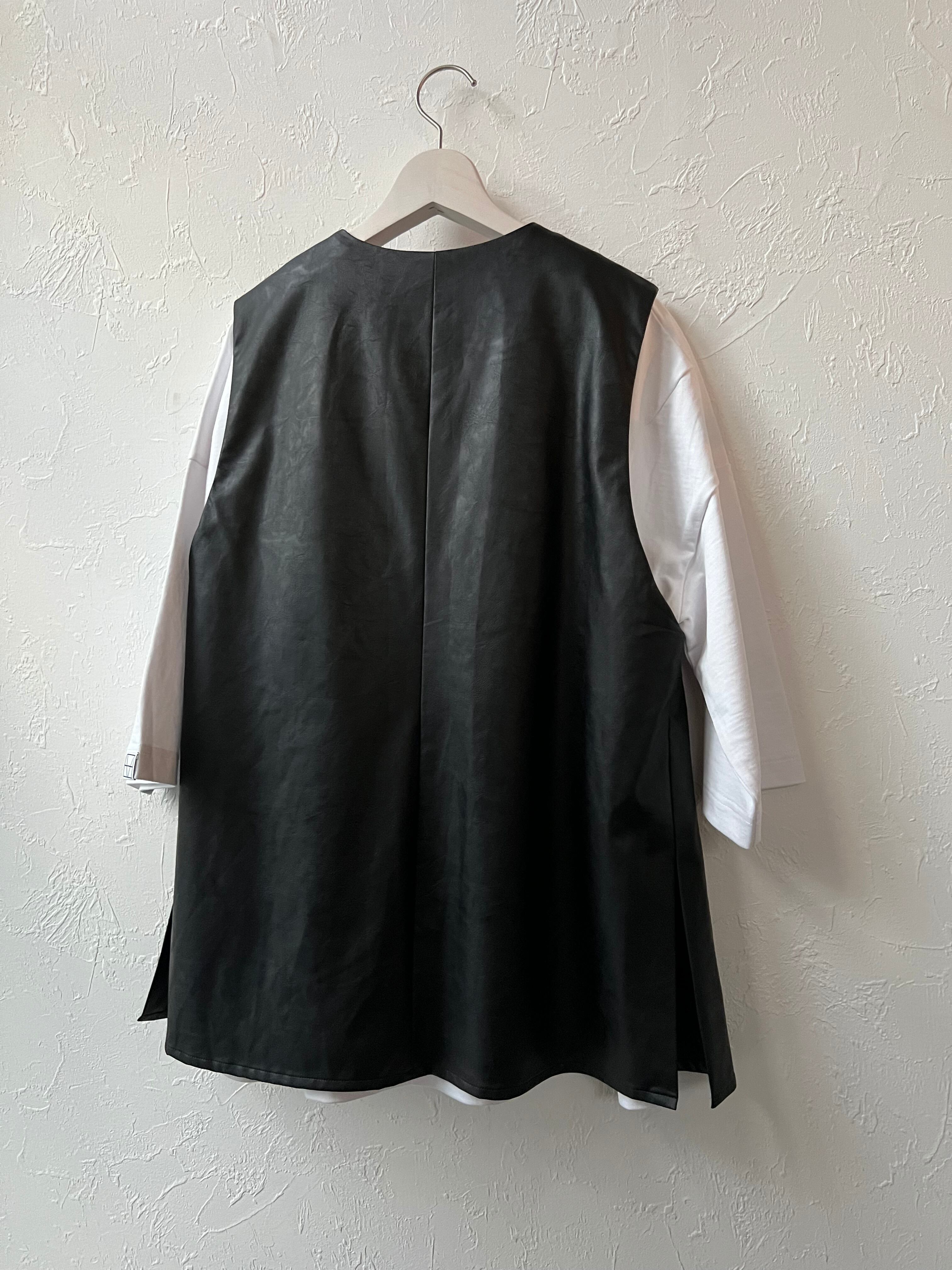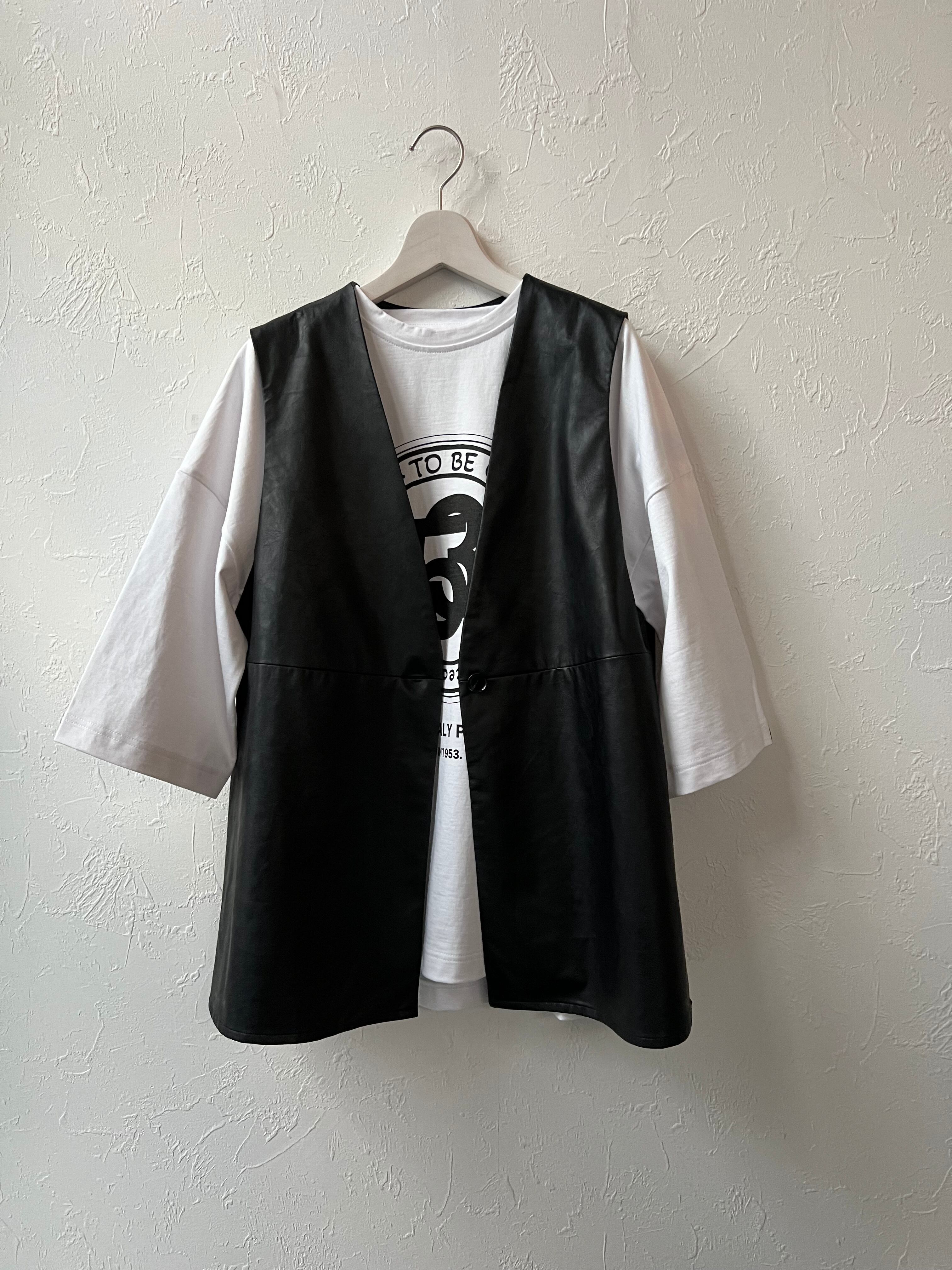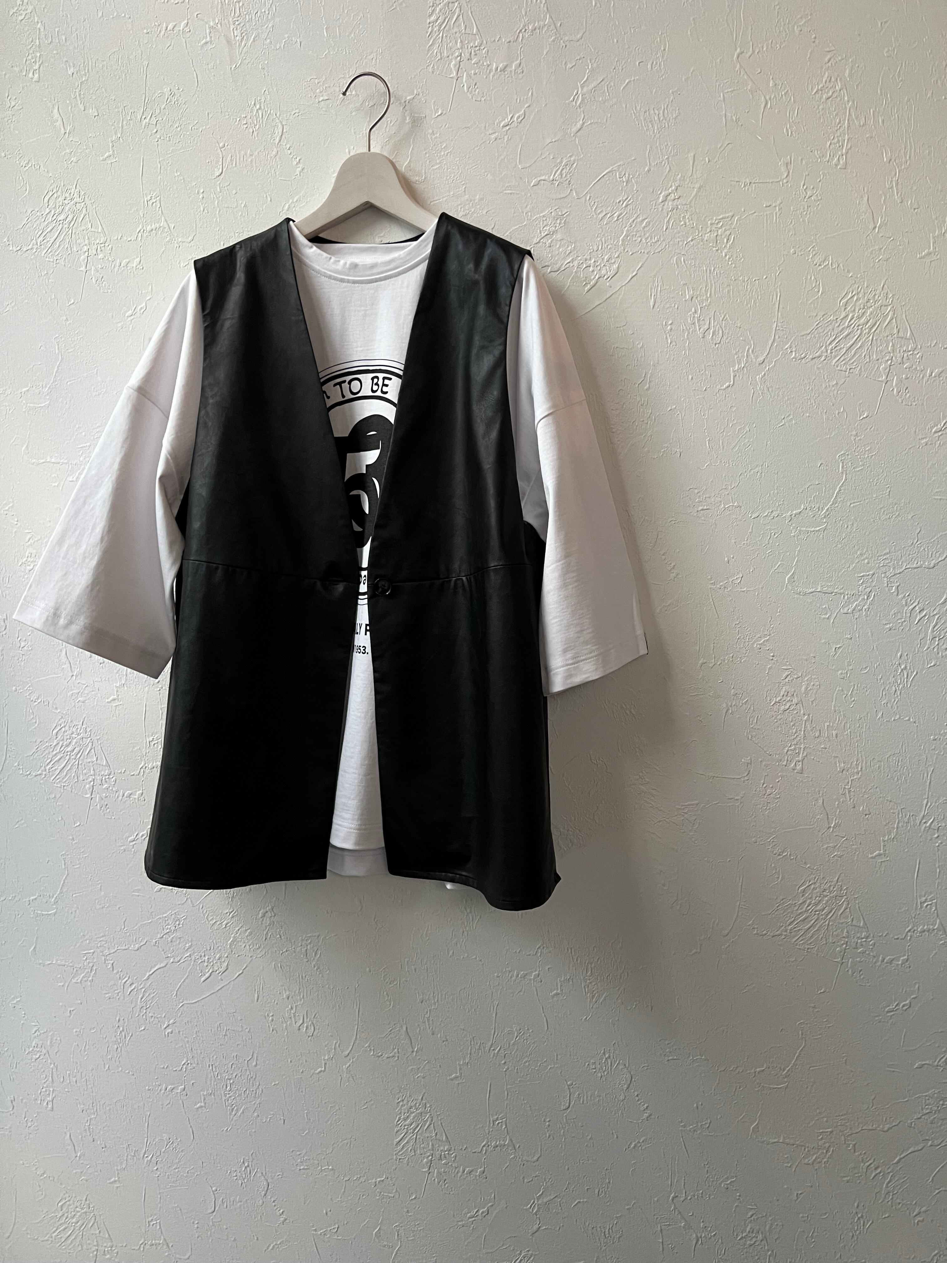 薄手のレザー調で色々なコーデに合わせやすいシンプルなベストです。