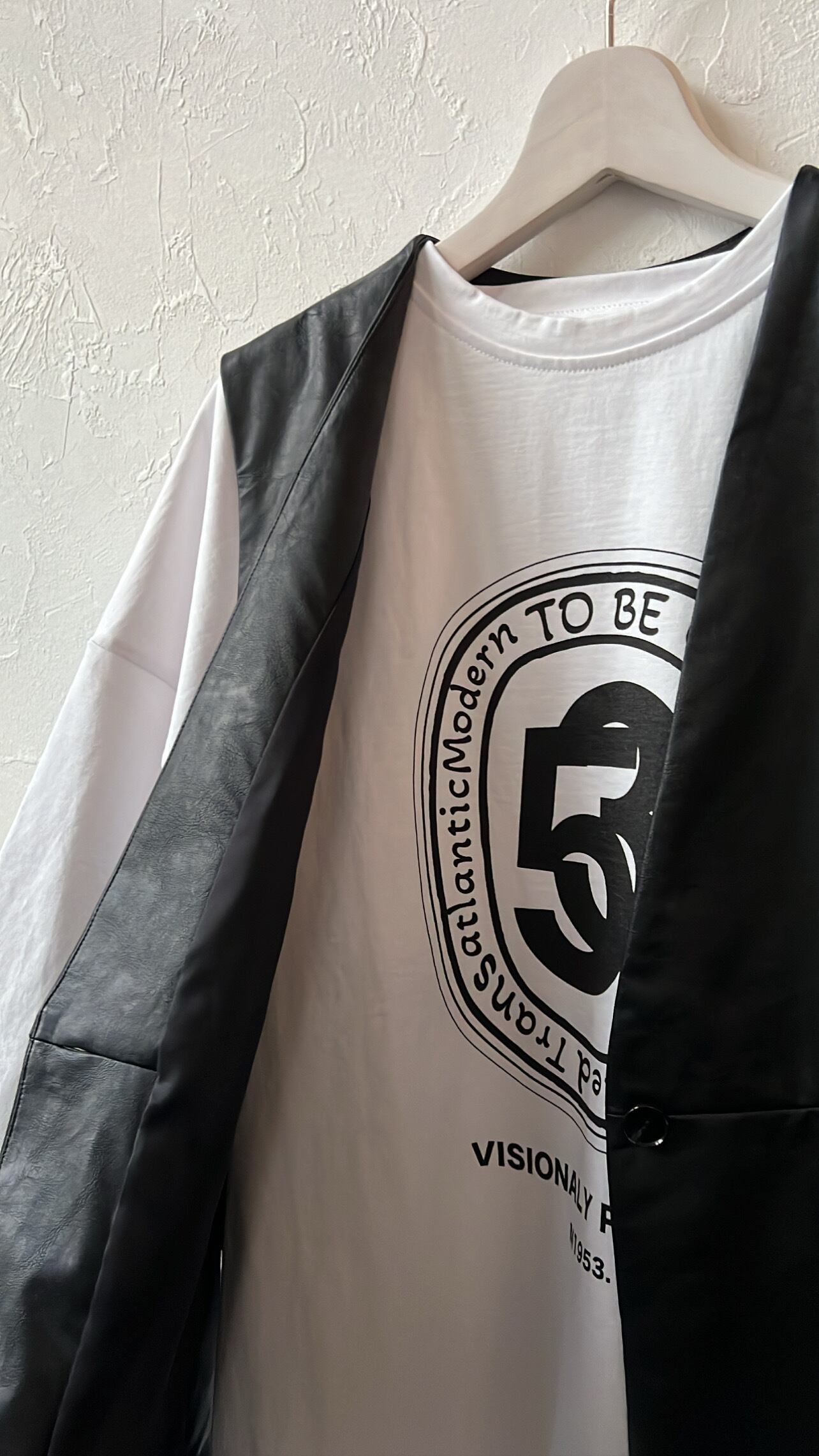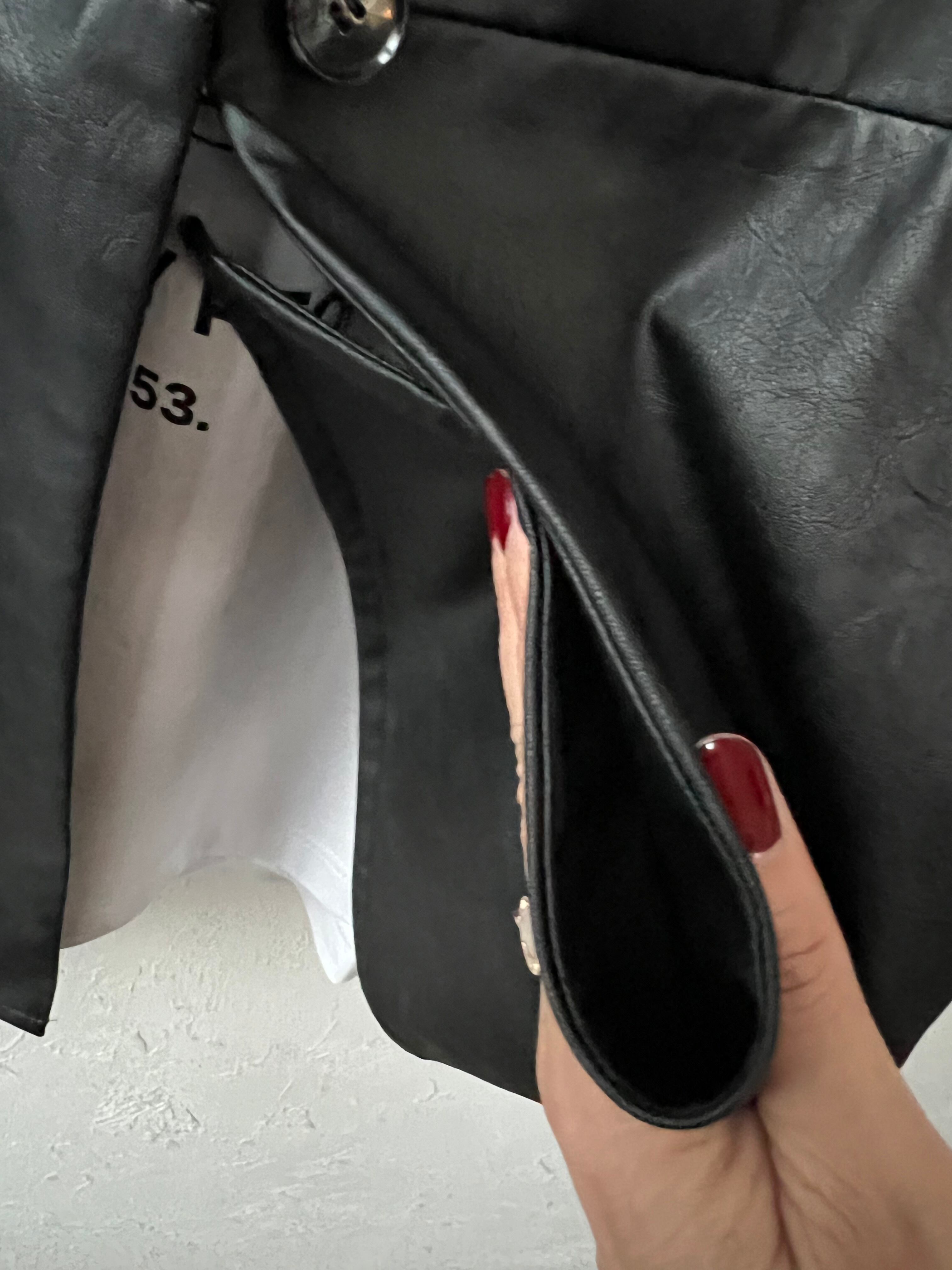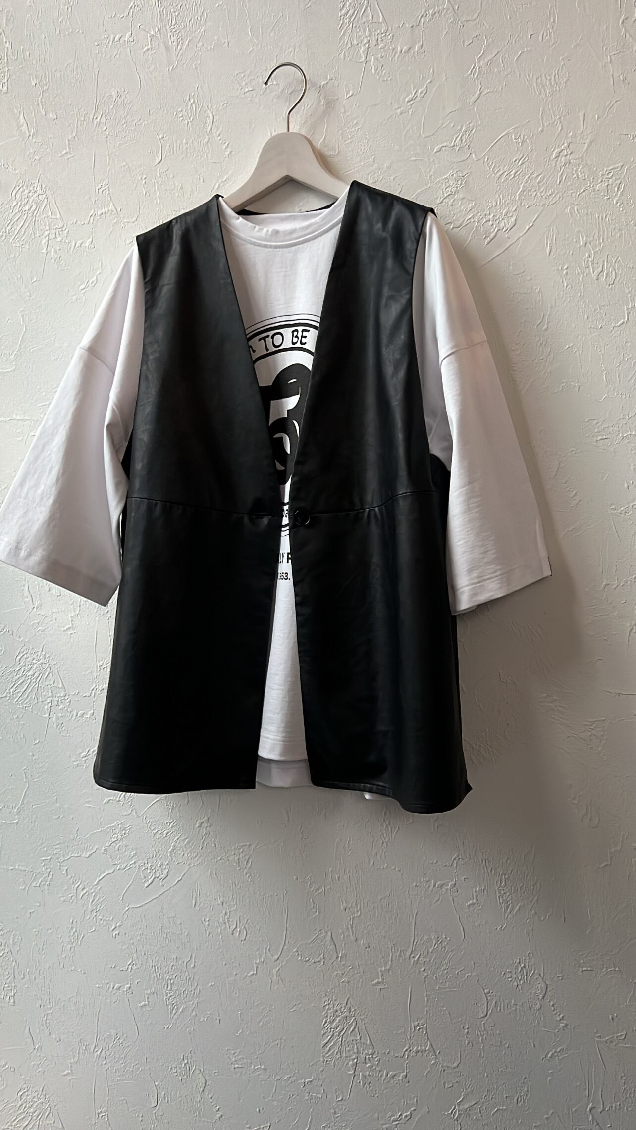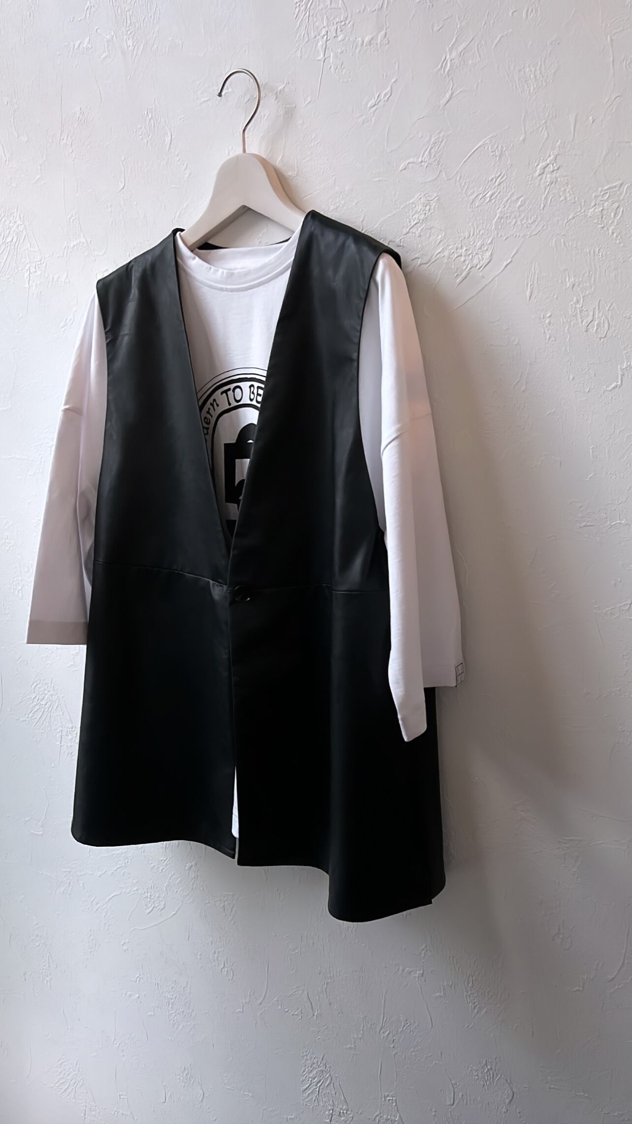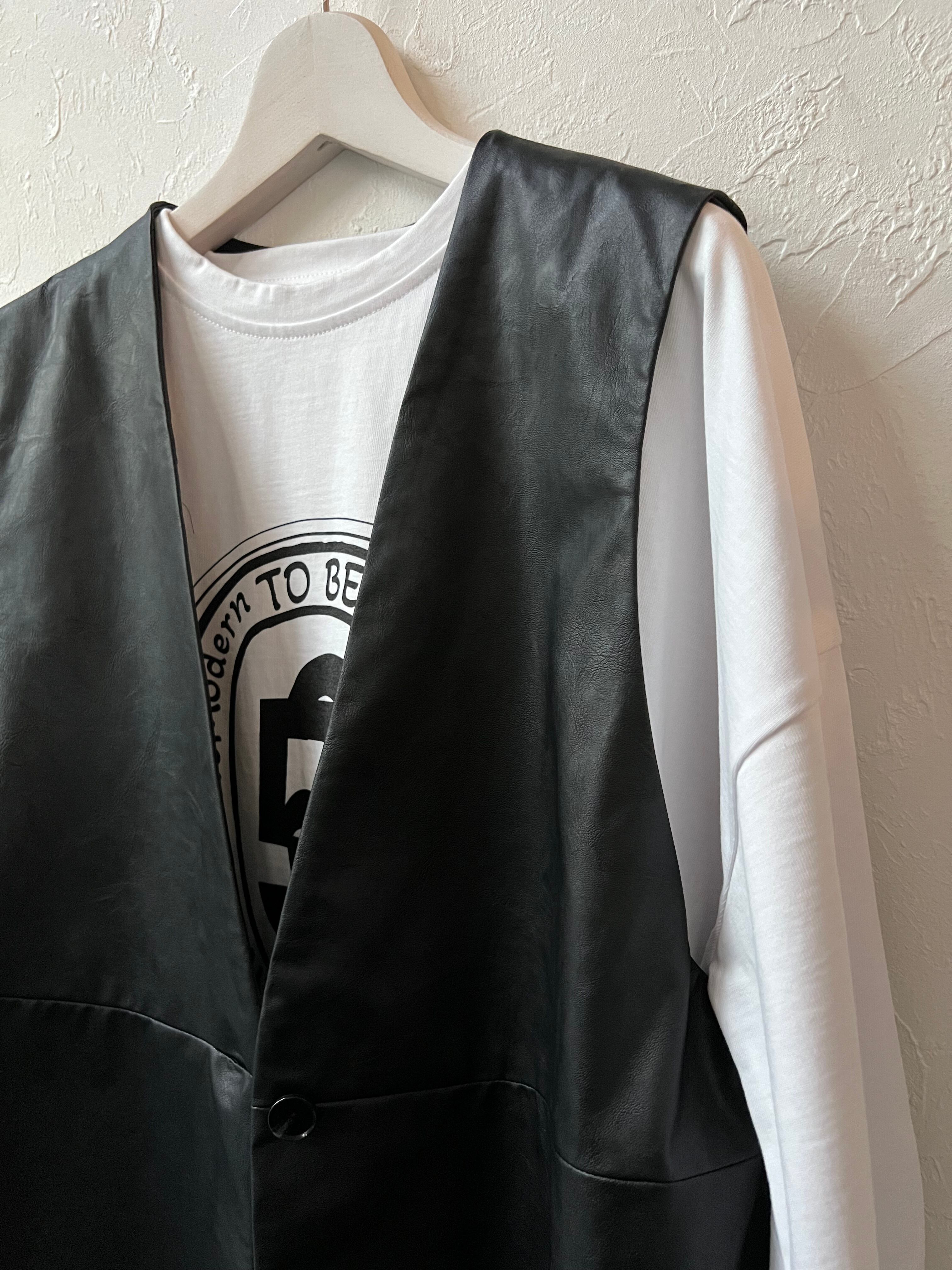 薄手のレザー調で色々なコーデに合わせやすいシンプルなベストです。