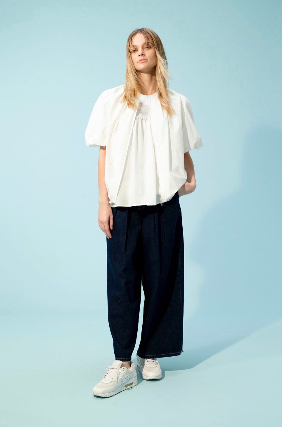重さを感じさせない9.5ozのライトオンスデニムを使用。ホワイト、インディゴ、ブラックの 3色展開。全て加工はストーンウォッシュのみにとどめ、クリーンな印象に仕上げました。