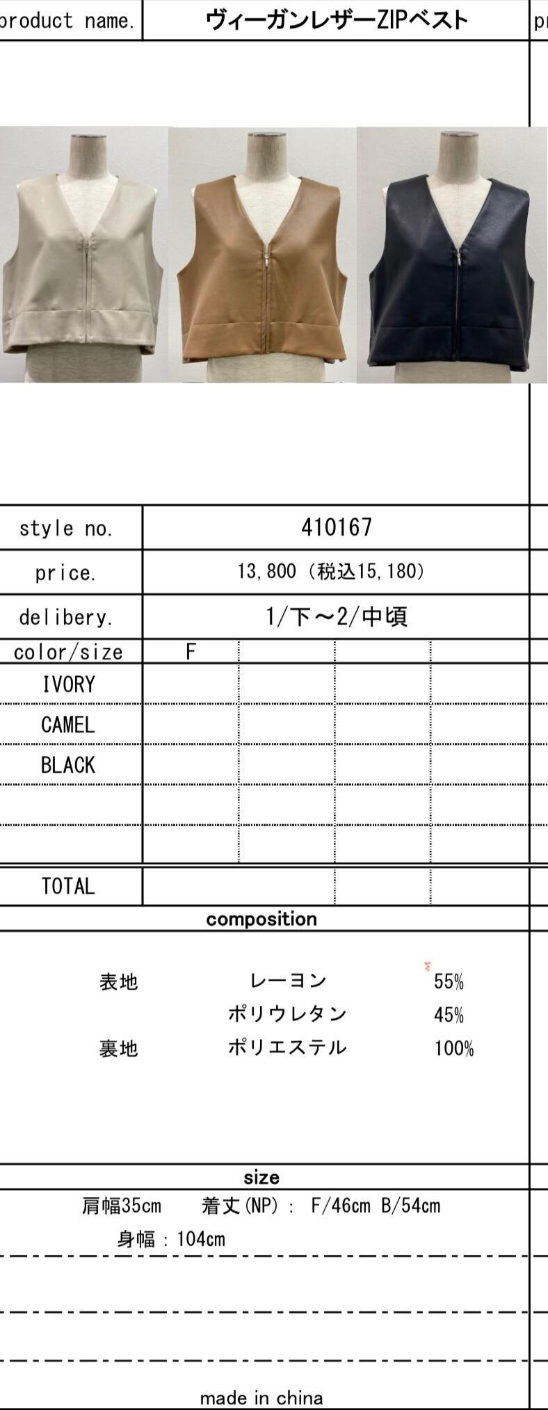 予約販売【 CYAN TOKYO 】ヴィーガンレザーZIPベスト (410167) 2月中旬お届け