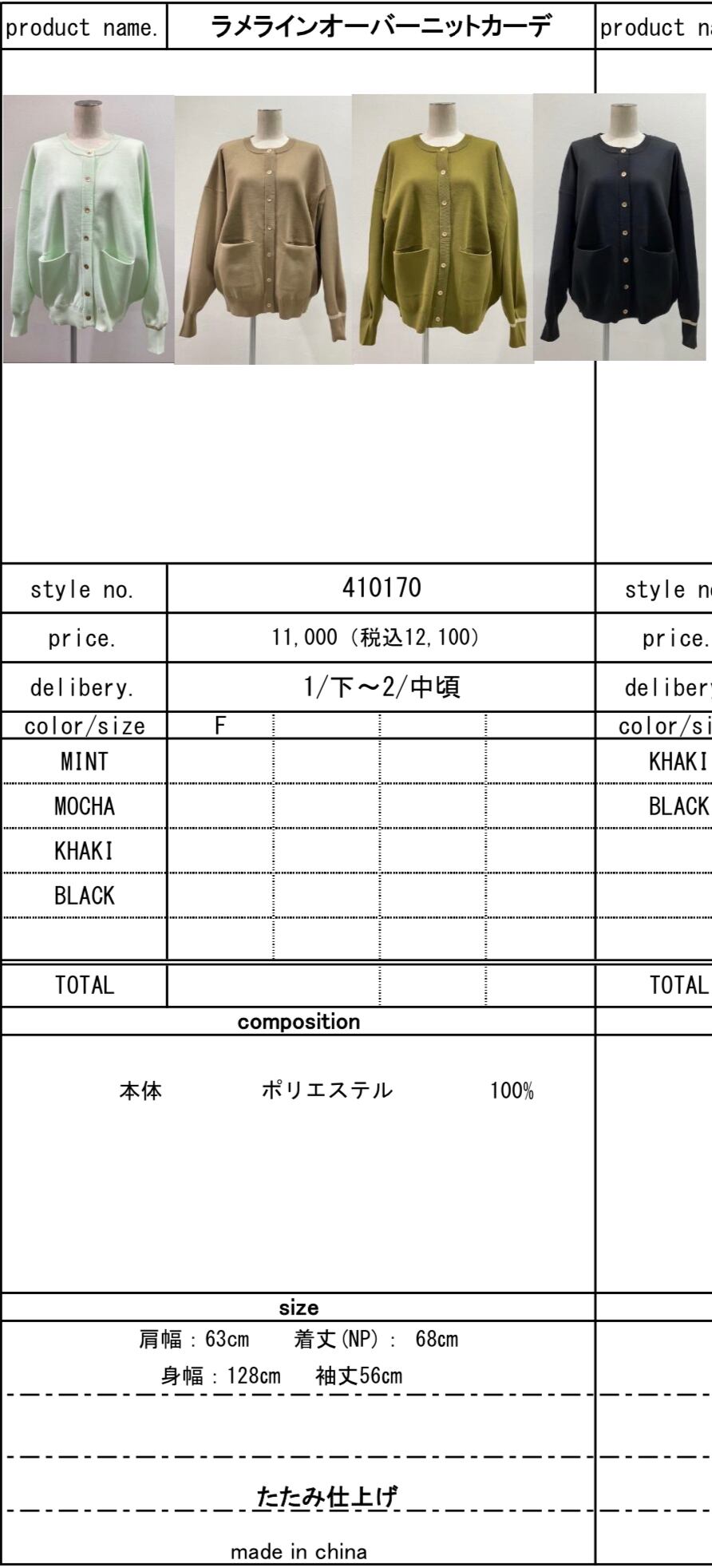 color ミント/モカ/カーキ/ブラック