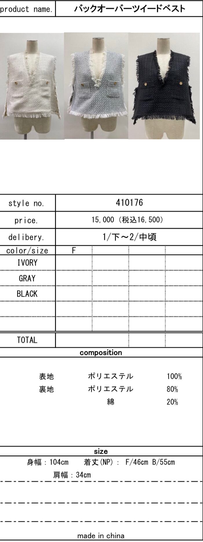 【 CYAN TOKYO 】バックオーバーツイードベスト (410176)