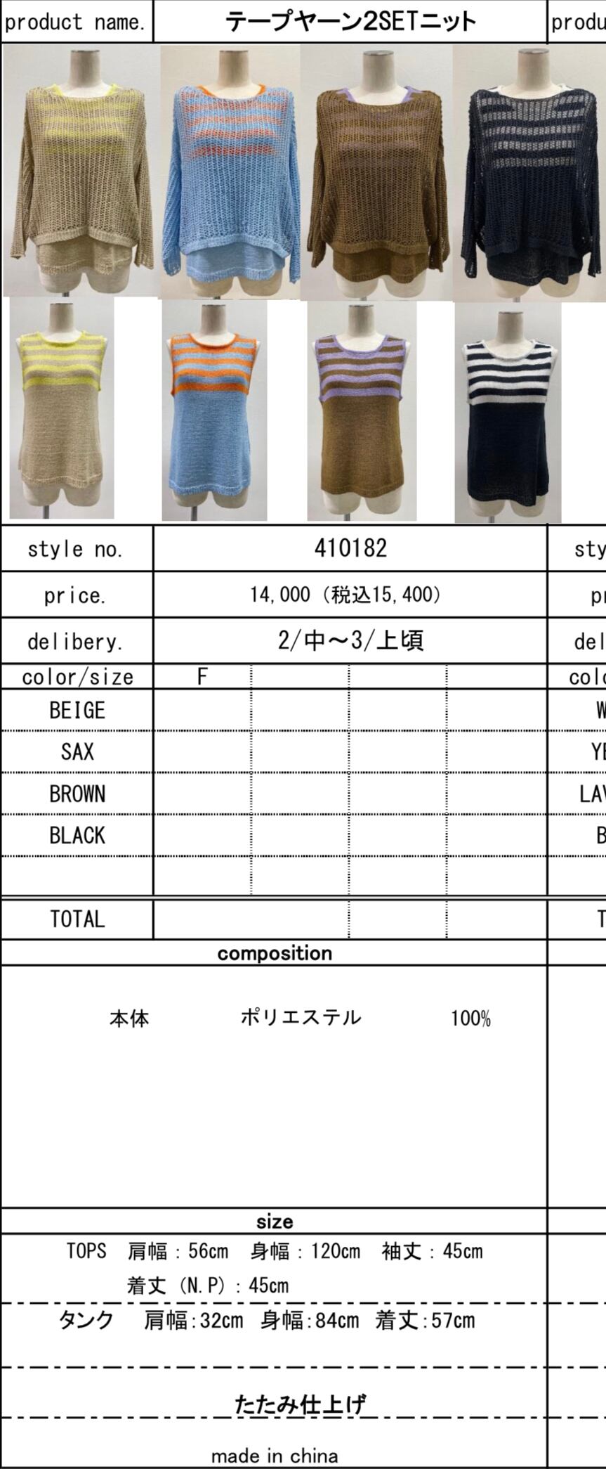予約販売【 CYAN TOKYO 】テープヤーン2SETニット (410182) 3月上旬お届け