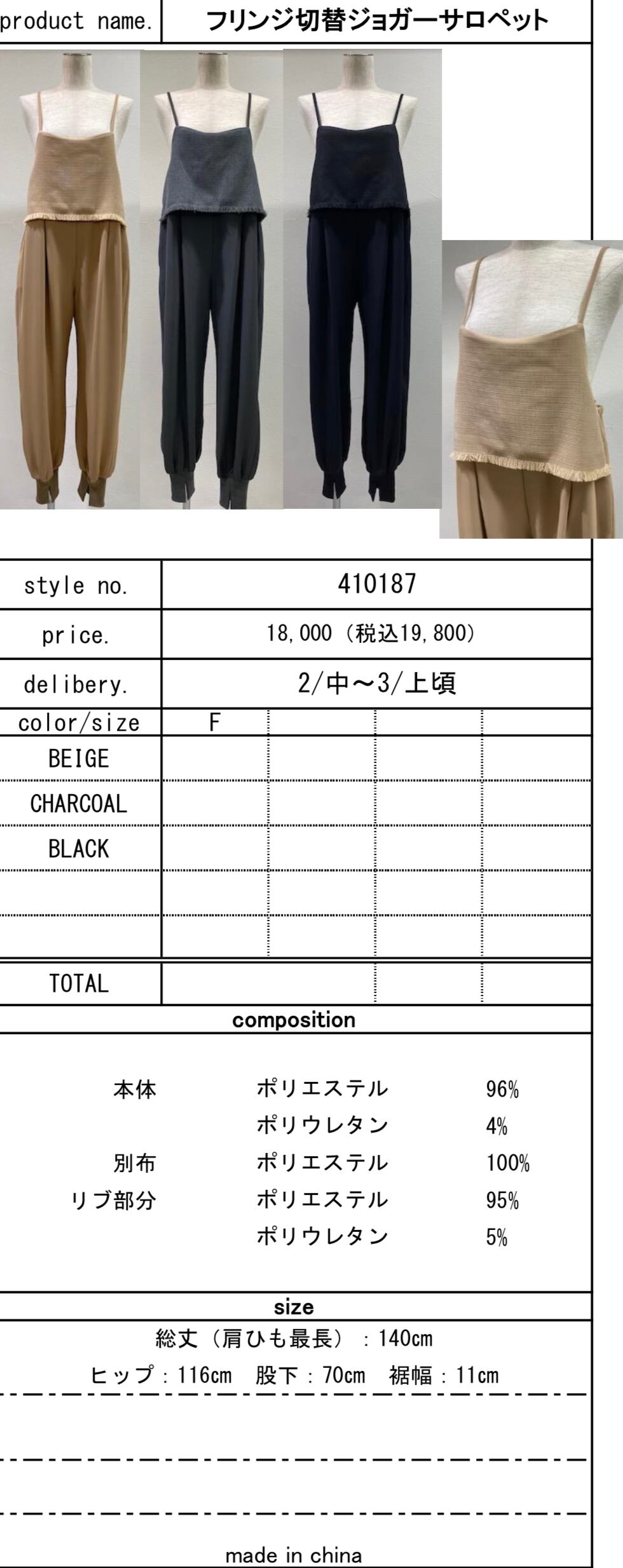 フリンジ切替ジョガーサロペット
