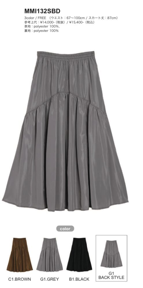 素材と切替デザインによりフレアの甘さが抑えられ、フレアスカートが苦手な方にも挑戦していただきやすいスカートです。