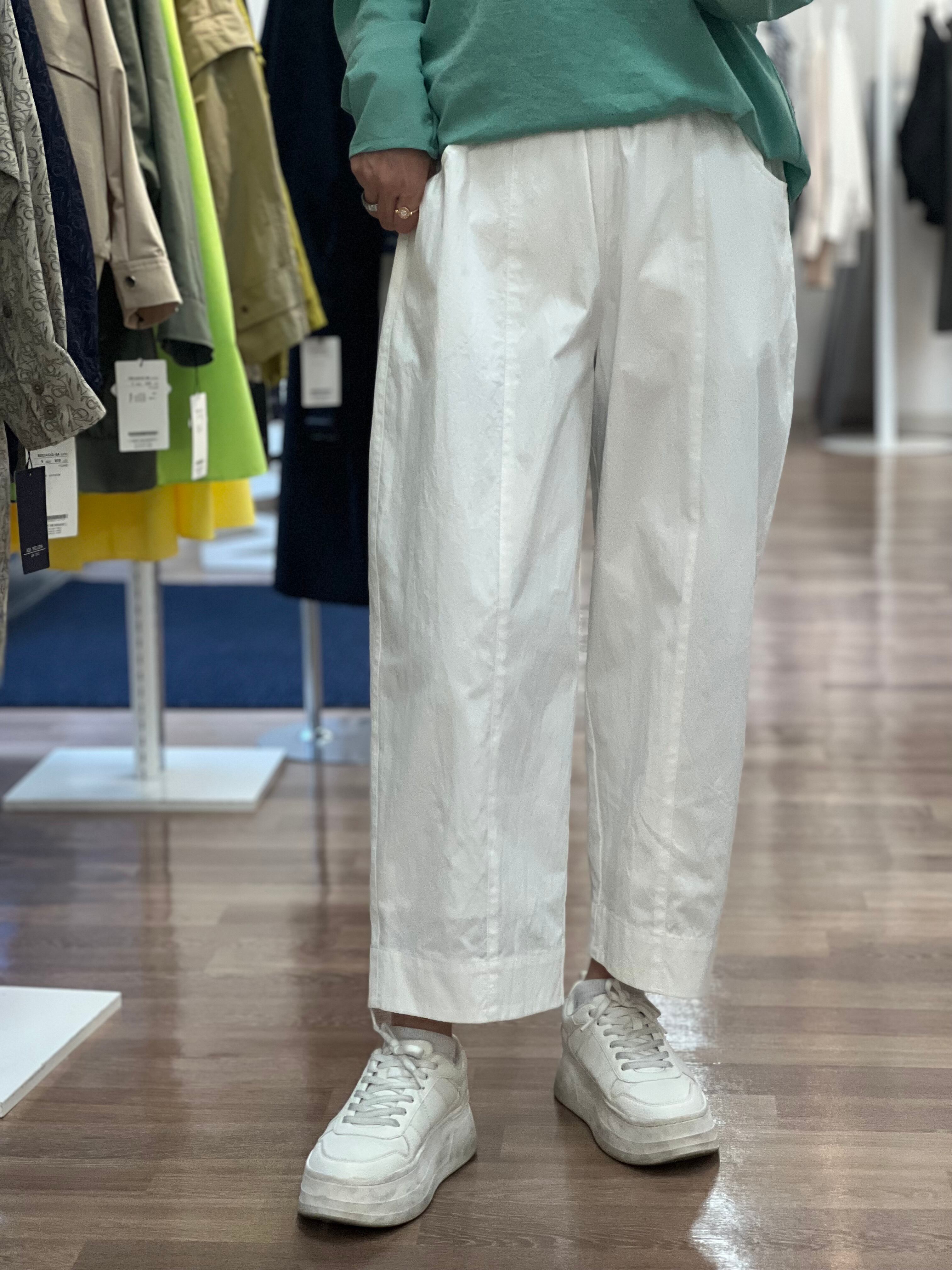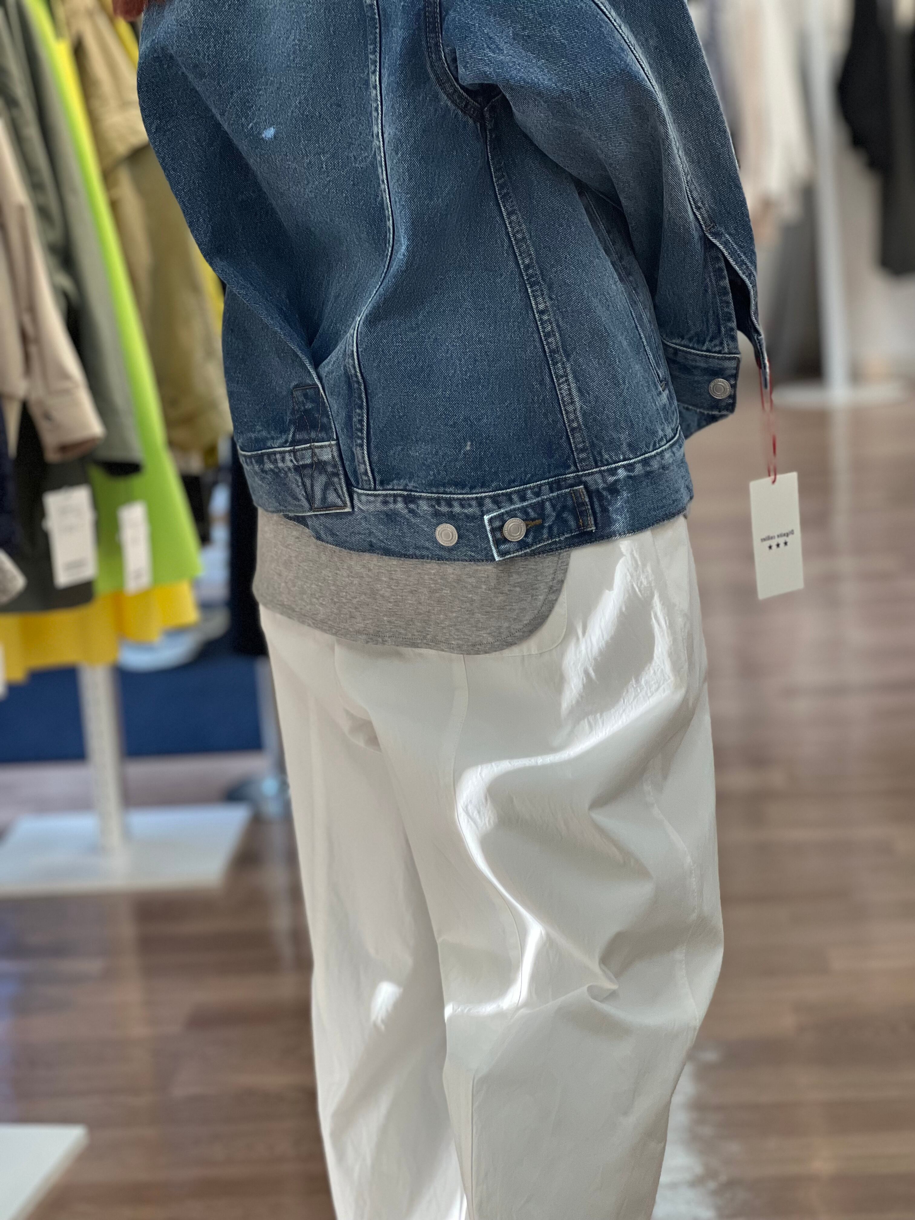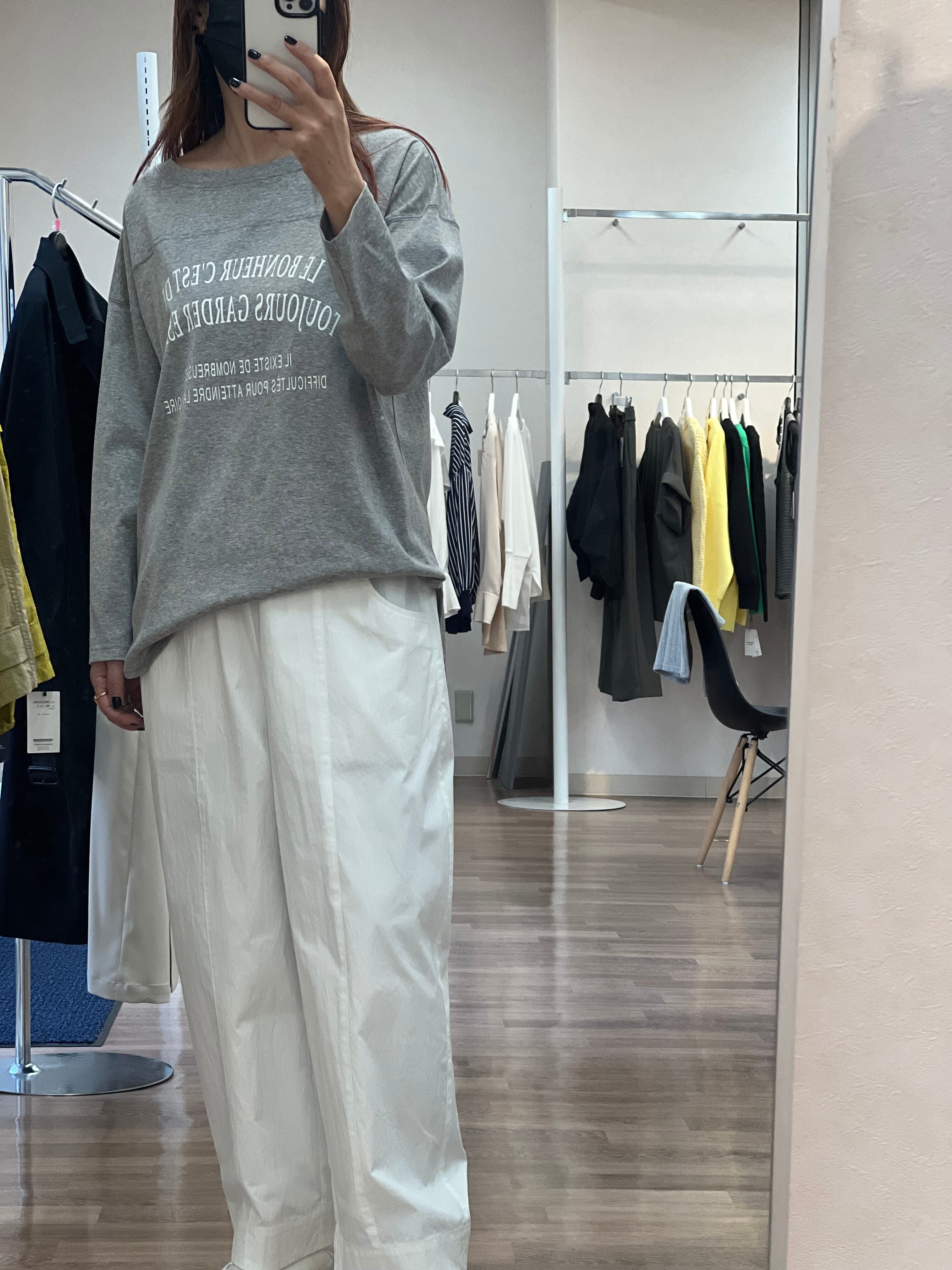 少し張りのある生地感で丈短めで着用設定のパンツです。