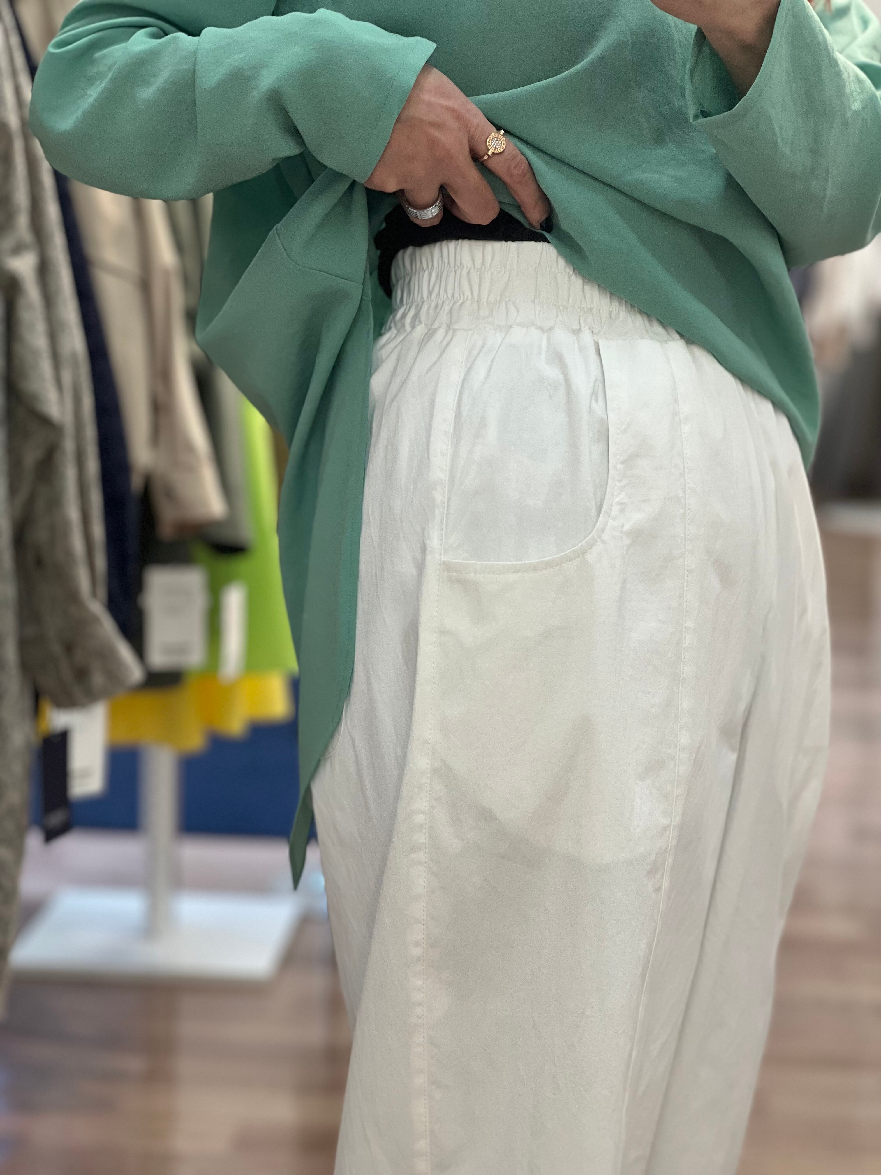 ウエスト総ゴムなので落として履いていただくことも出来るウエストサイズ感ではあります。
