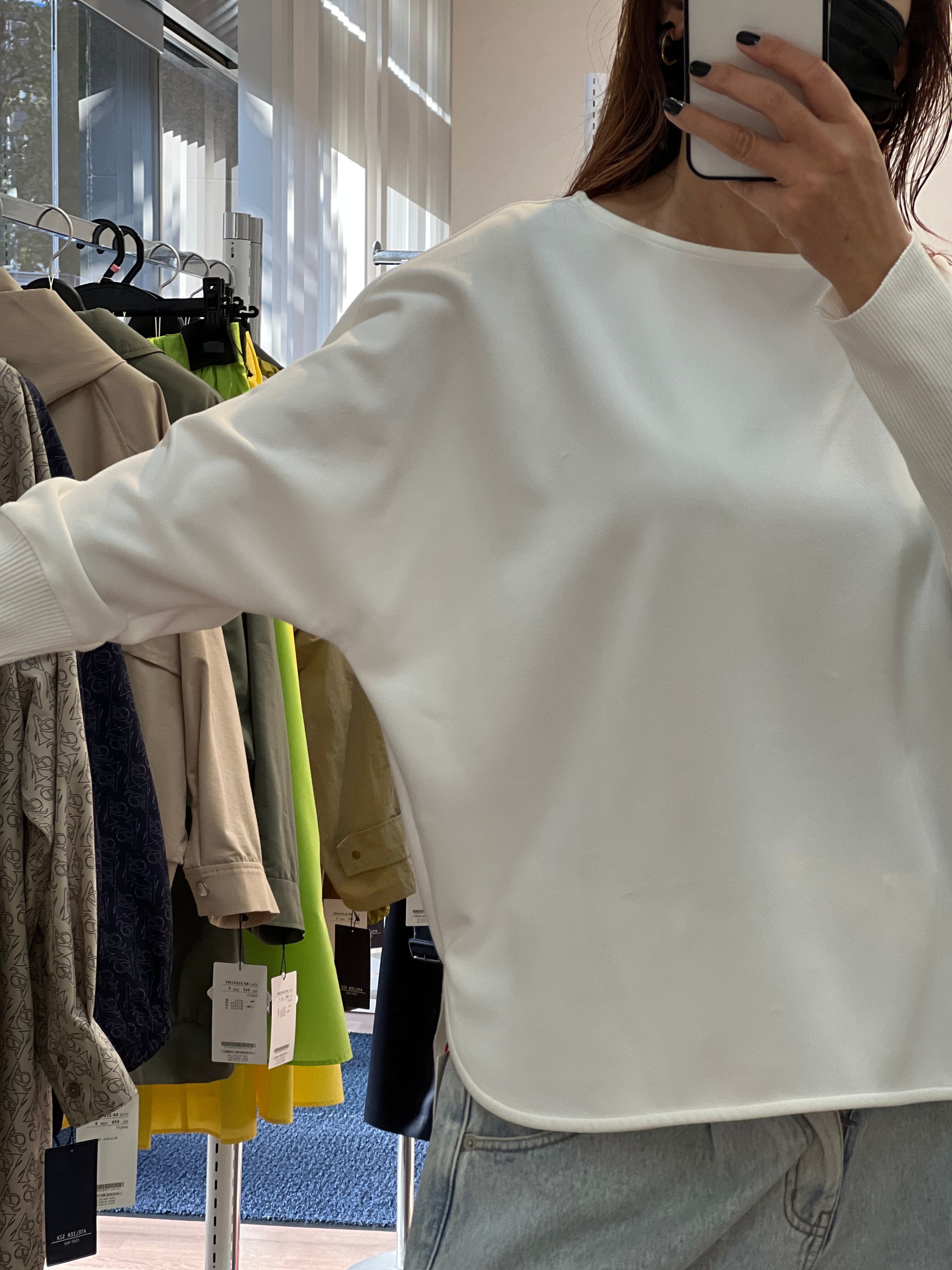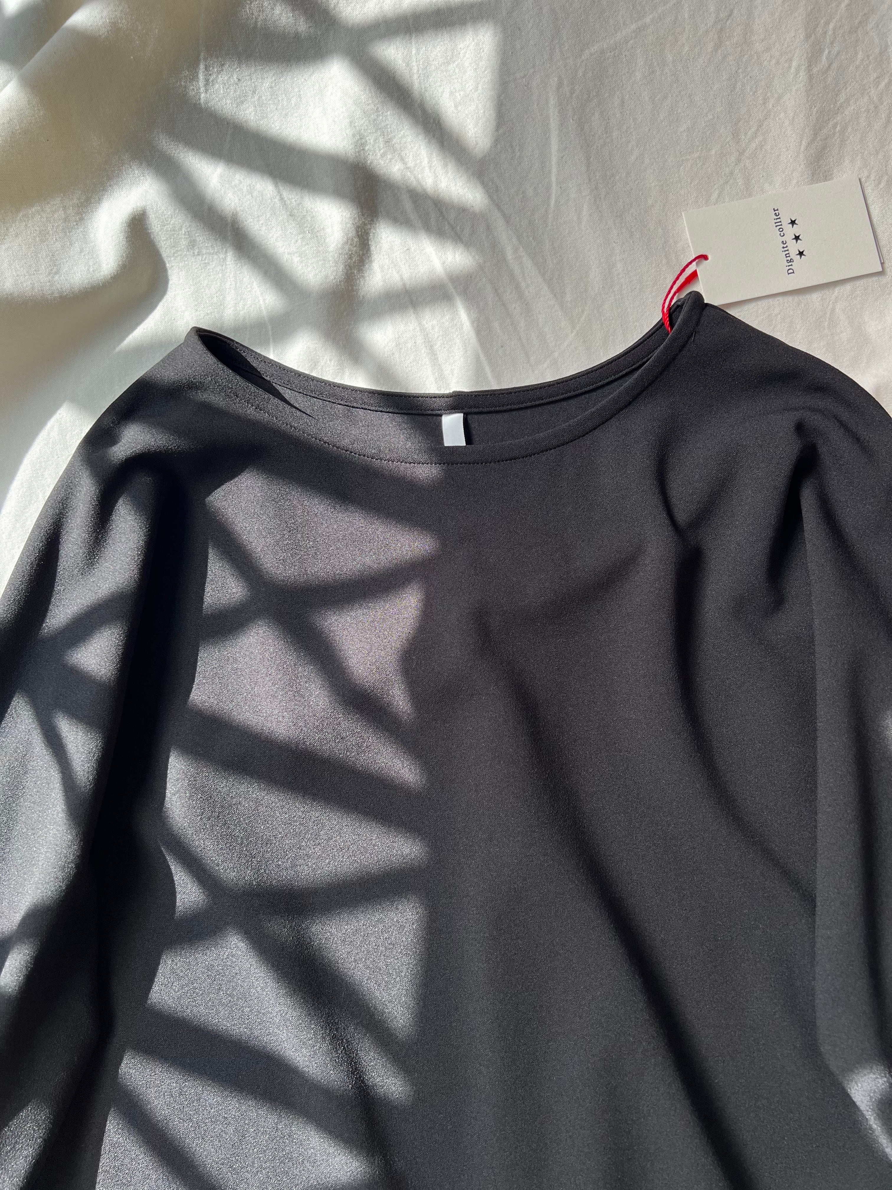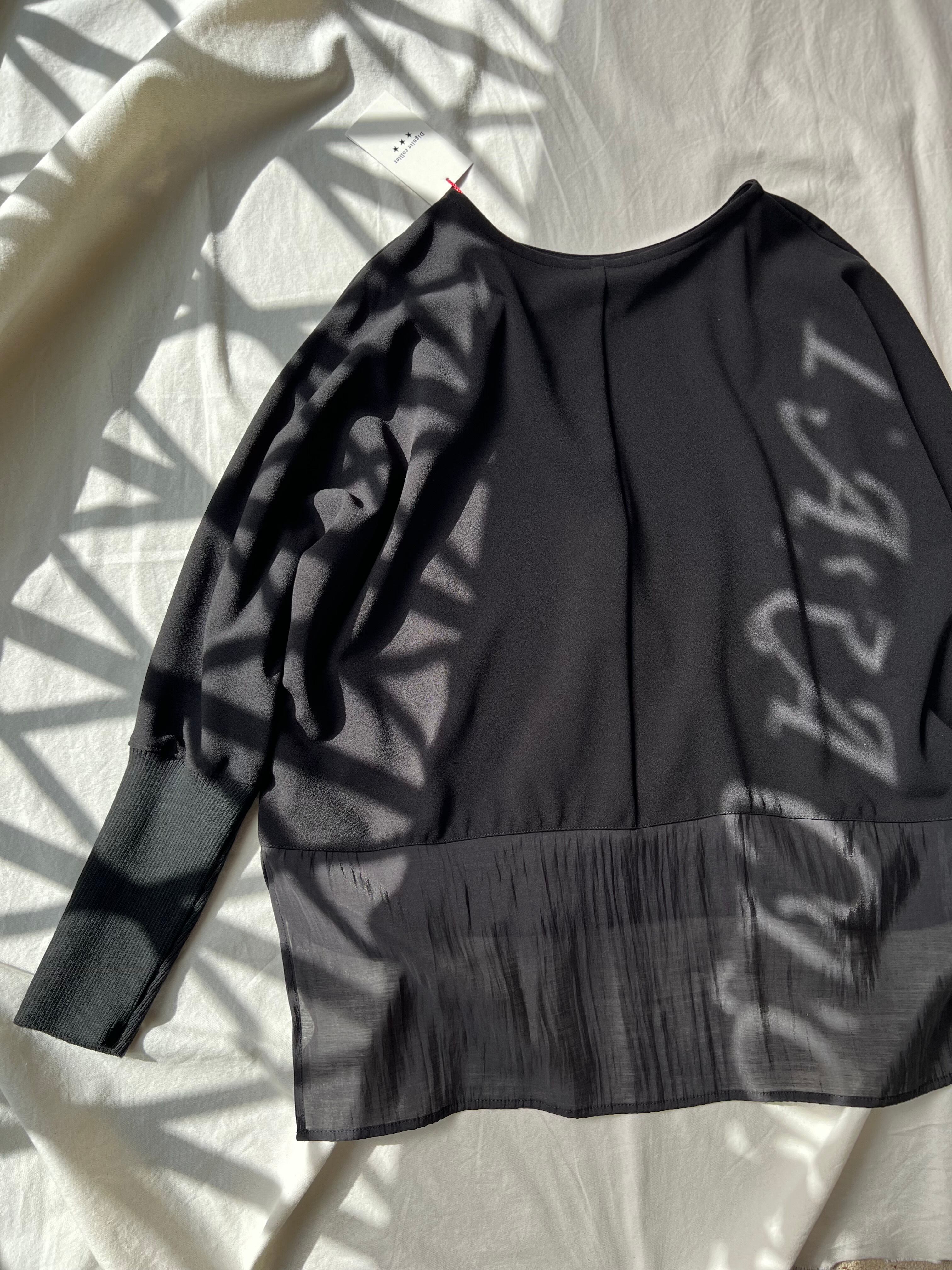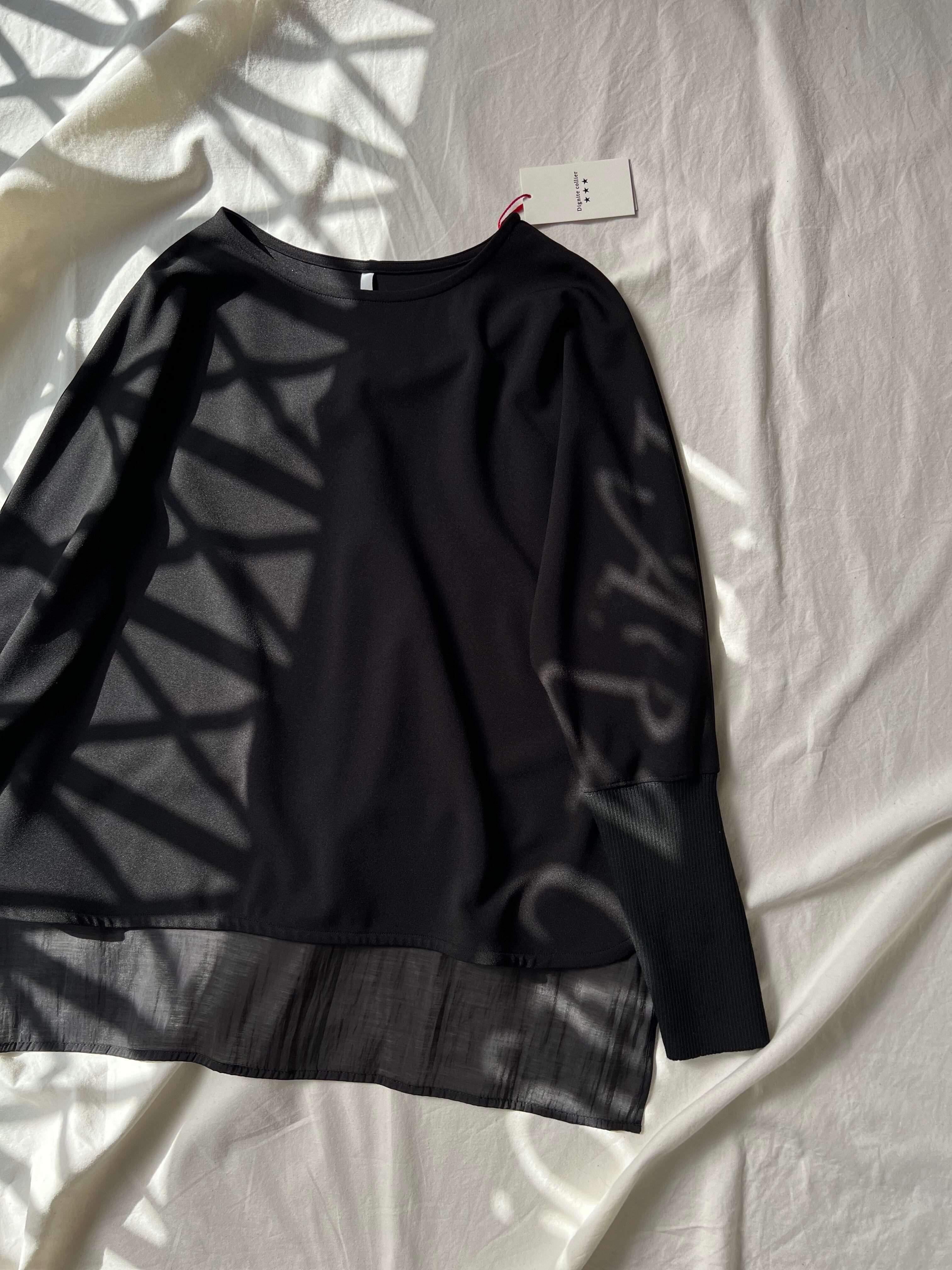 ジョーゼットの身頃に袖部分に長めのリブになっているトップスです。