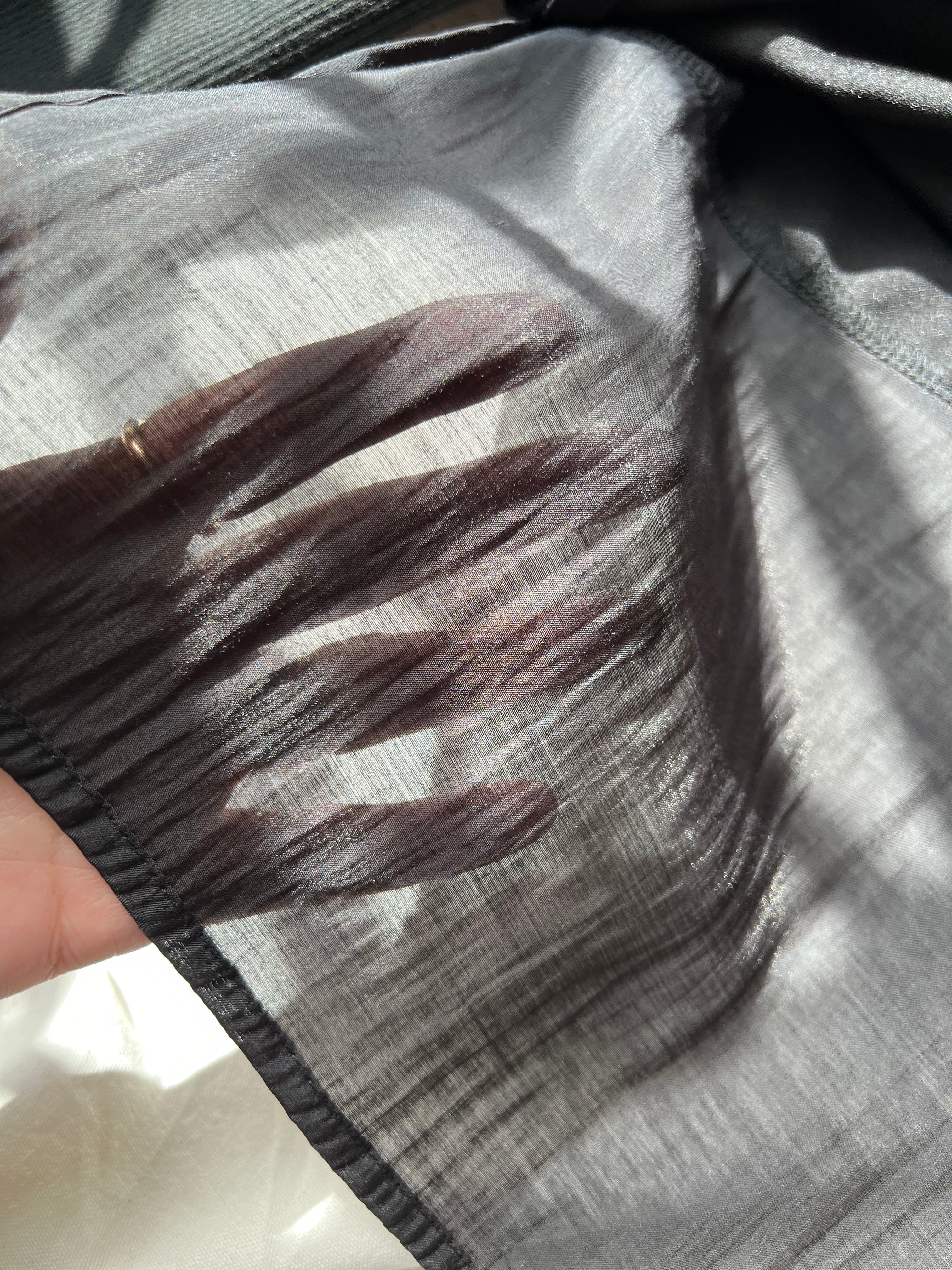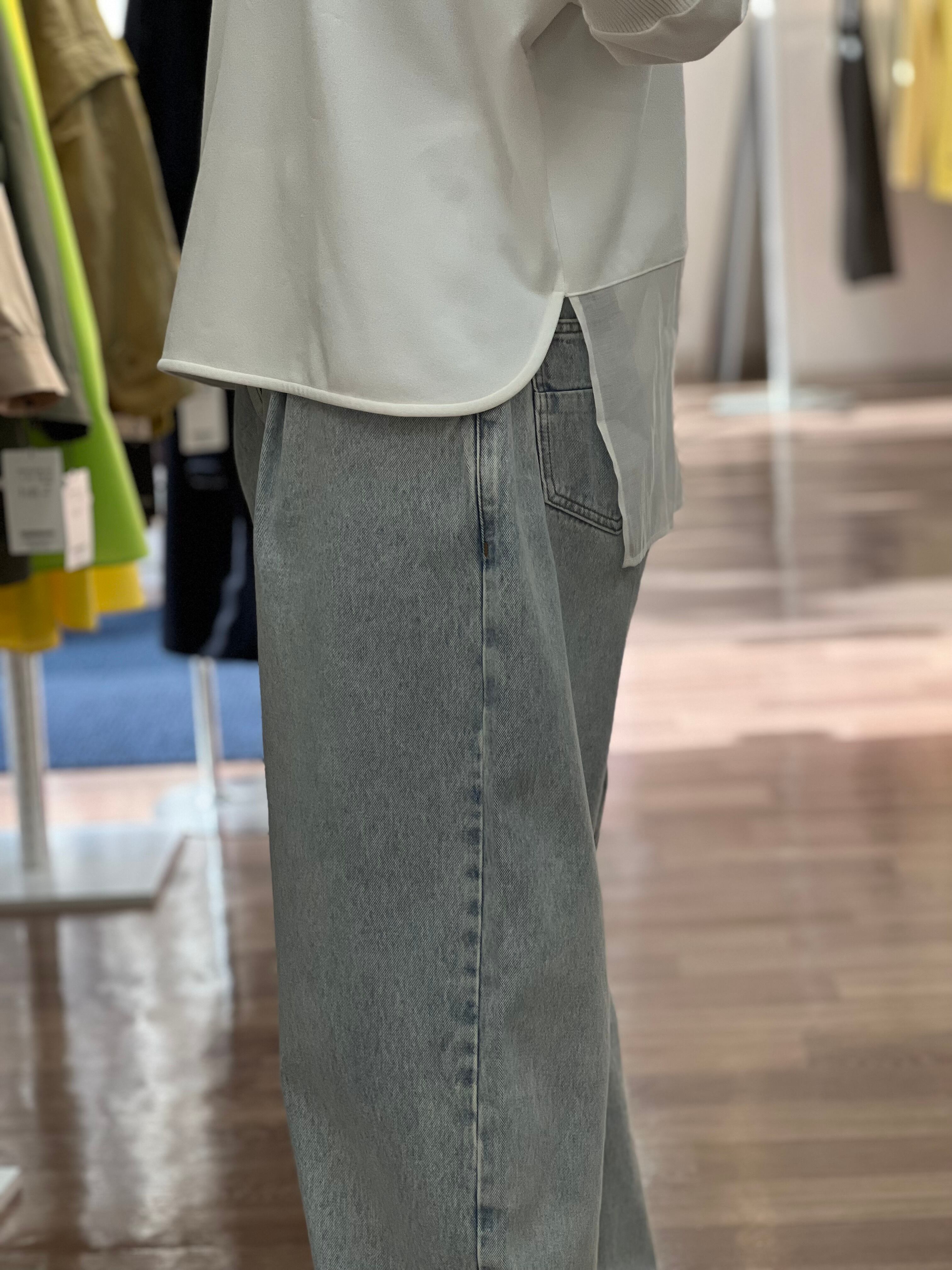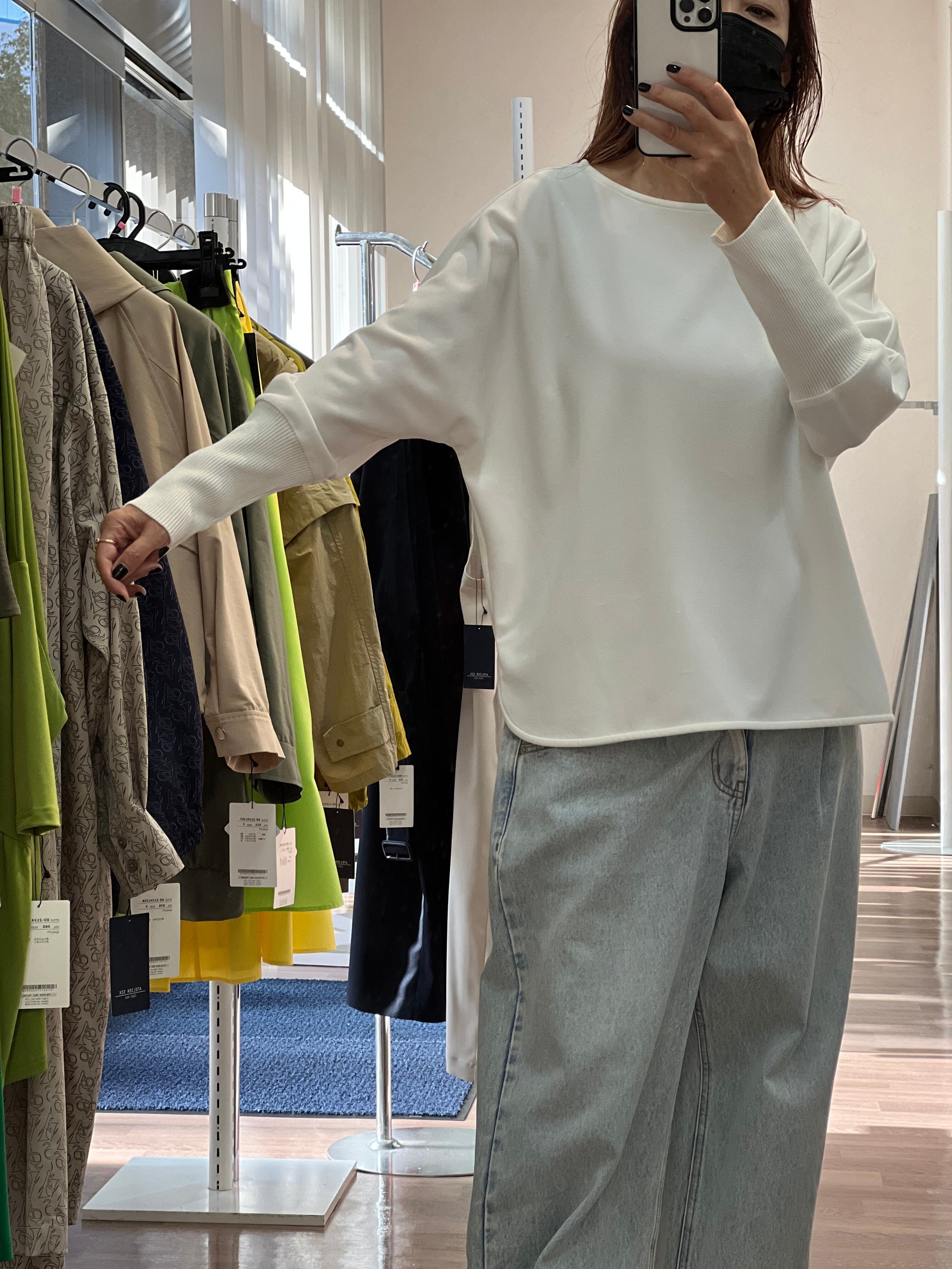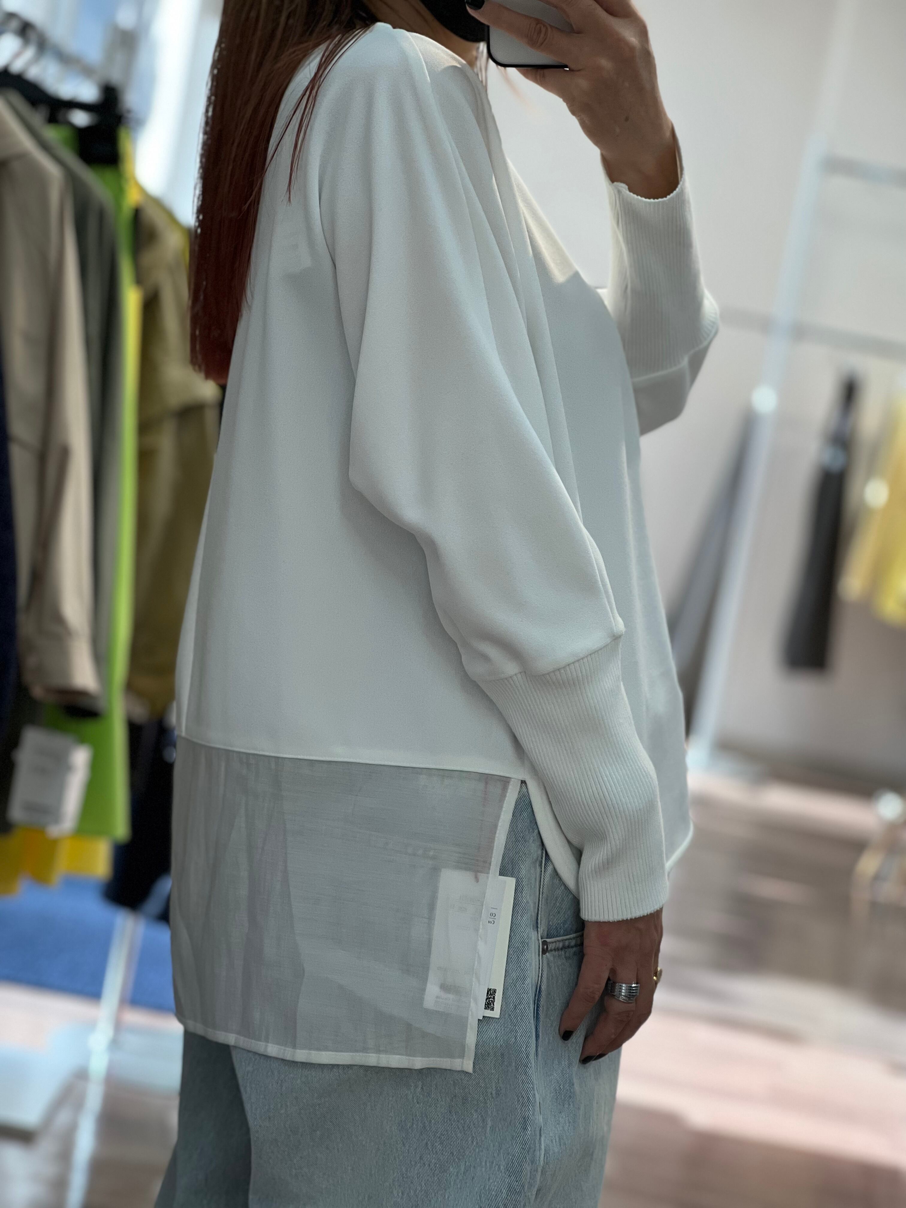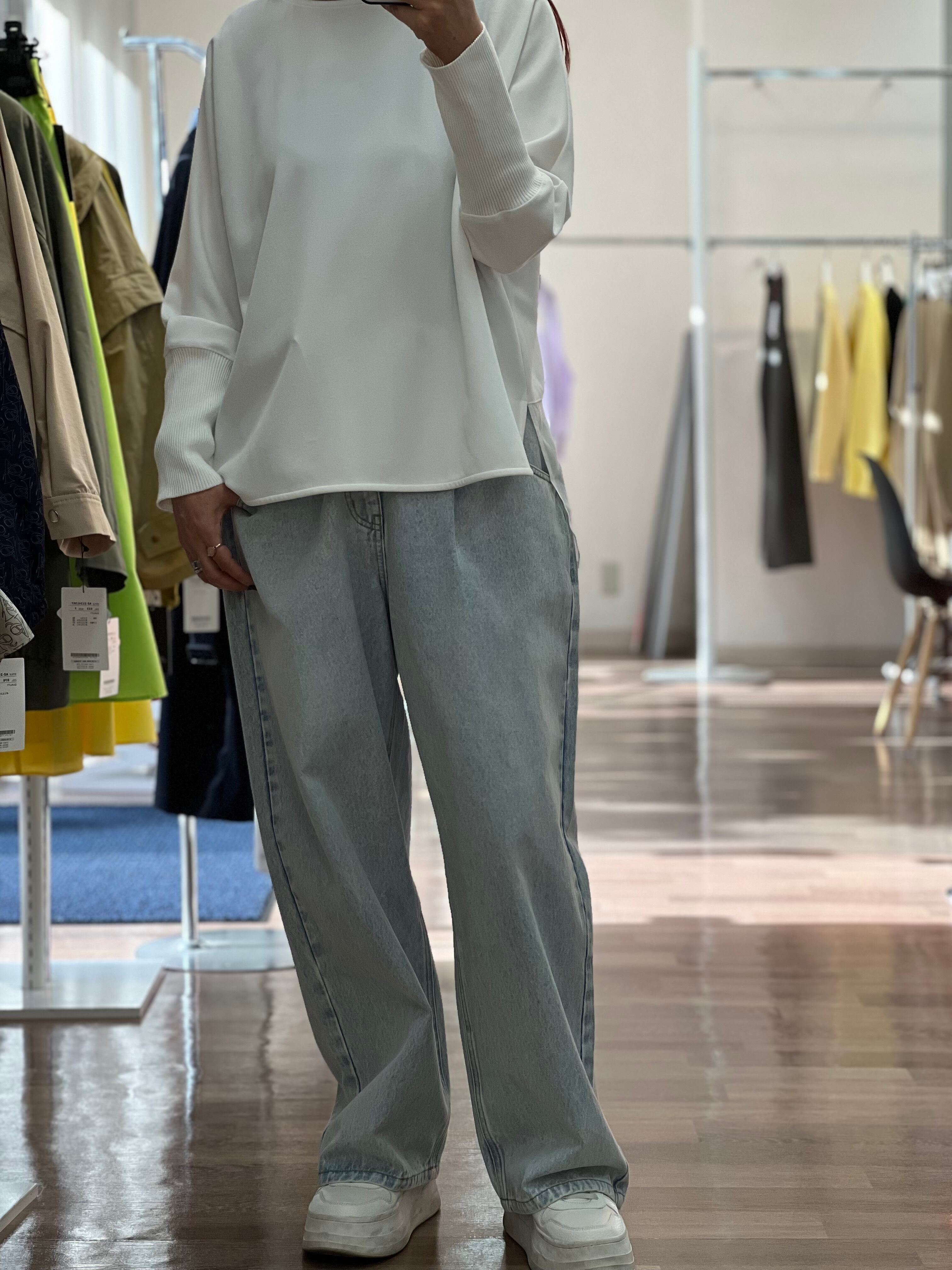 後身頃のシアー素材はヒップを隠してくれる丈感になっていて、活躍間違いなしのトップスです!