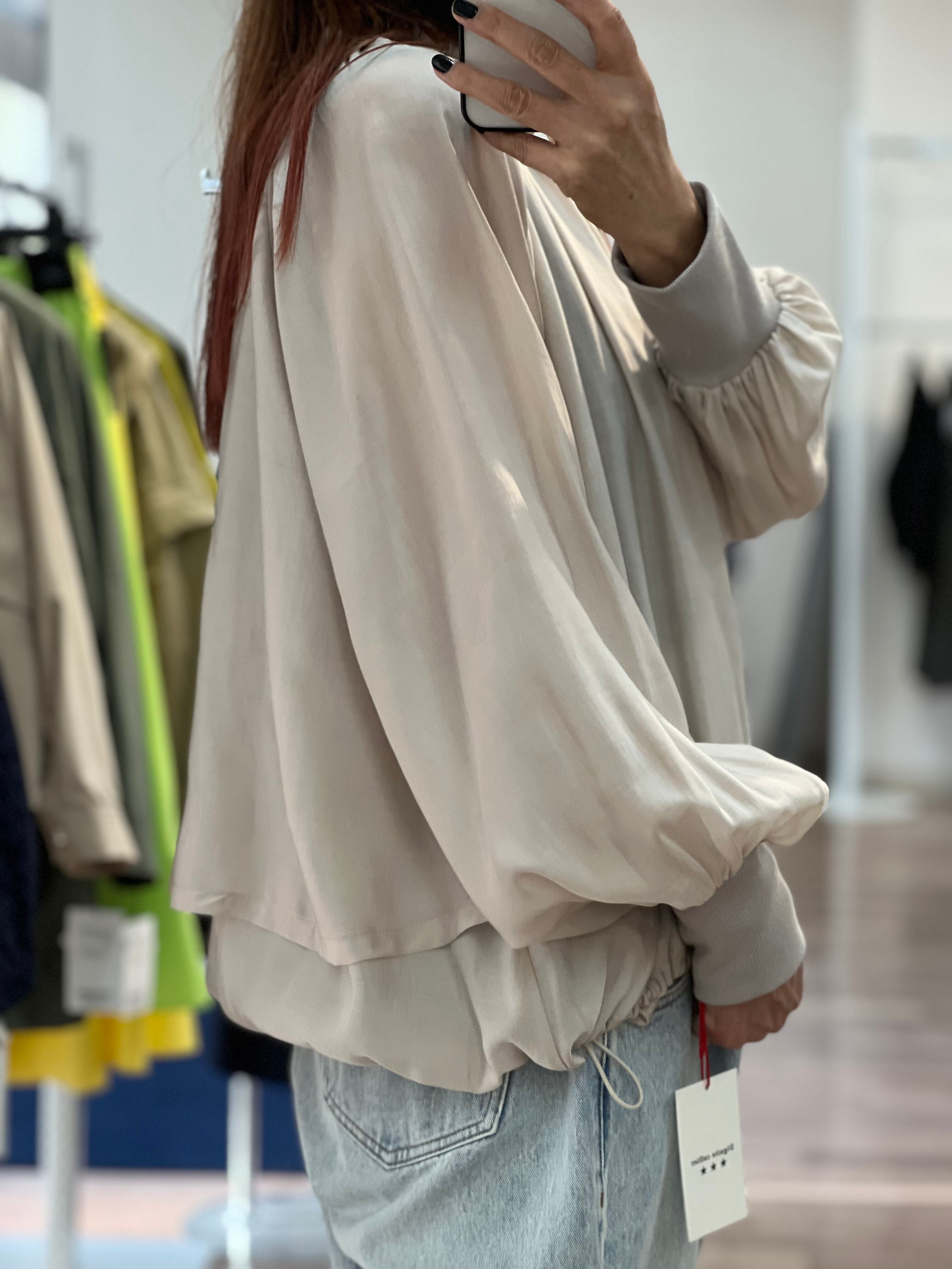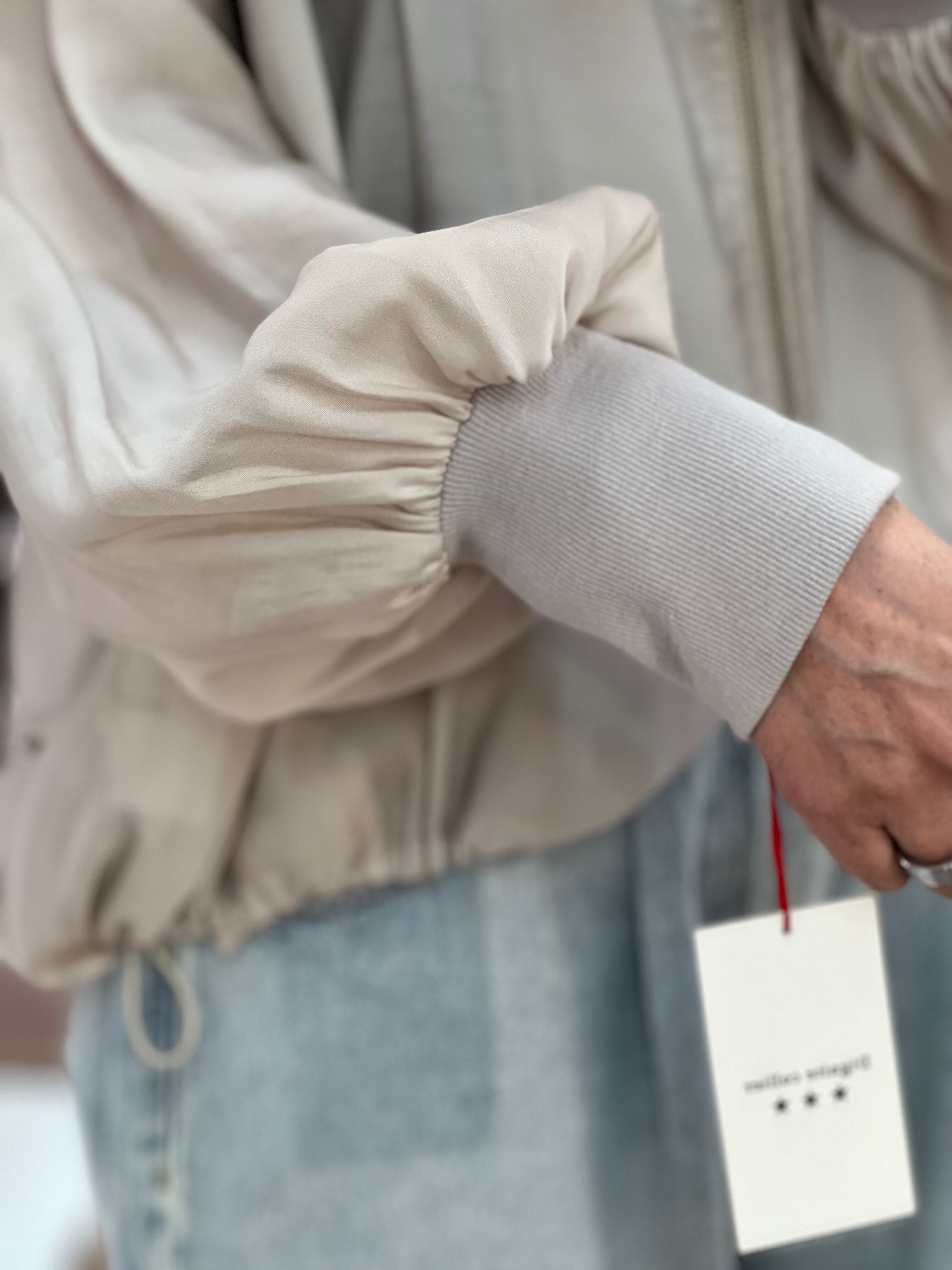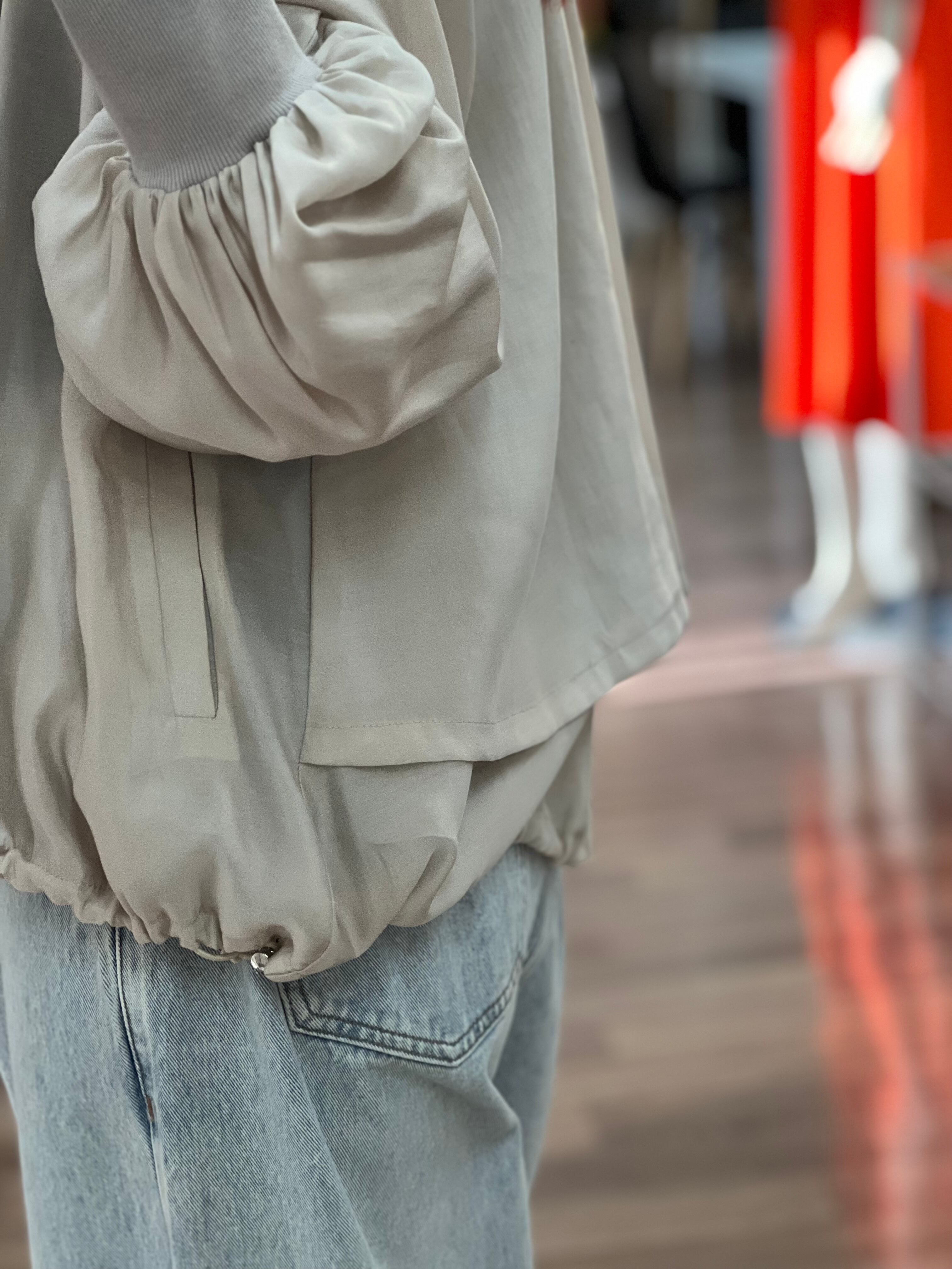 とても軽い素材と着心地で夏まで活躍してくれる羽織です。透け感があり、身幅もゆったりしています。