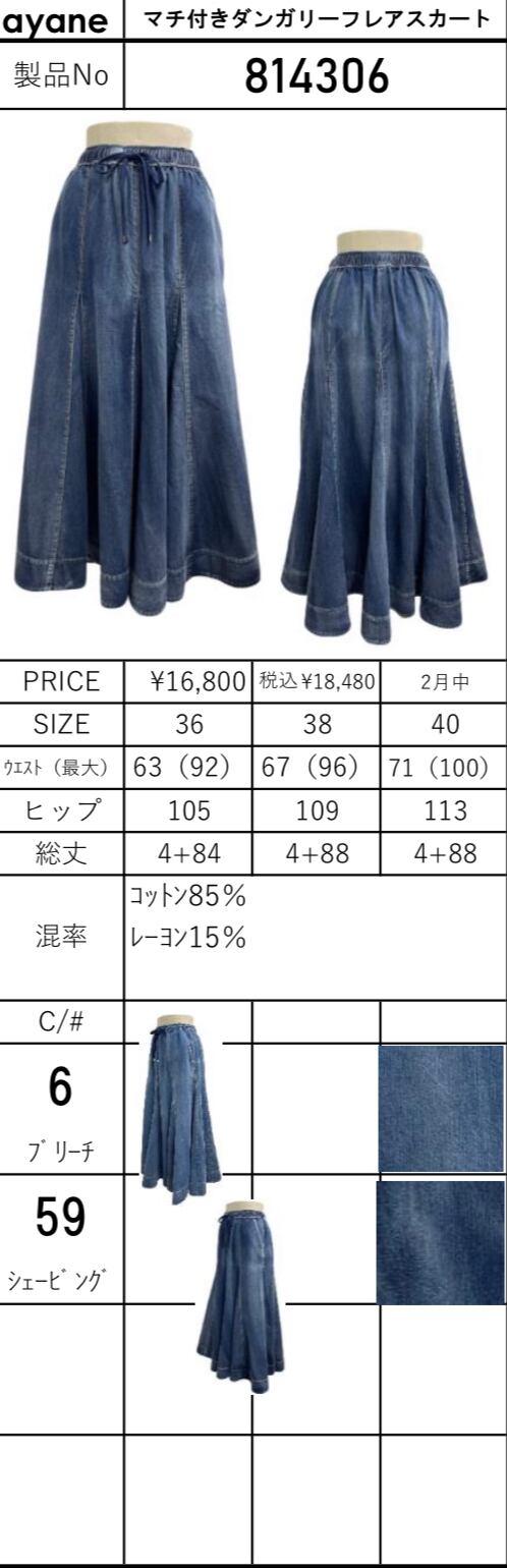 予約販売【 ayane 】マチ付きダンガリーフレアスカート(814306)2月中旬お届け