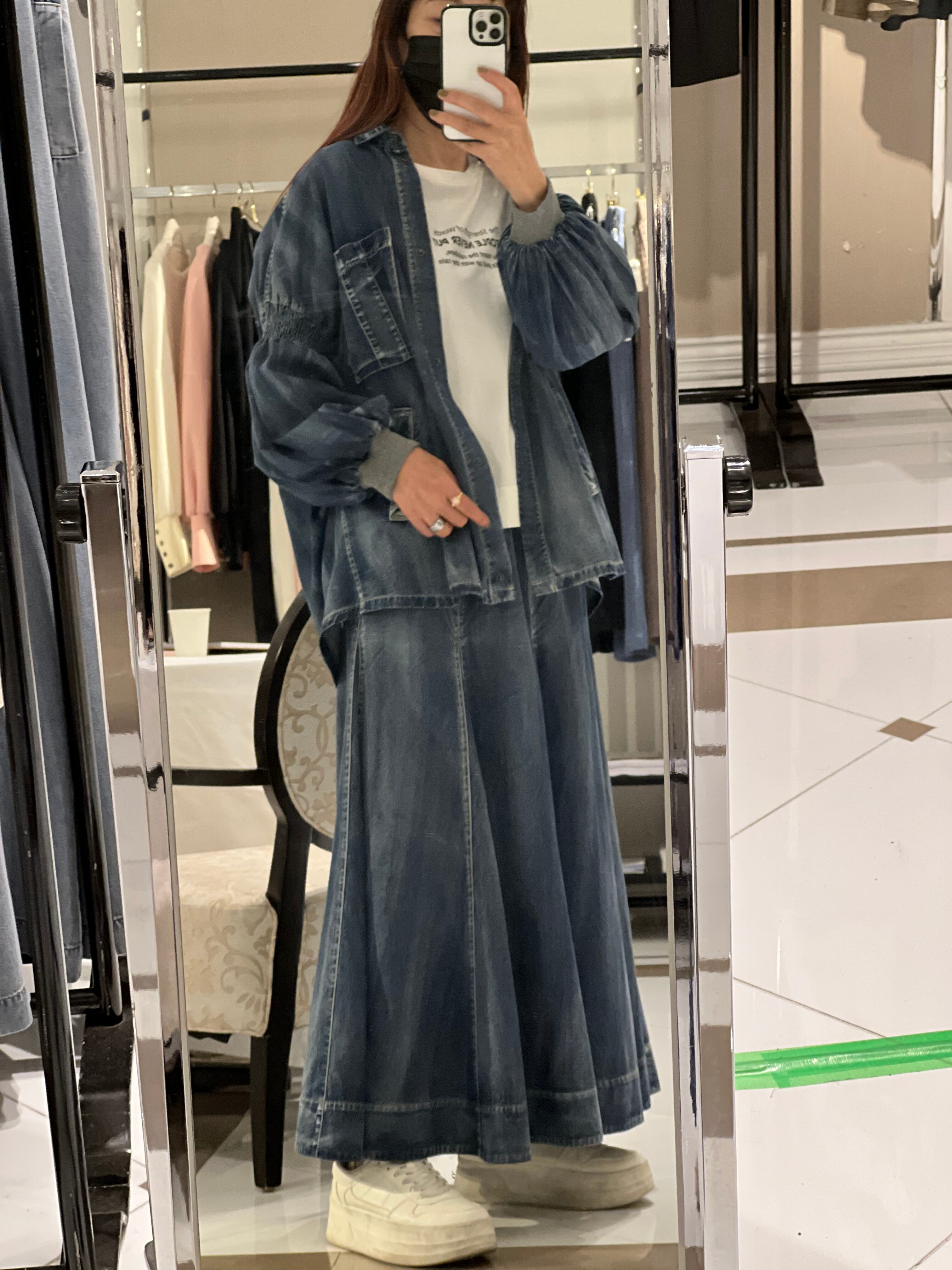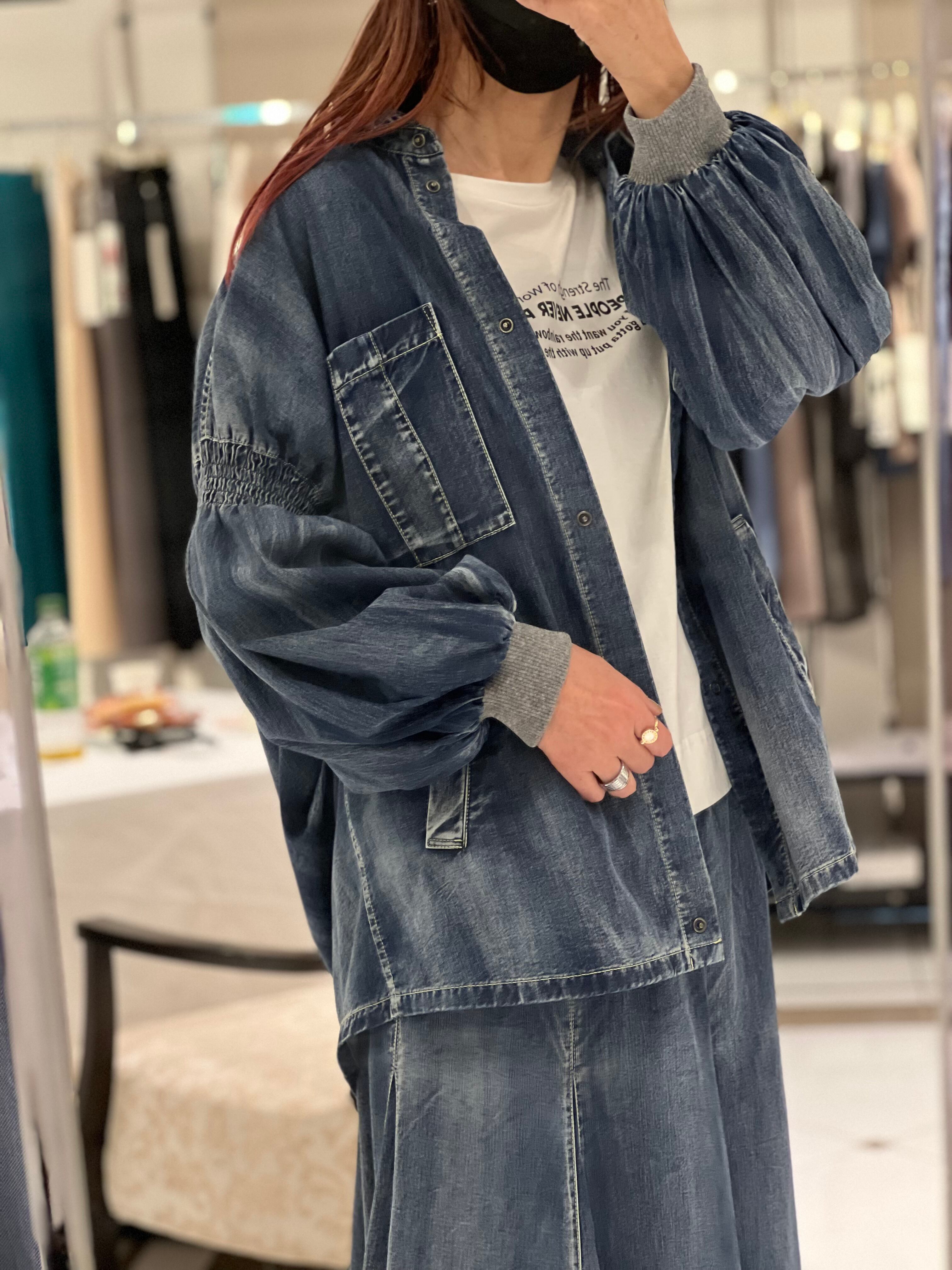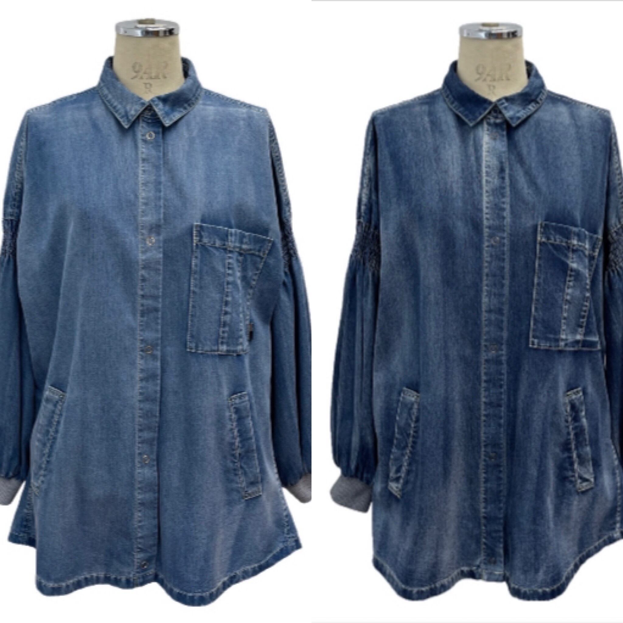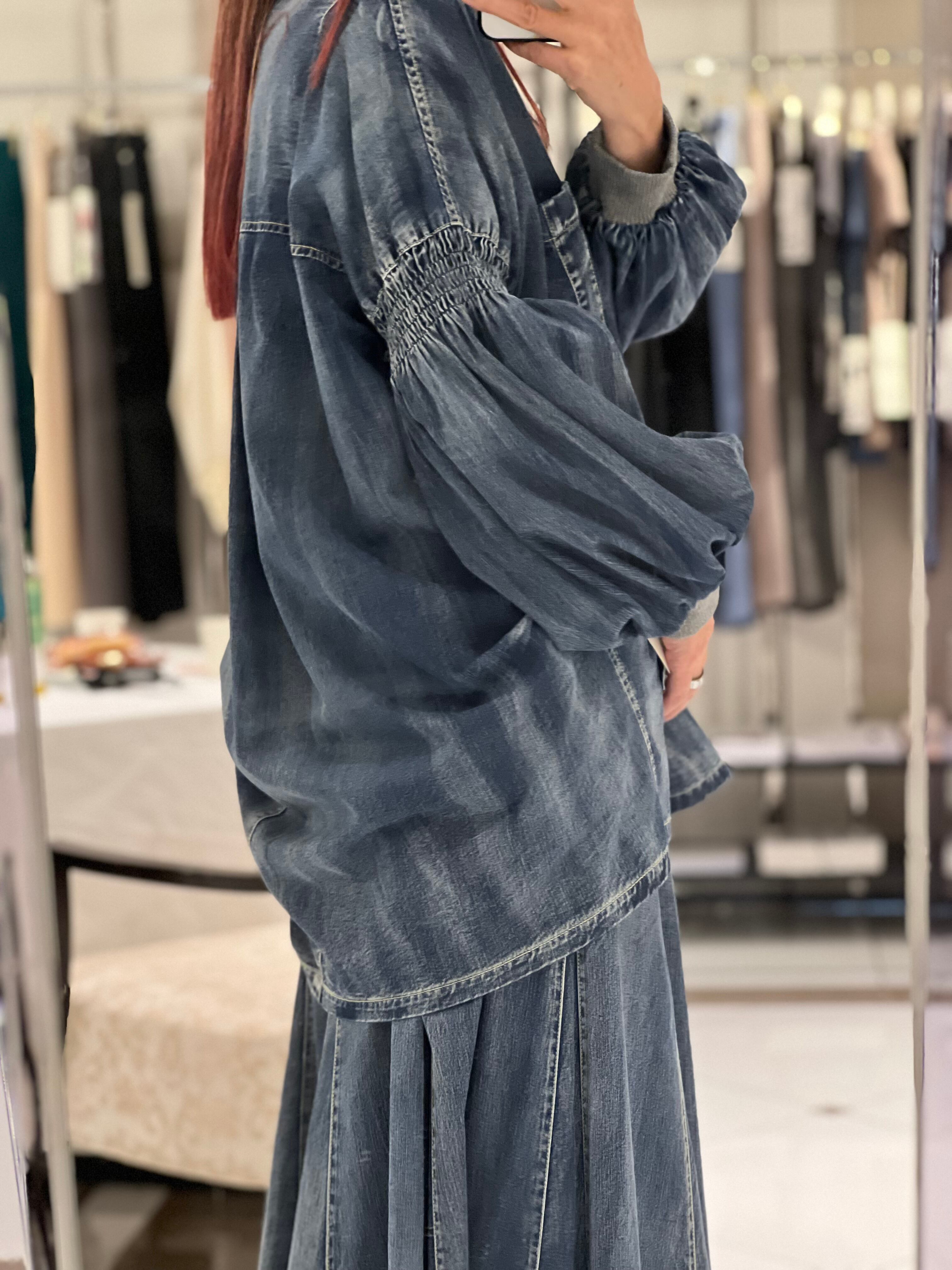 予約販売【 ayane 】シャーリングスリーブダンガリーシャツ(814304)2月中旬お届け