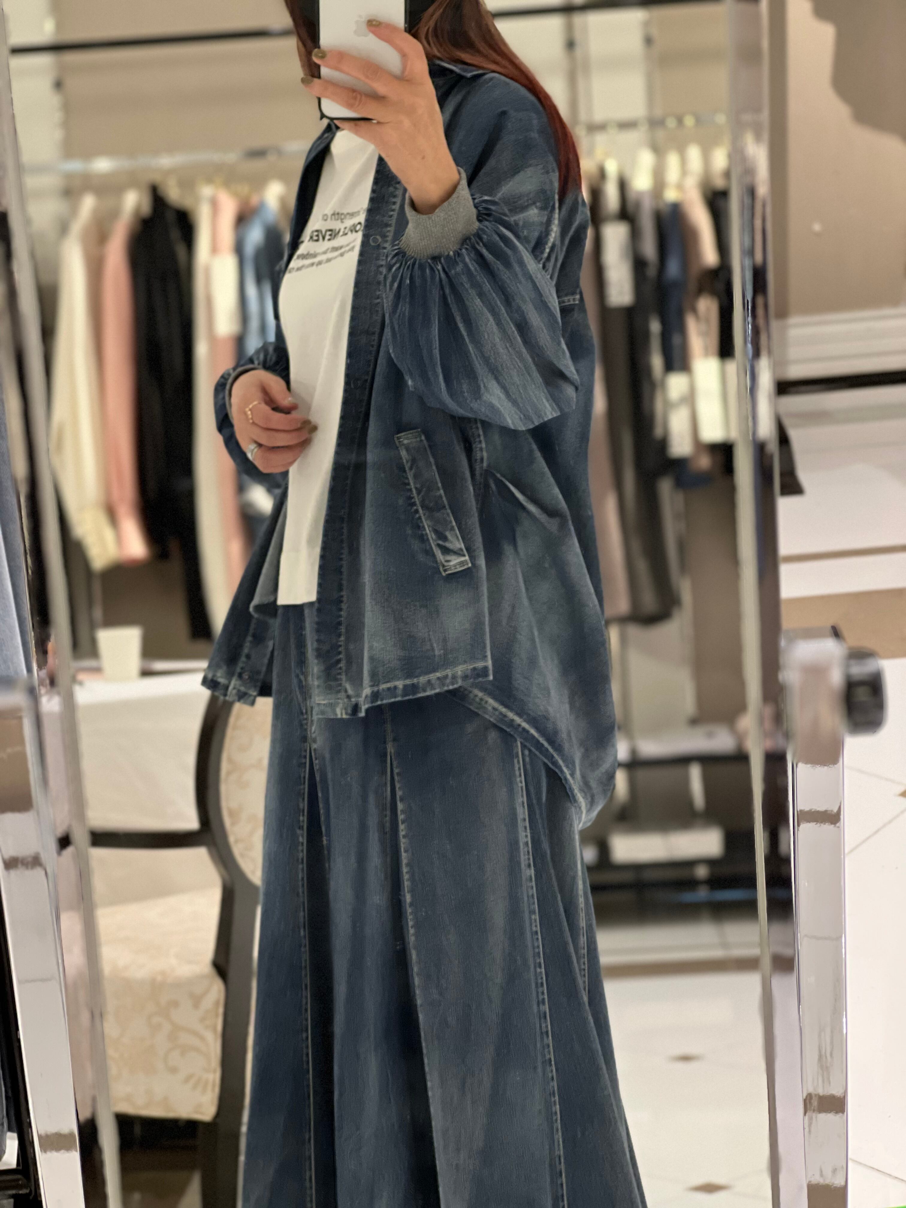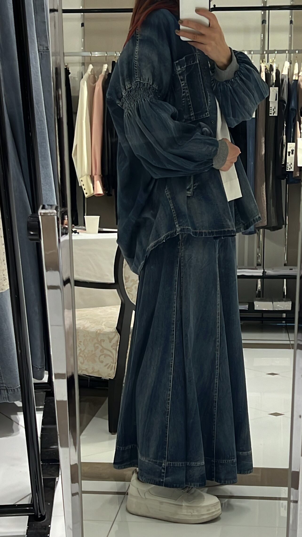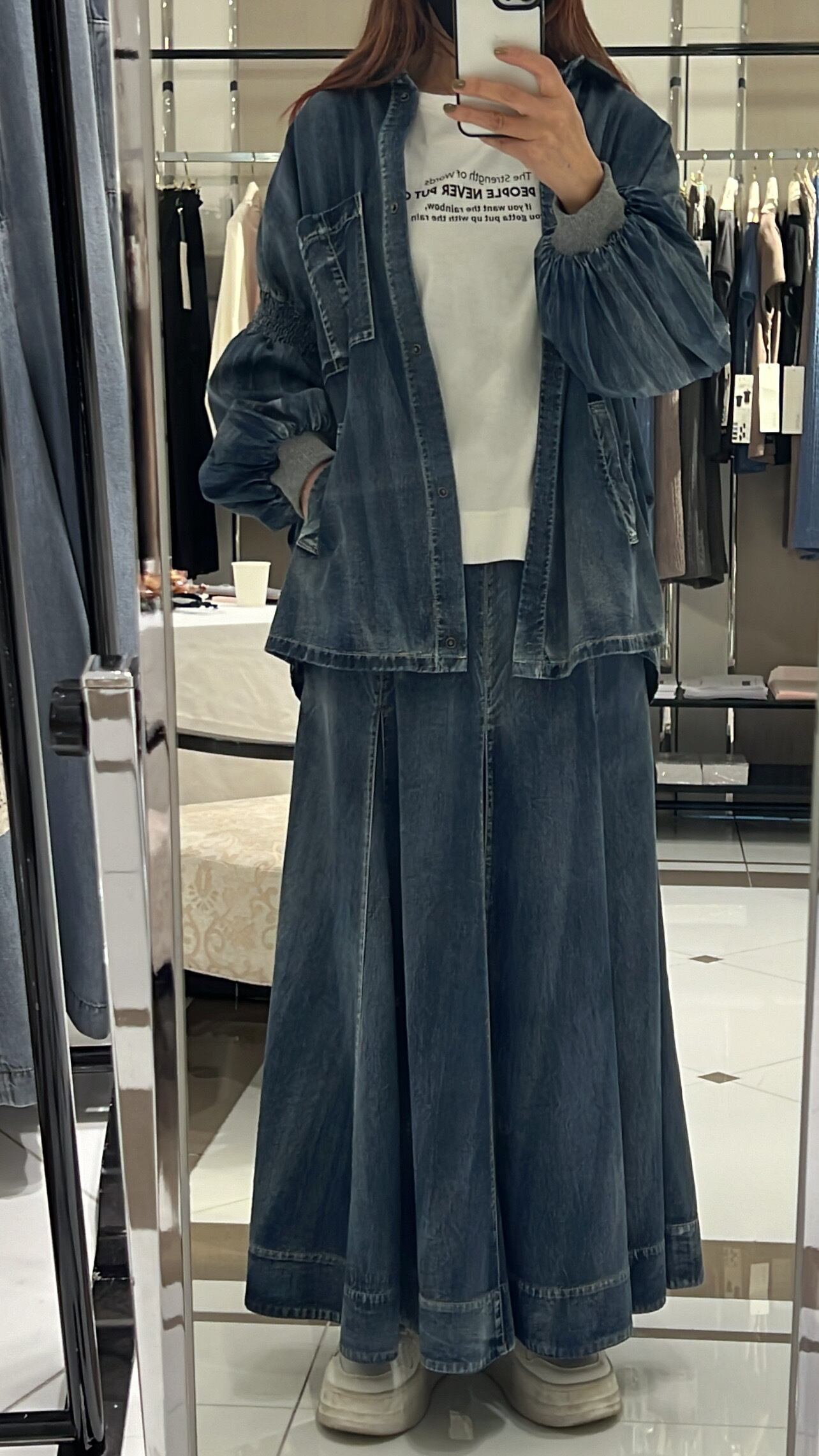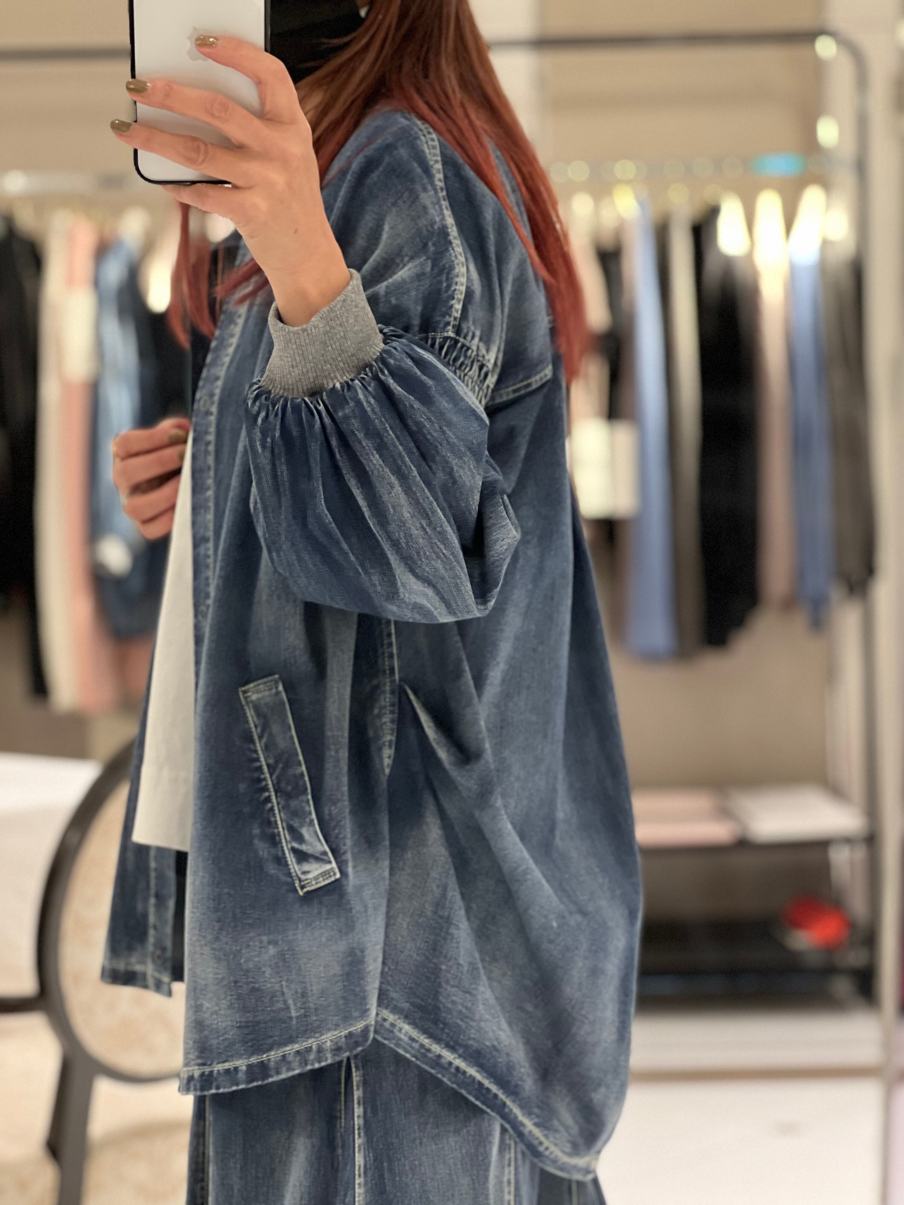 予約販売【 ayane 】シャーリングスリーブダンガリーシャツ(814304)2月中旬お届け