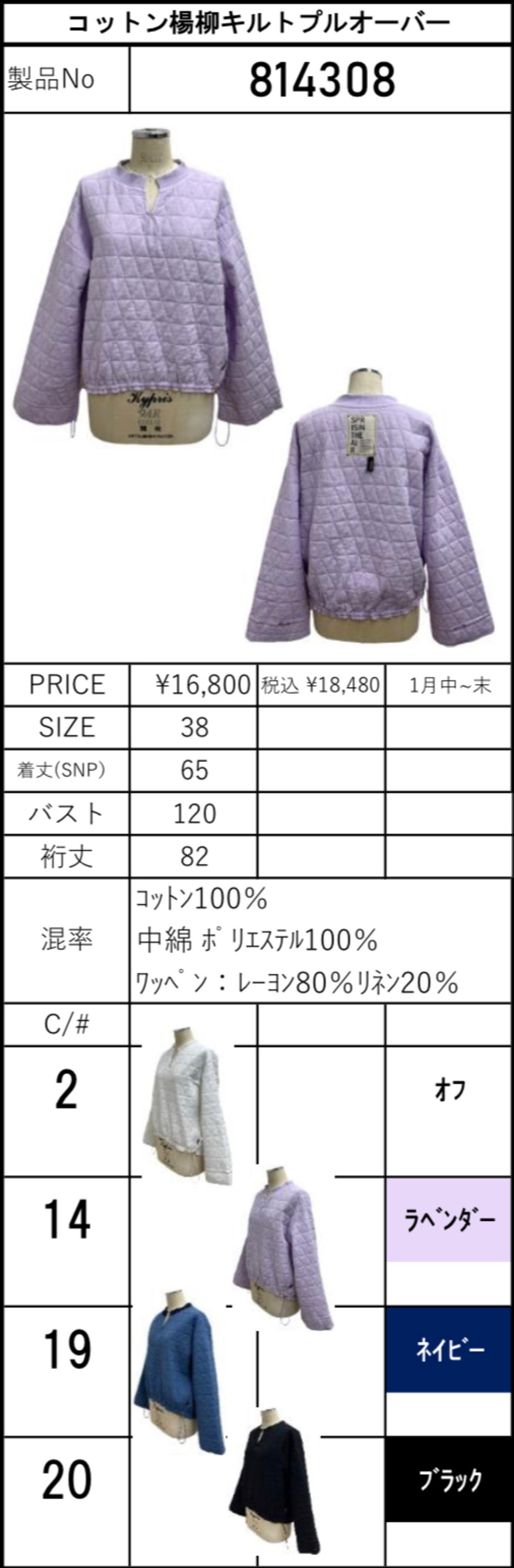 予約販売【 ayane 】コットン楊柳キルトプルオーバー(814308)1月下旬お届け
