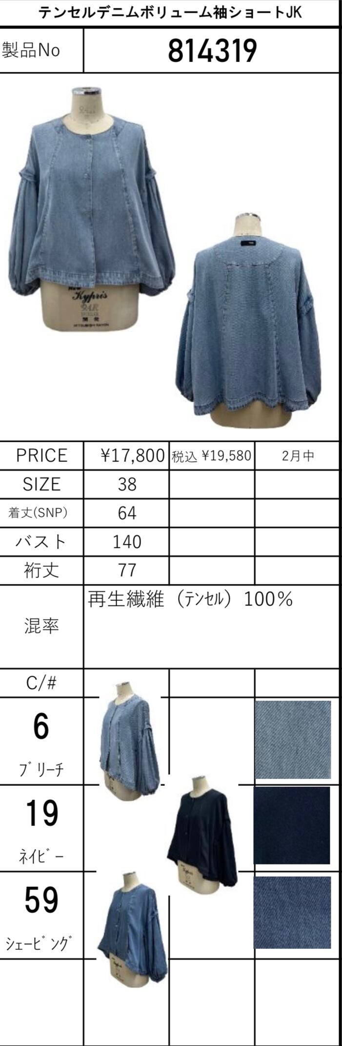 予約販売【 ayane 】テンセルデニムボリューム袖ショートJK(814319)2月中旬お届け