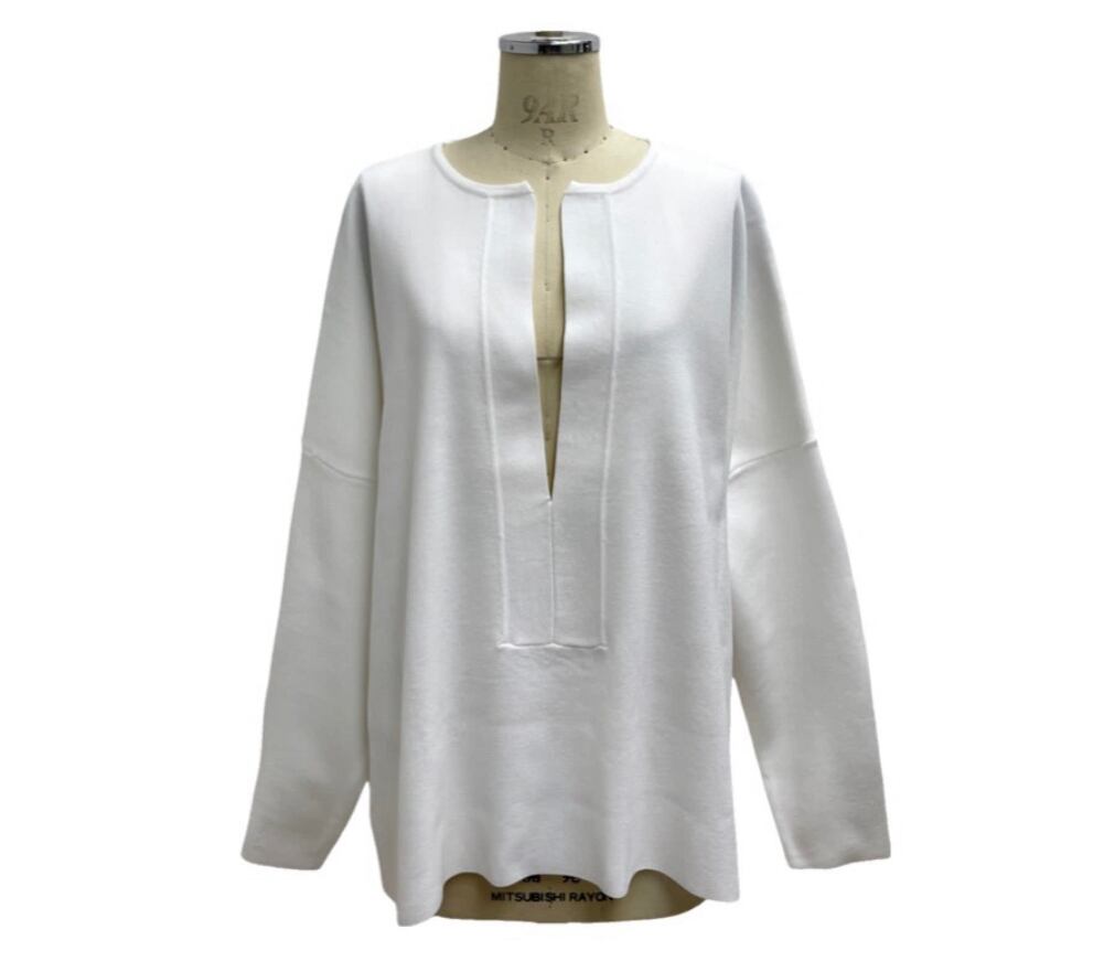 予約販売【 ayane 】 ポリエステル糸キーネックニット(814322)1月下旬お届け