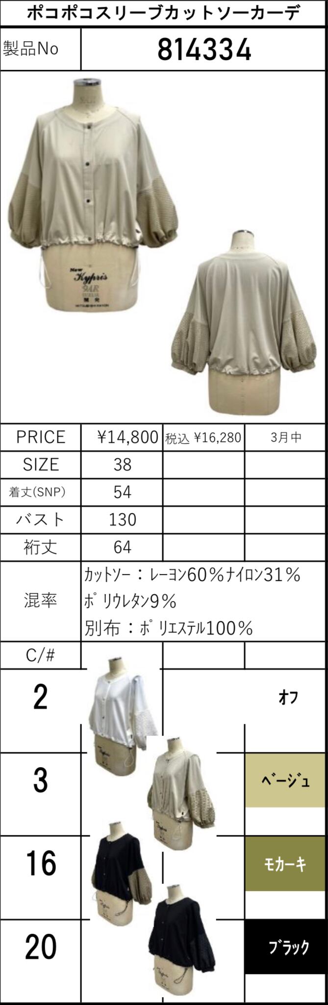予約販売【 ayane 】 ポコポコスリーブカットソーカーデ(814334)3月中旬お届け