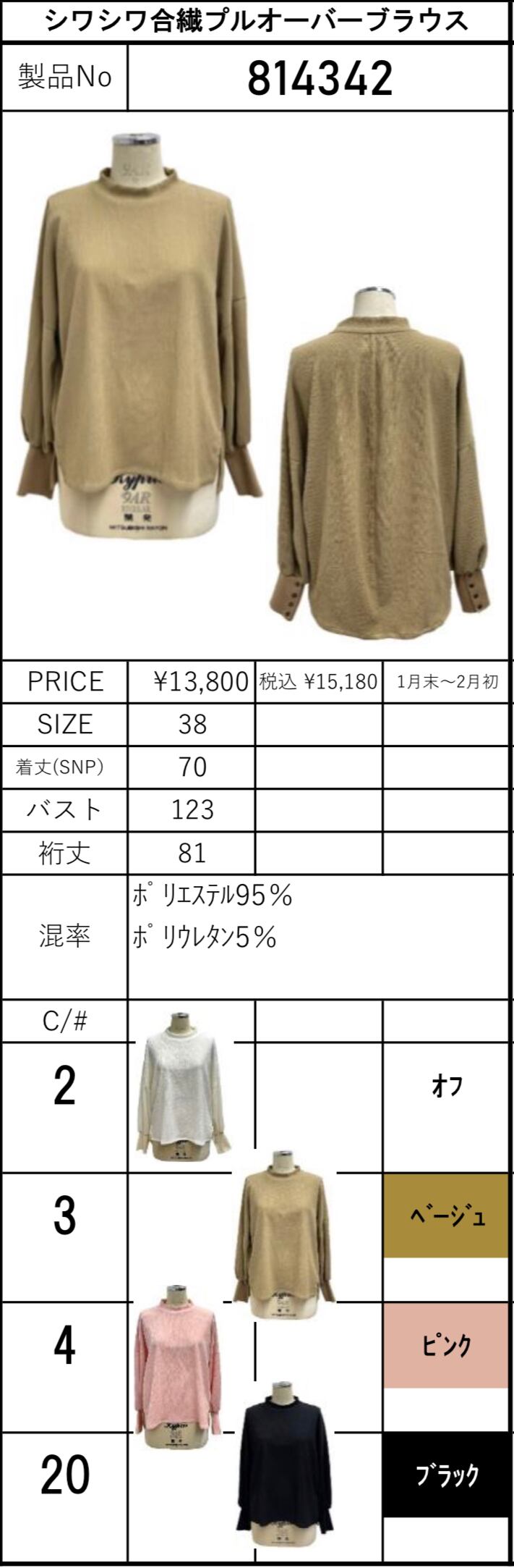 color No.2 オフ白/No.3 ベージュ/No.4 ピンク/No.20 ブラック