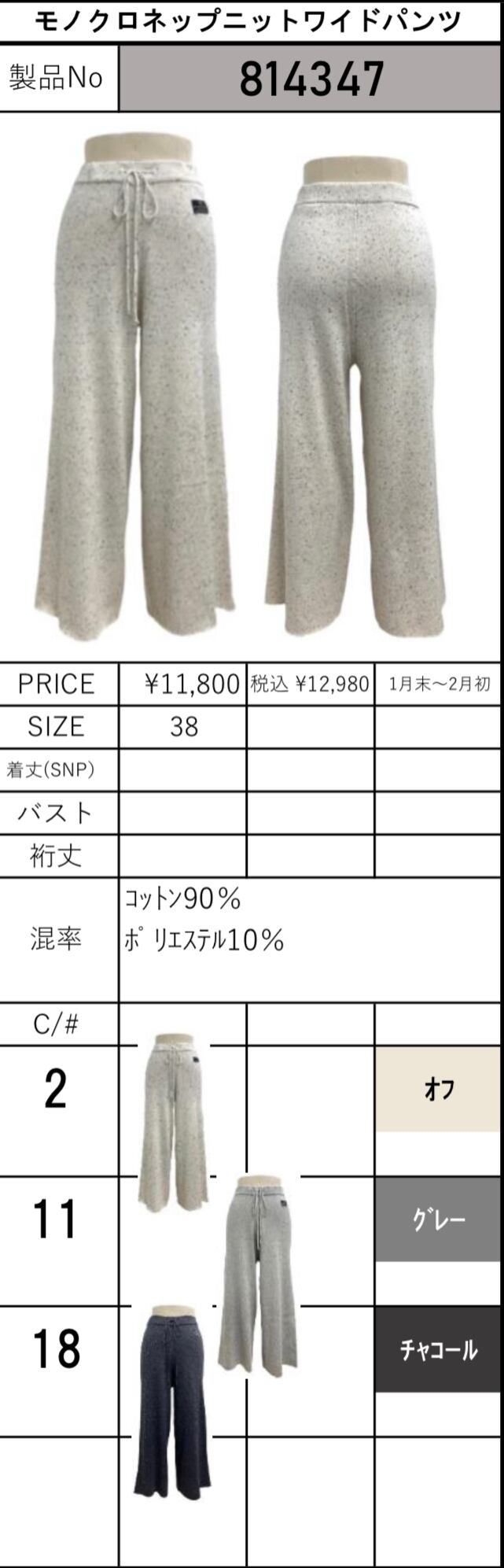 予約販売【 ayane 】モノクロネップニットワイドパンツ(814347)2月上旬お届け