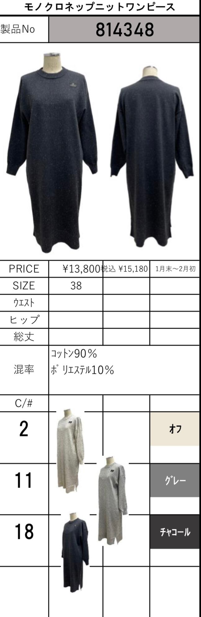 予約販売【 ayane 】モノクロネップニットワンピース(814348)2月上旬お届け