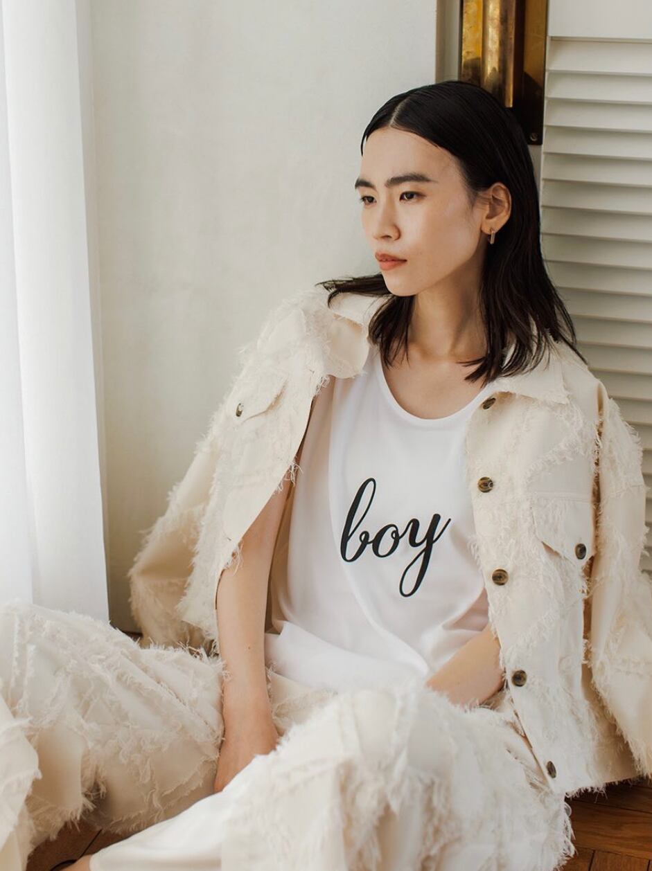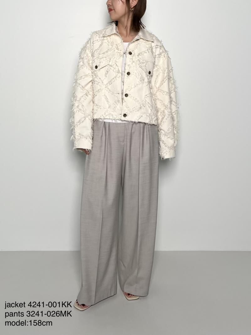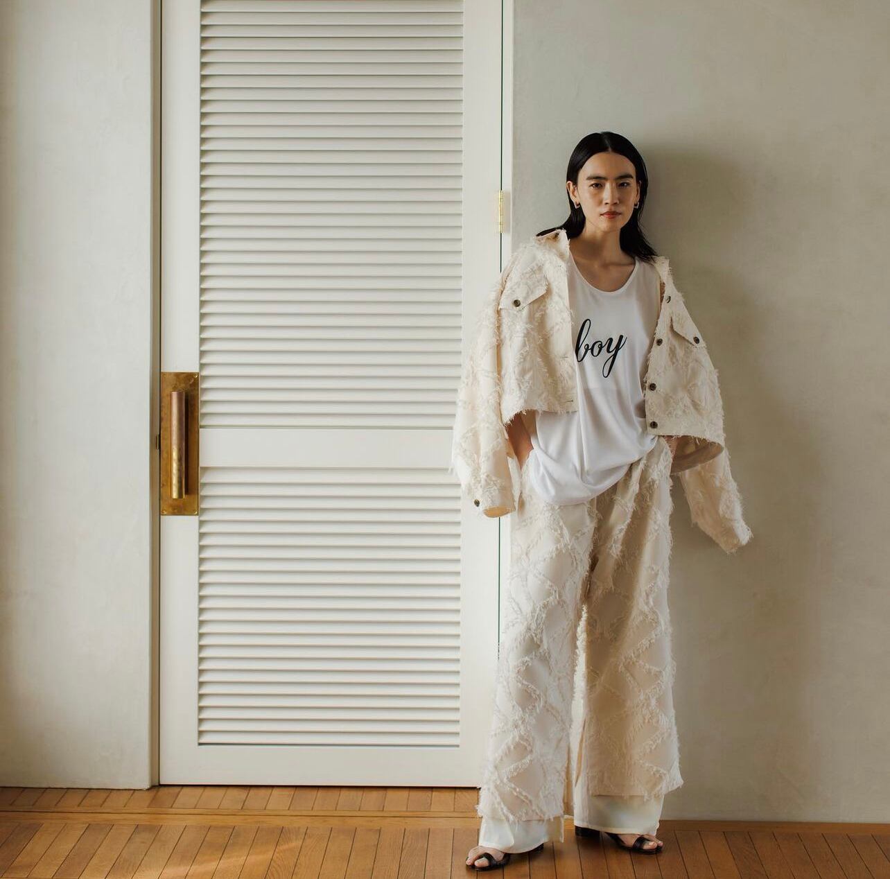 カジュアルなアイテムにあえてカットジャガード素材を落とし込むことで鮮烈な印象に仕上げました。