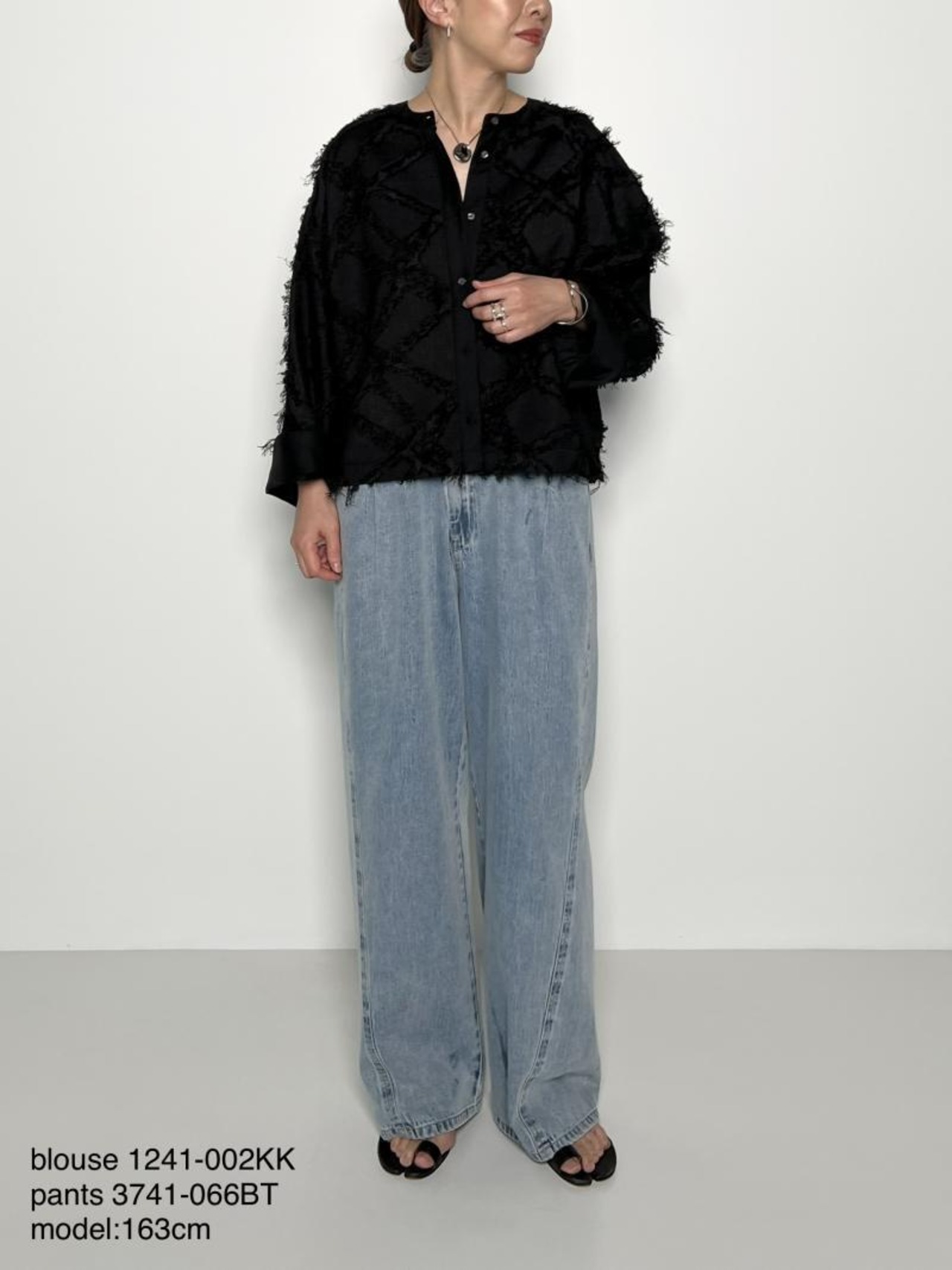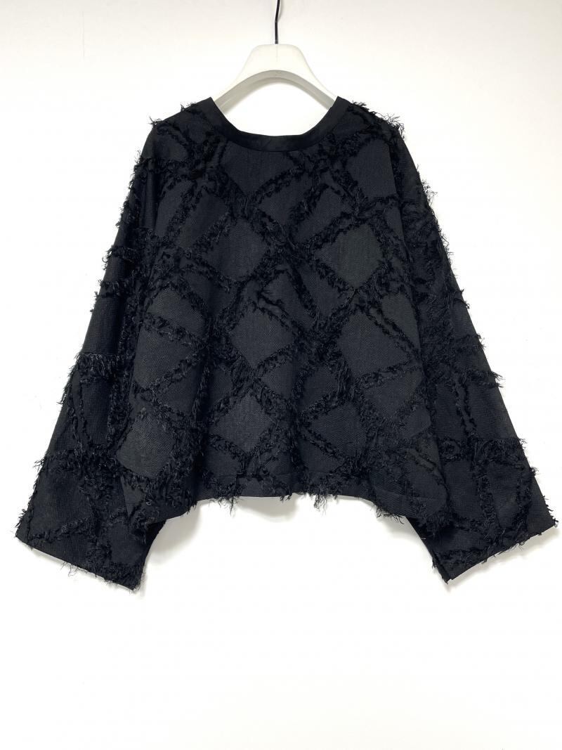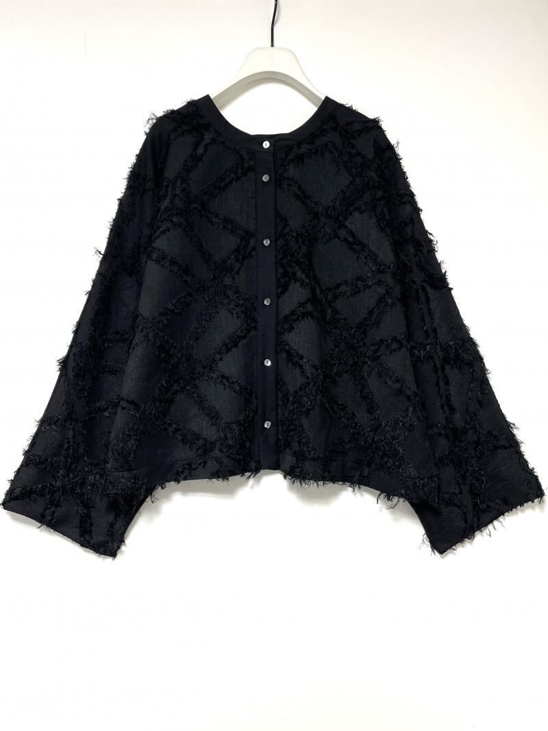 特殊な幾何柄のカットジャガード素材を採用したブラウスです。