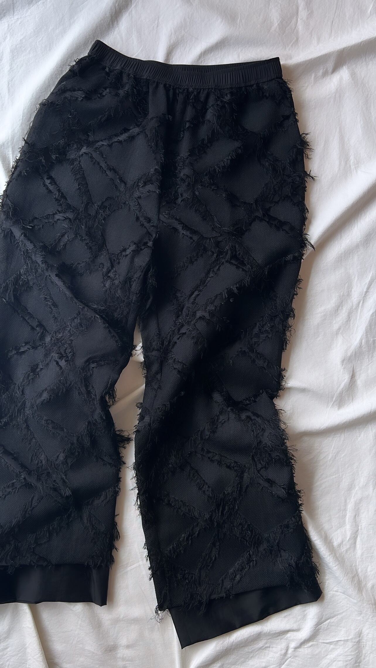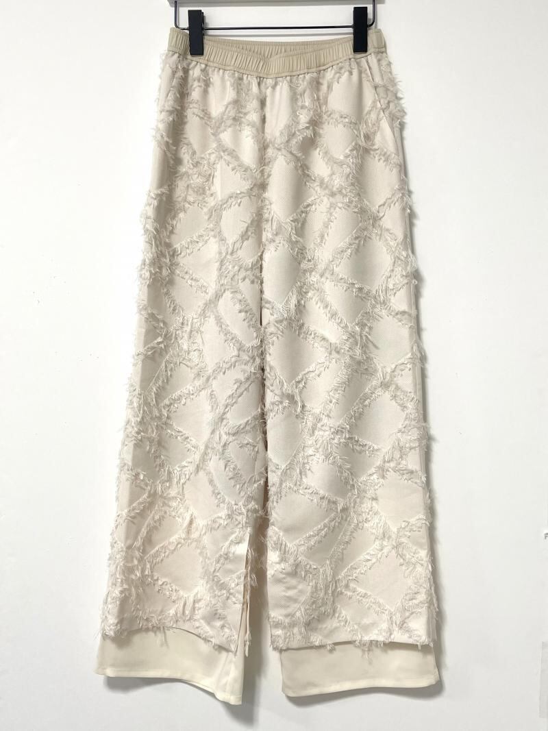 特殊な幾何柄のカットジャガード素材を採用したイージーパンツです。