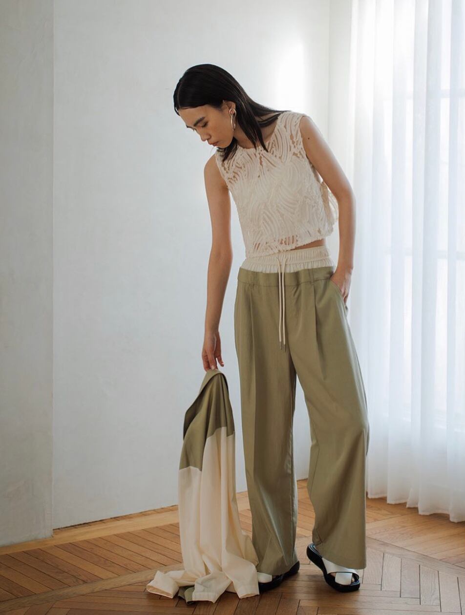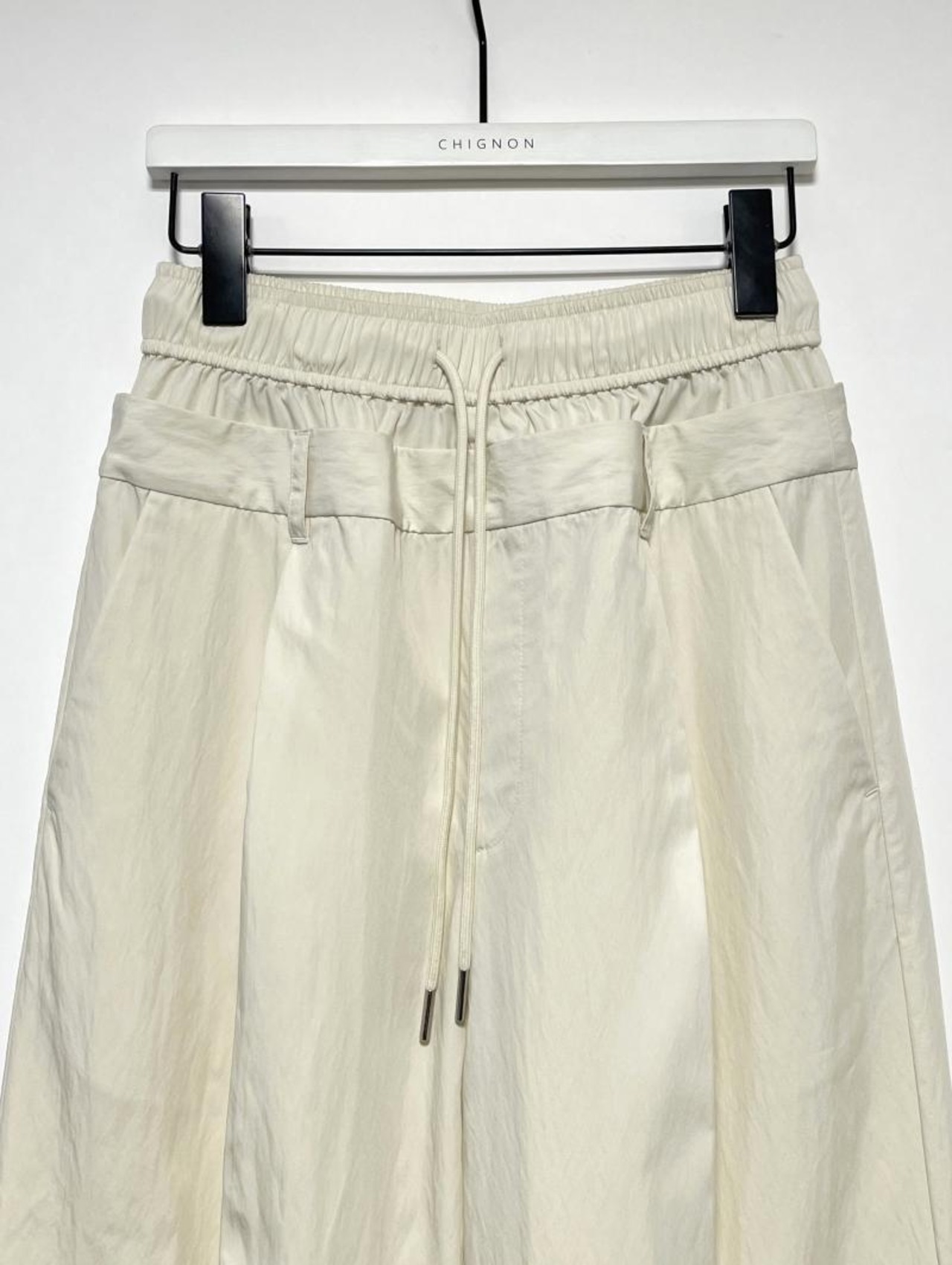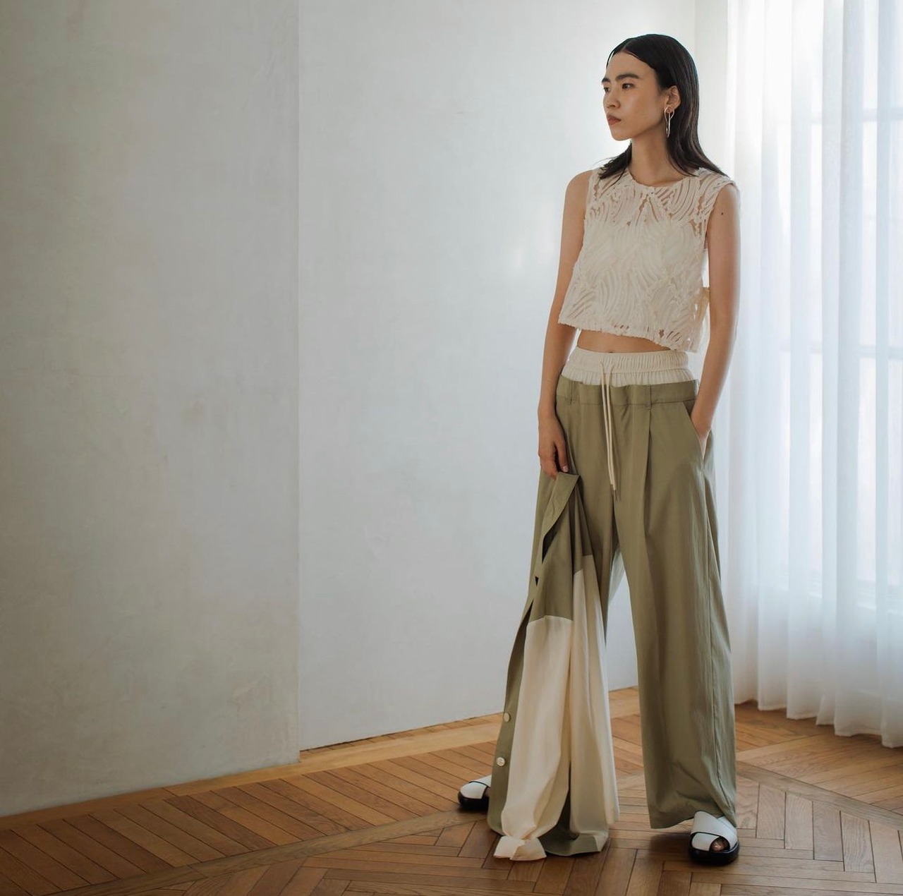 ウエストを2枚重ねたデザインで、ハイブリット且つ、スポーティな印象に仕上げました。