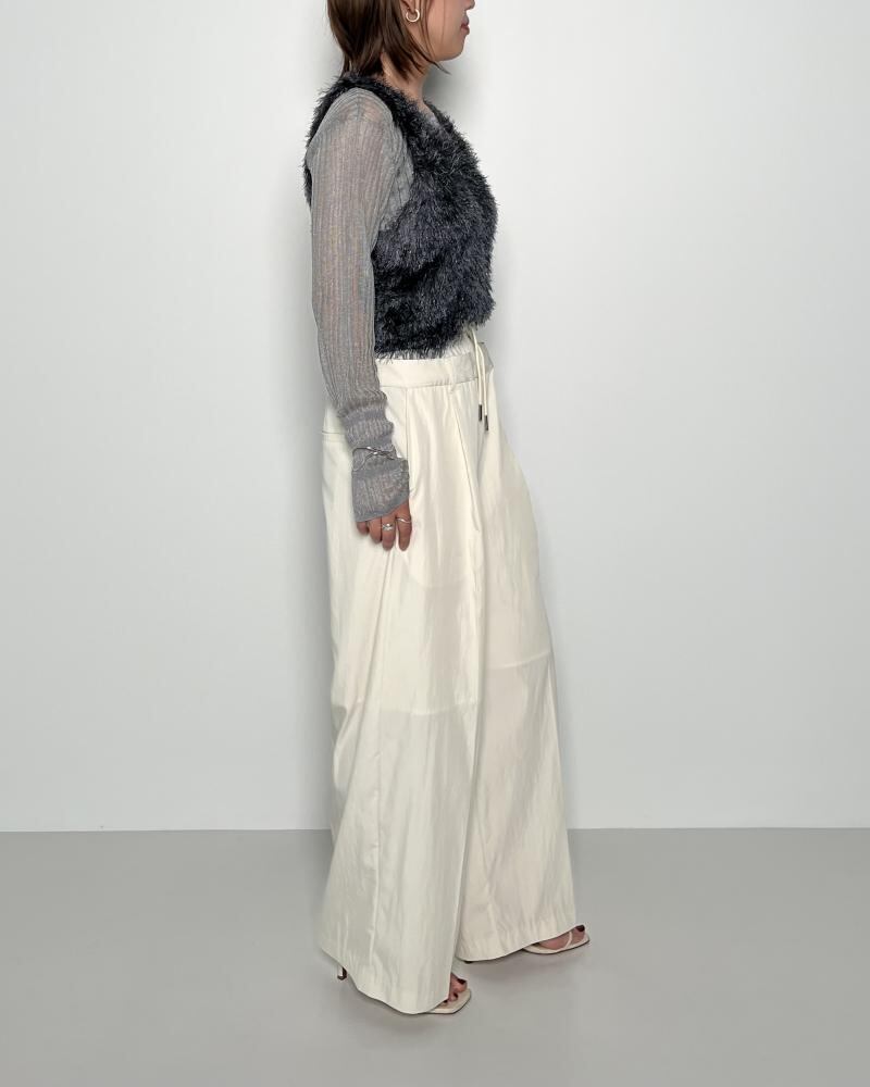 レーヨンナイロンの程よく落ち感のある素材を使用したワイドパンツです。