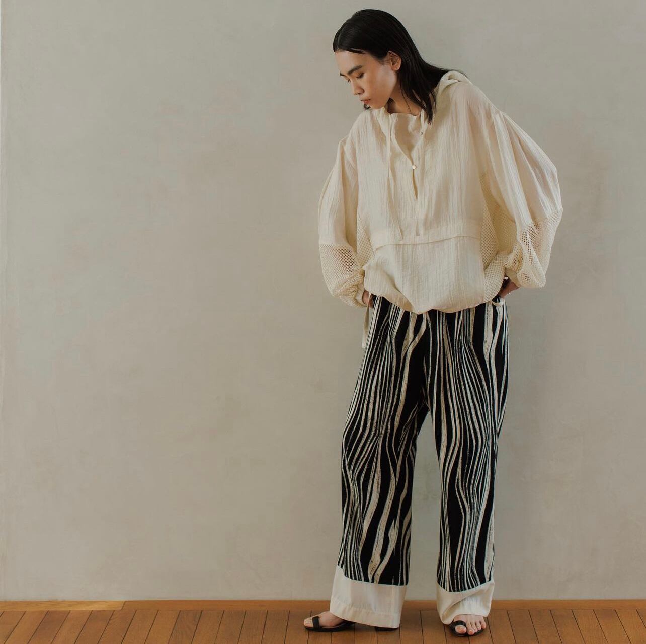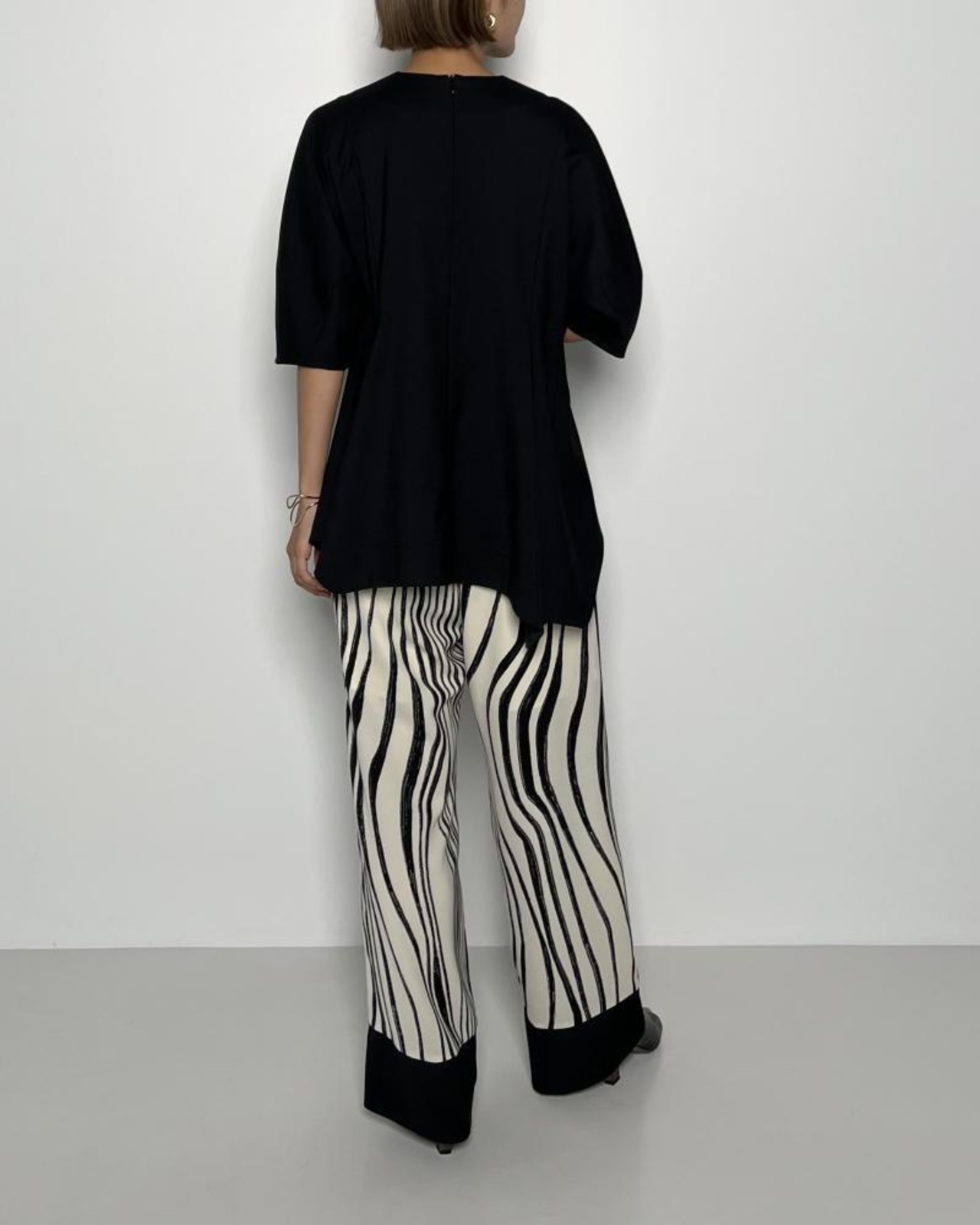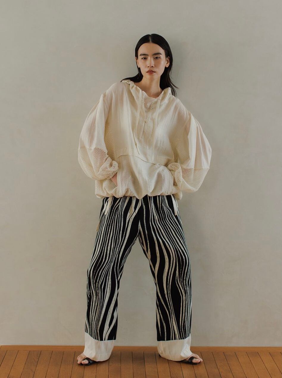 大胆なモノトーン柄のイージーパンツになります。