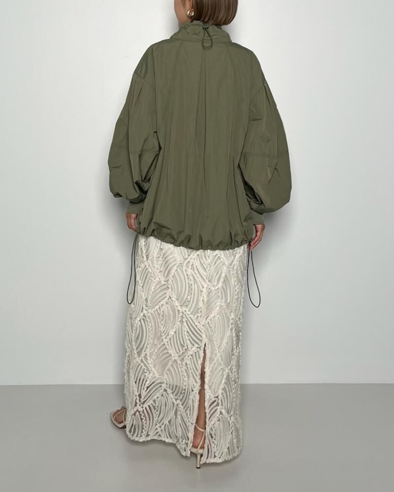 また裾をたくし上げると丈も変化できるのとバルーンシルエットになり、様々なボトムスとバランスがとりやすい、コーデの幅が広がる1枚です。